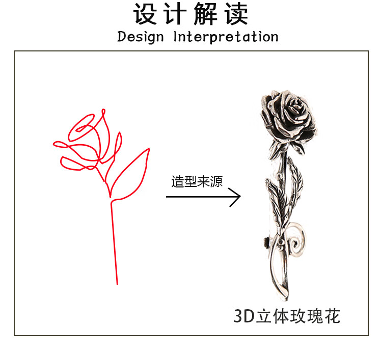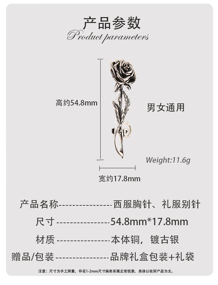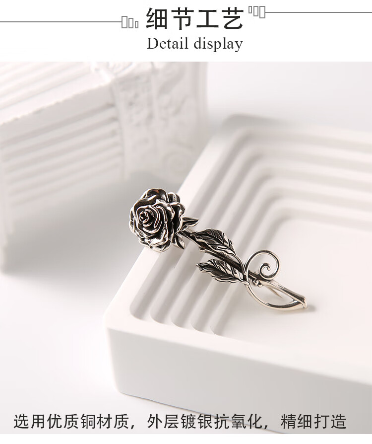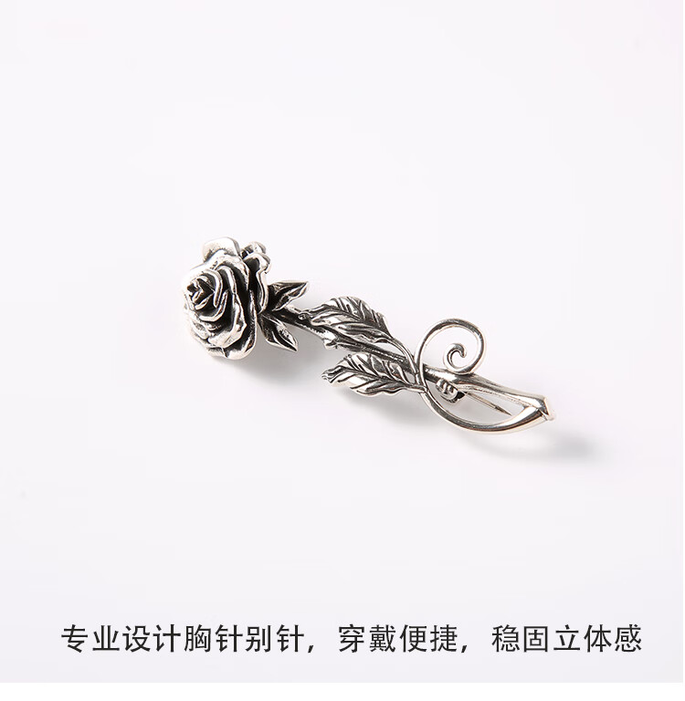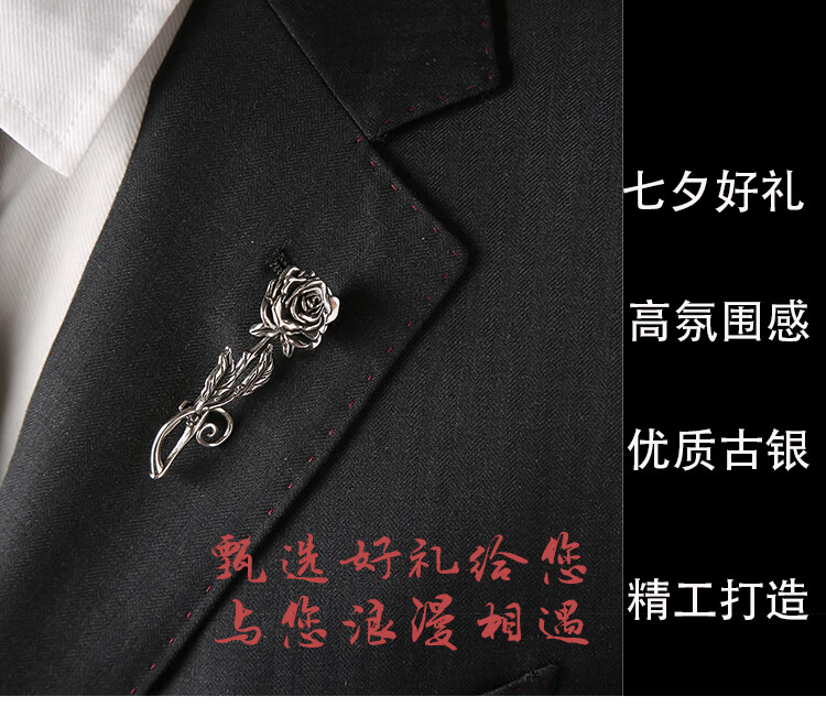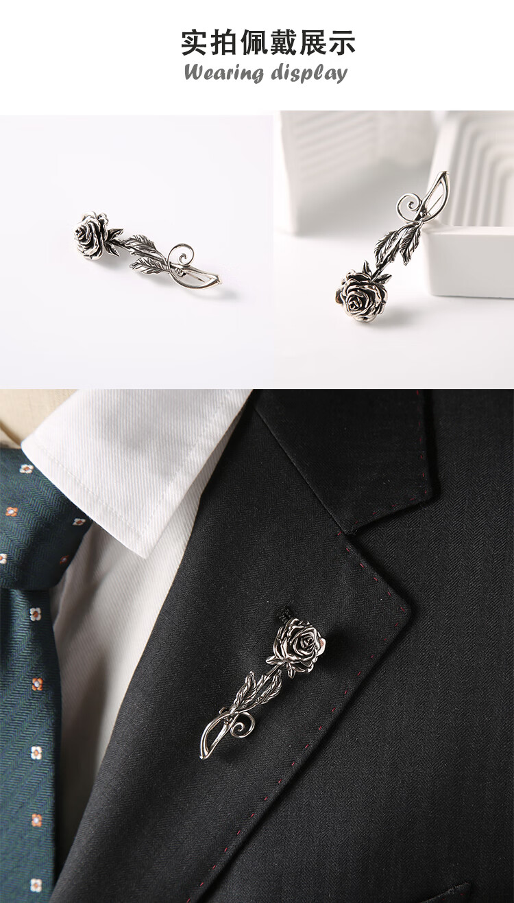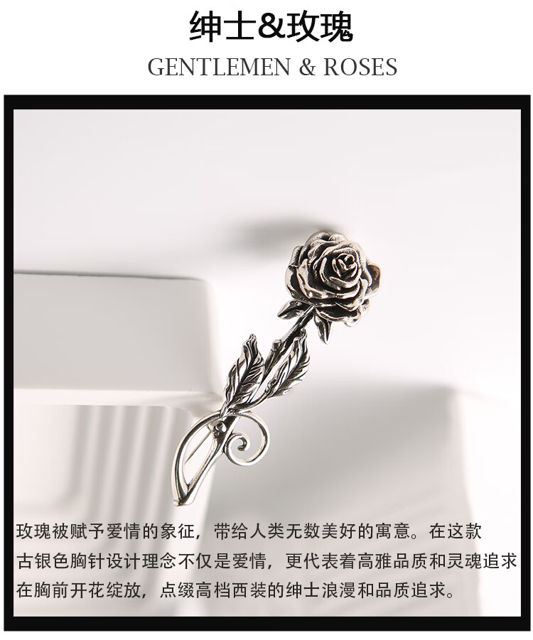 SNQP old antique rose brooch men's retro solid corsage fashion pin original design jewelry silver rose brooch