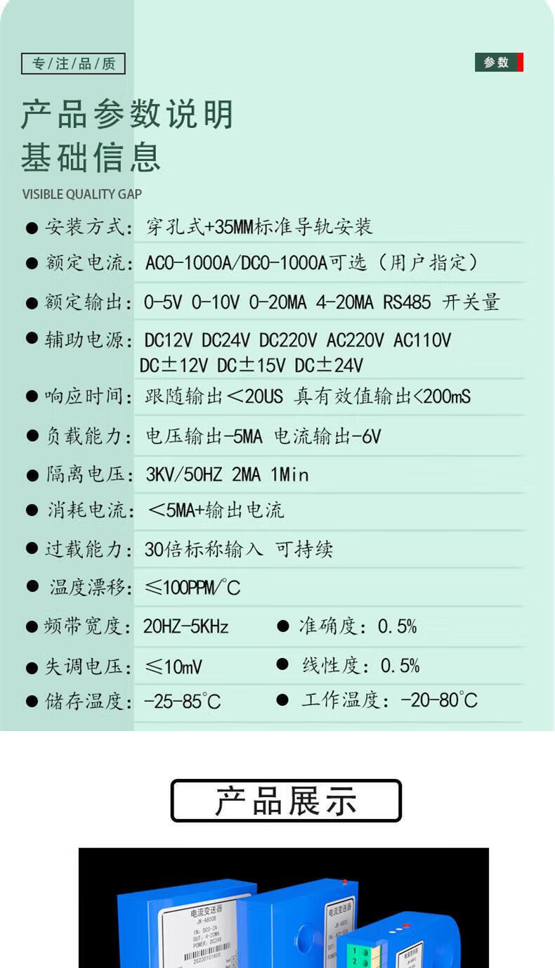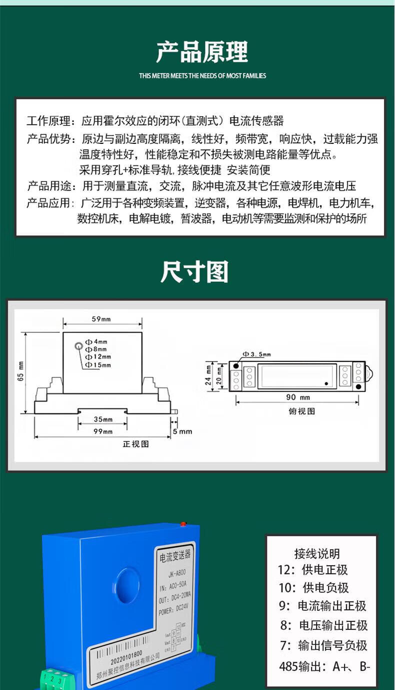 AC and DC current sensor transmitter AC transformer leakage switch opening 485 smart AC0-200A (perforated)