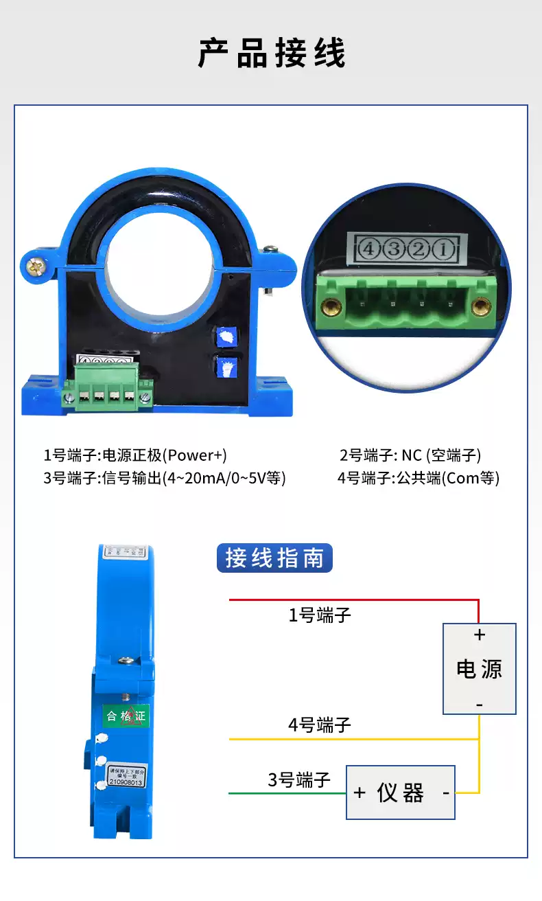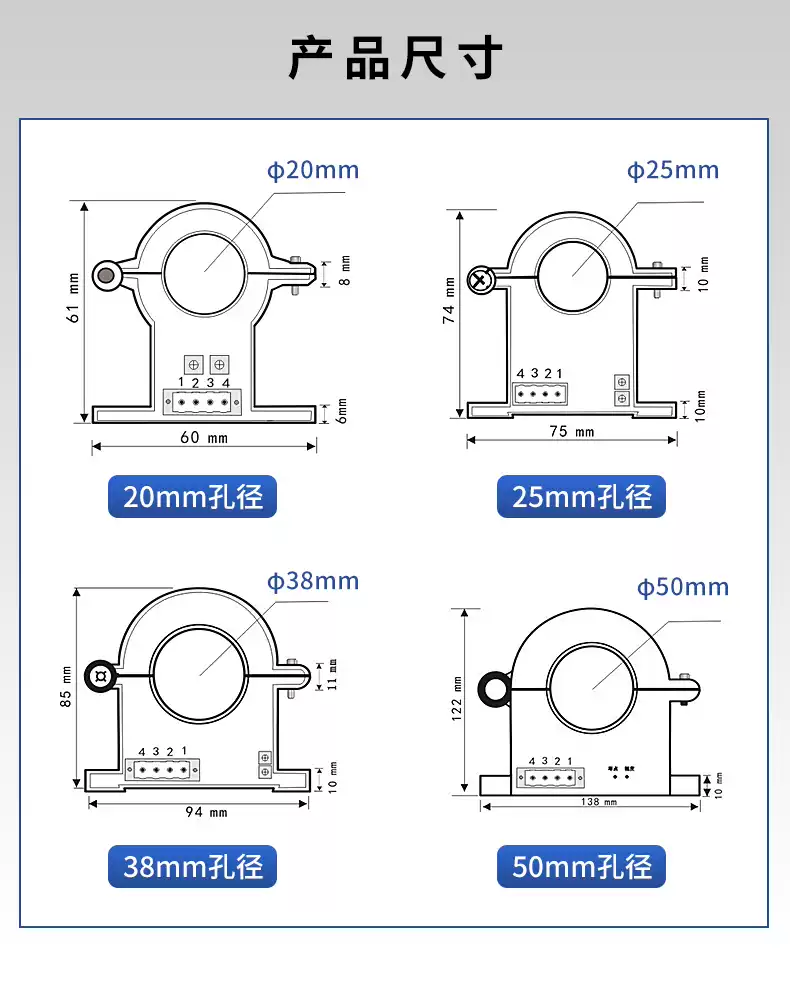 Opening and closing Hall current sensor AC/DC transmitter 4-20mA/485 communication 100A50A 20mm aperture AC 0-20/30A