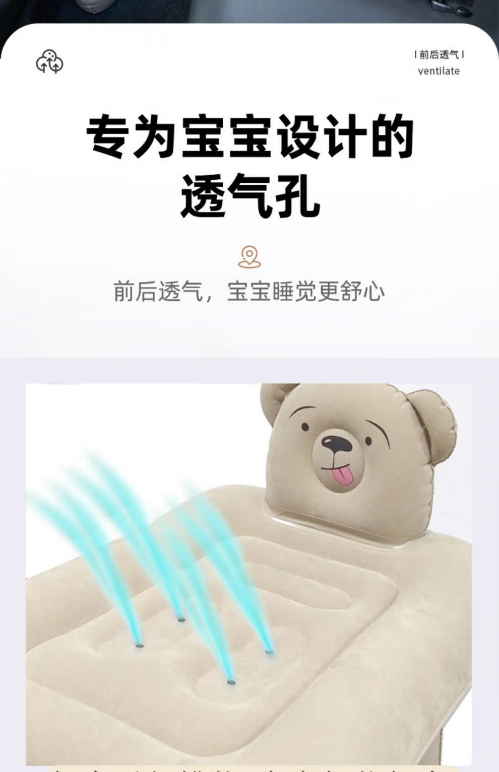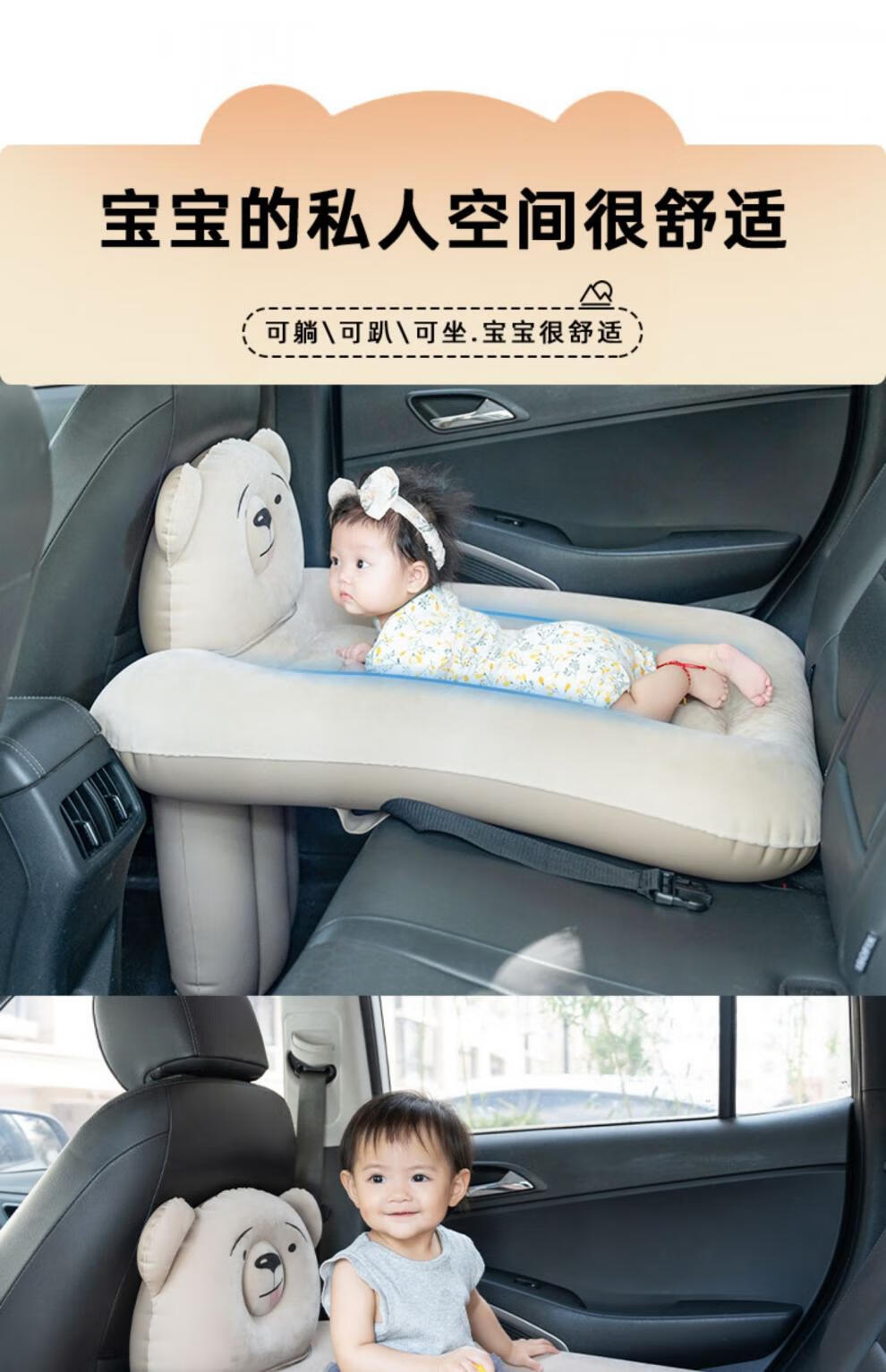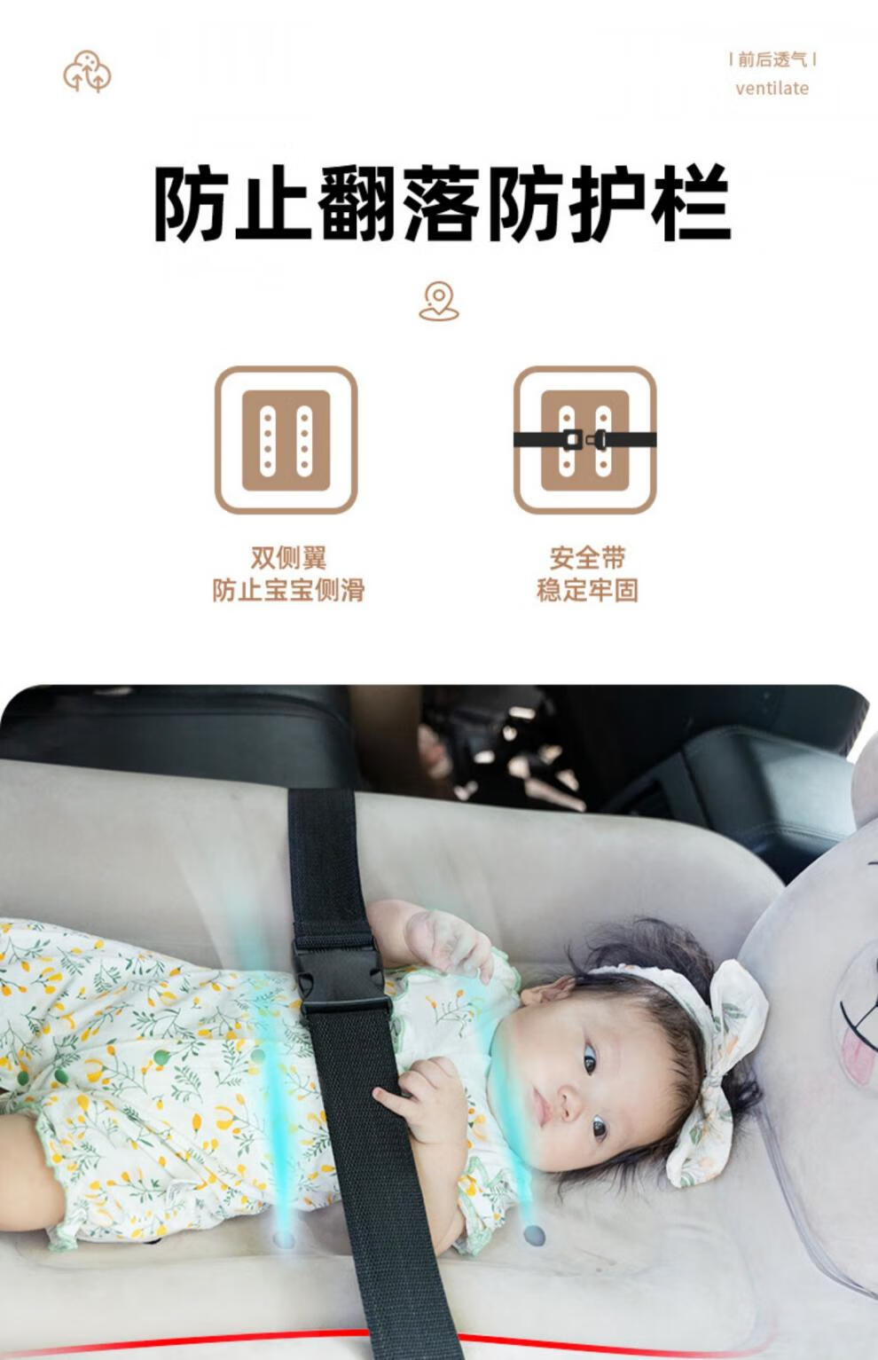 Ping An Zhe Children's Car Sleeping Bed Inflatable Bed Baby Sleeping Mat Car Back Seat Sleeping Mat Baby High Speed Rail Aircraft Sleeping Mattress Baby Inflatable Bed (Dark Brown) Suitable for_Car + Manual Inflator + Gift
