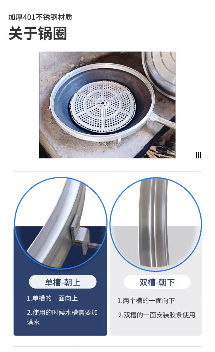 SOXW's new thickened, steam-free, breath-free stainless steel ultra-low aluminum ring water-sealed rural pot lid. Large pot outer diameter 69.5---72 cm with double