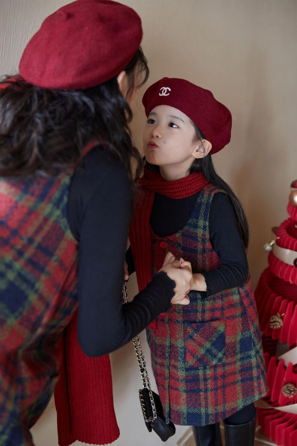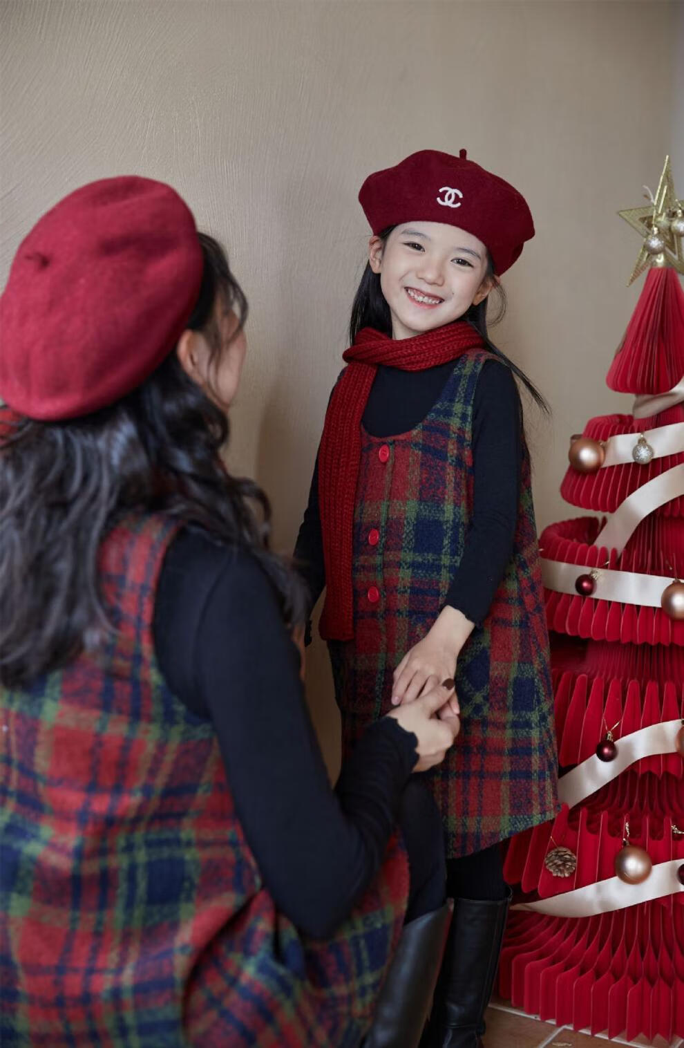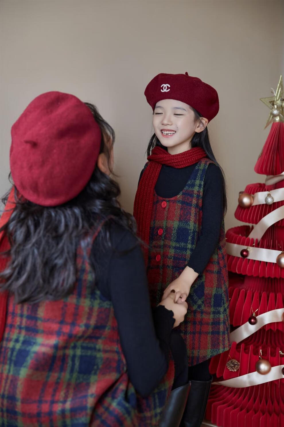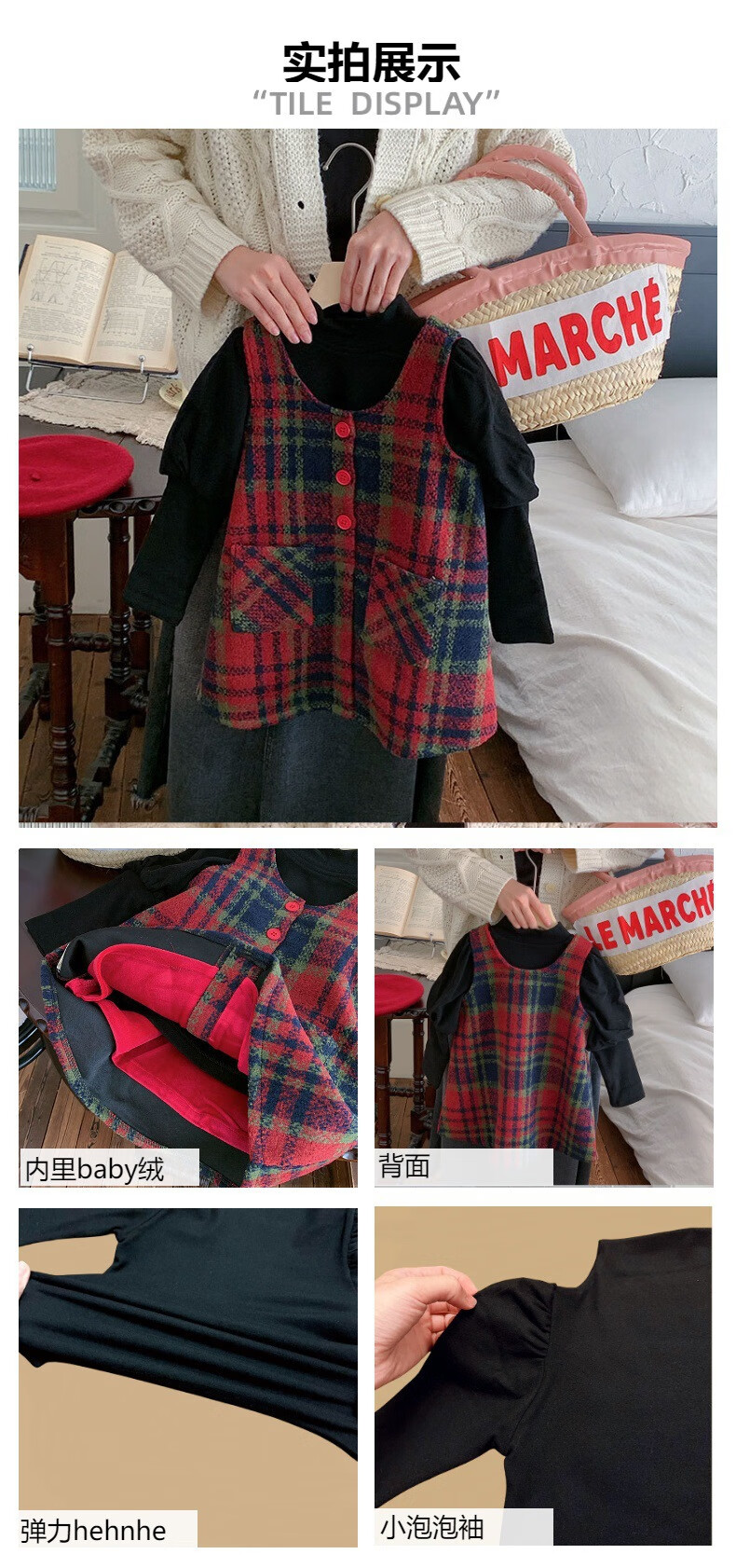 WONST children's retro woolen vest skirt suit 2025 winter girls' Christmas and New Year's Day atmosphere plus velvet plaid vest plaid vest skirt 90 cm