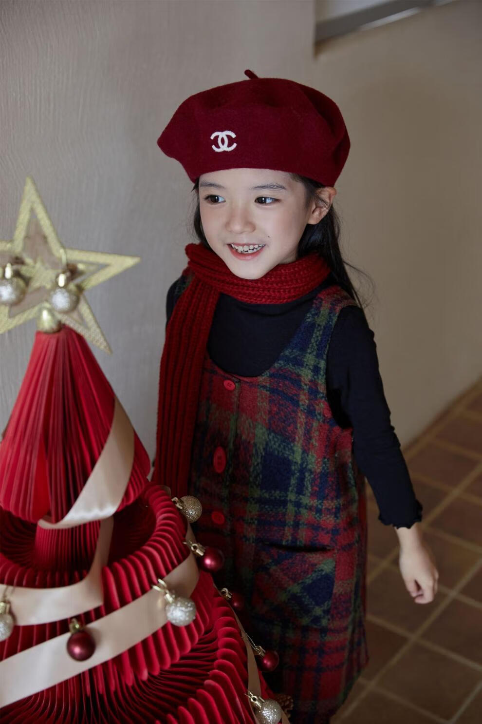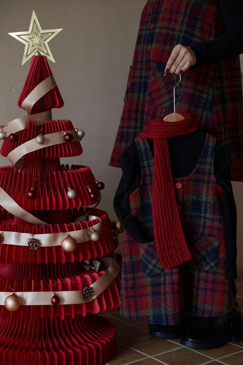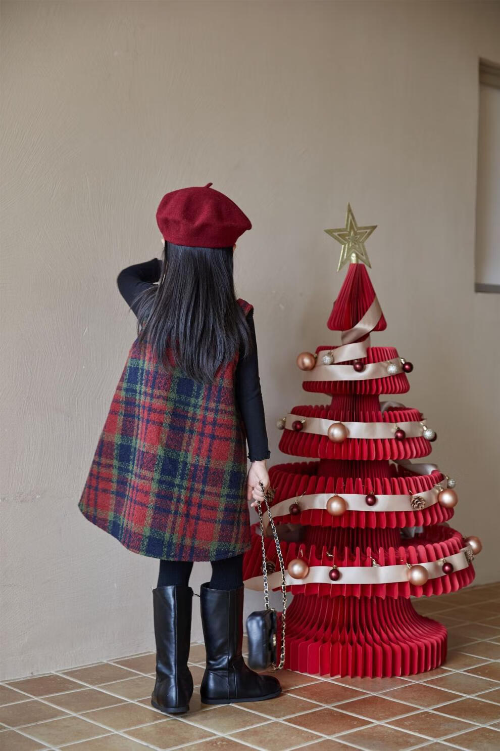 WONST children's retro woolen vest skirt suit 2025 winter girls' Christmas and New Year's Day atmosphere plus velvet plaid vest plaid vest skirt 90 cm