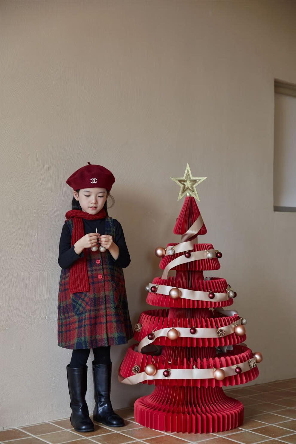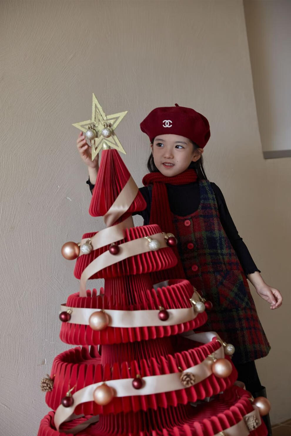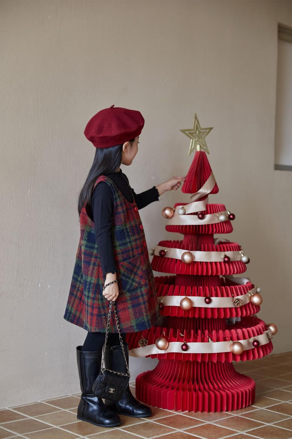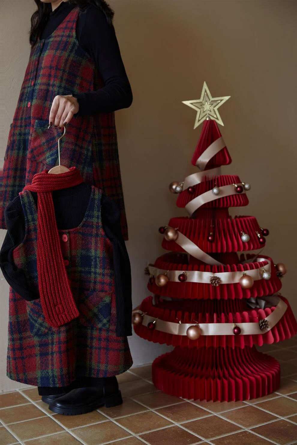WONST children's retro woolen vest skirt suit 2025 winter girls' Christmas and New Year's Day atmosphere plus velvet plaid vest plaid vest skirt 90 cm