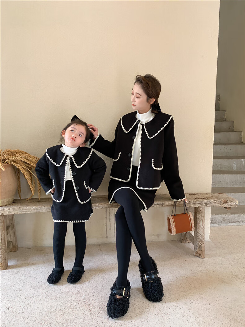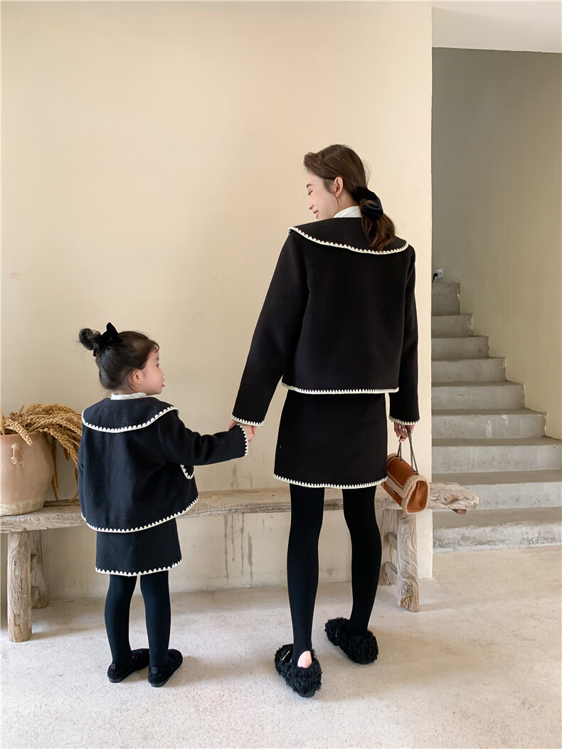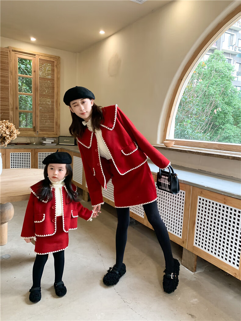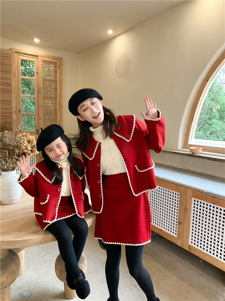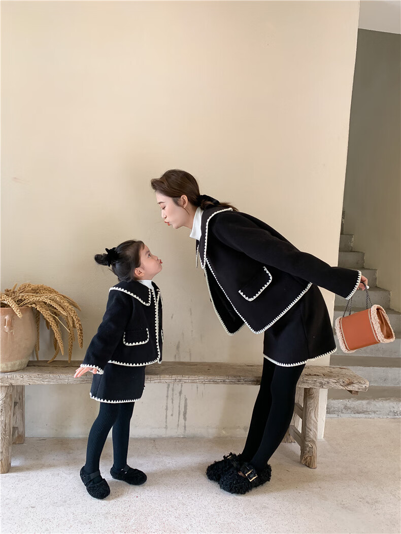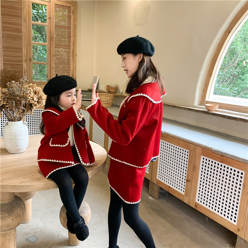 WONST brand parent-child clothing set for girls and babies quilted mother-and-daughter clothing 2025 winter new style black small fragrance red 90 cm
