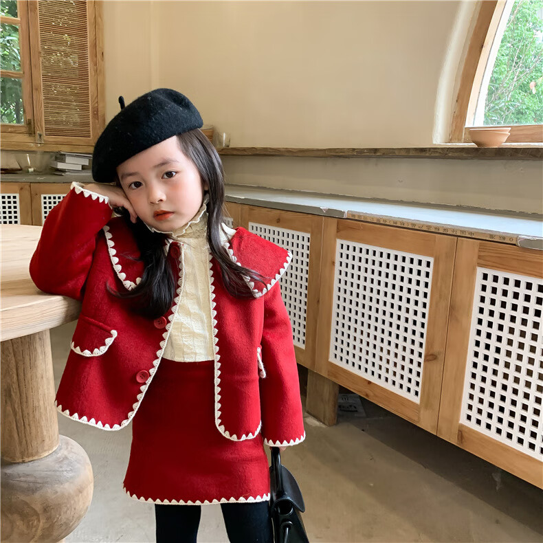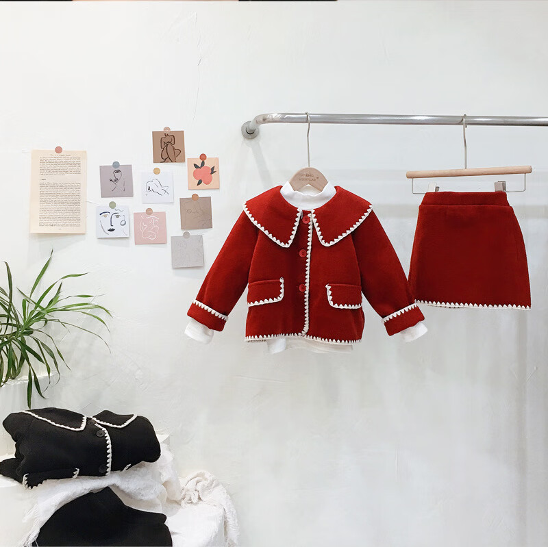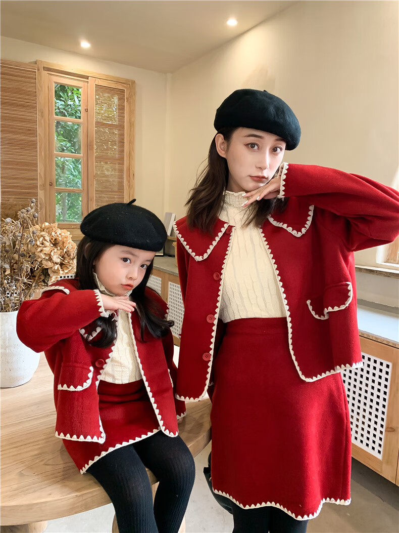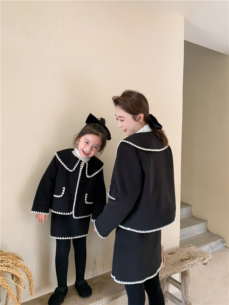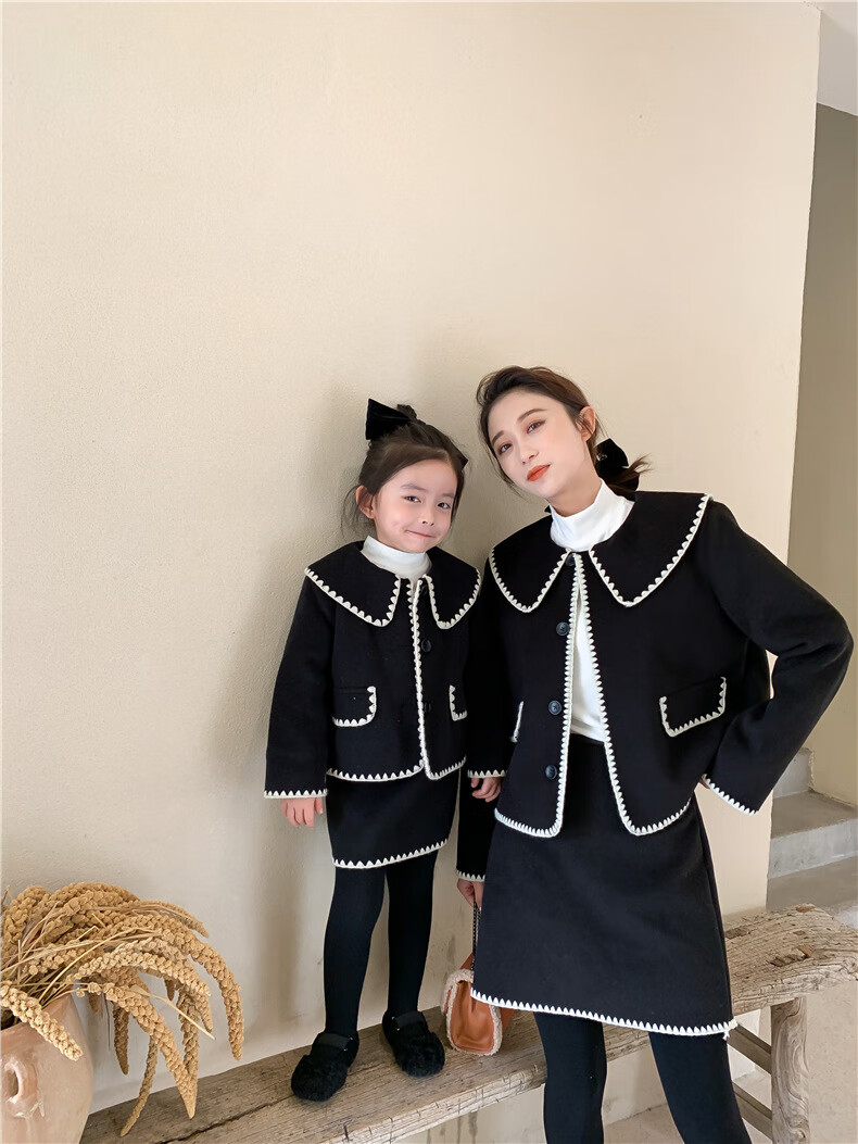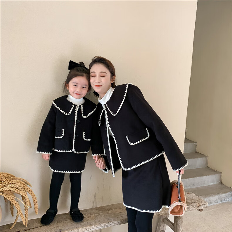 WONST brand parent-child clothing set for girls and babies quilted mother-and-daughter clothing 2025 winter new style black small fragrance red 90 cm