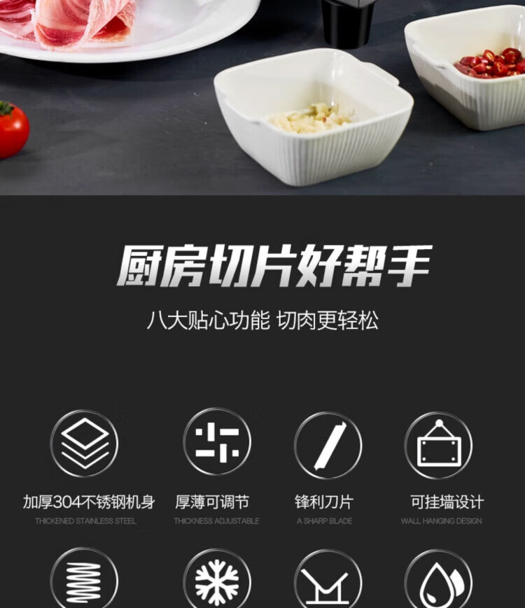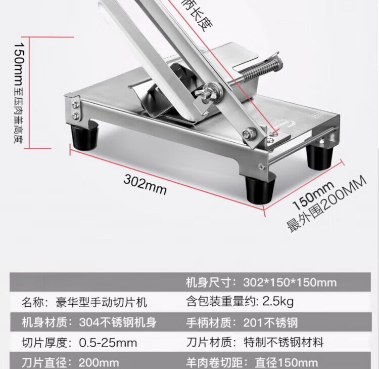 CKULH Germany's new mutton roll slicer meat slicer household 304 stainless steel meat slicer for cutting mutton thickened 304 (a total of 2 blades + 10 frozen meat bags)