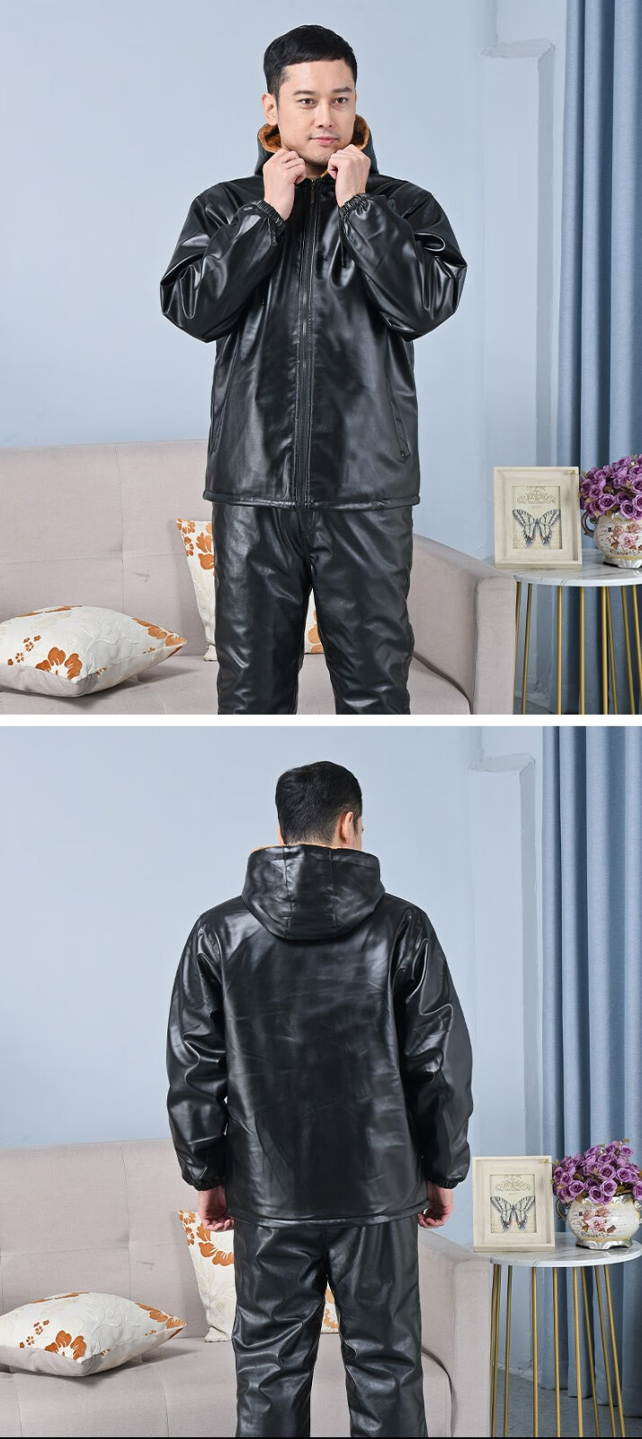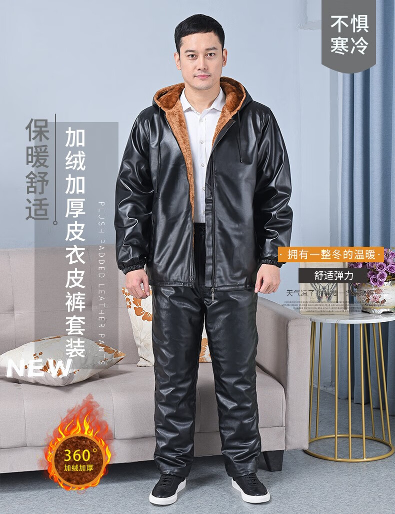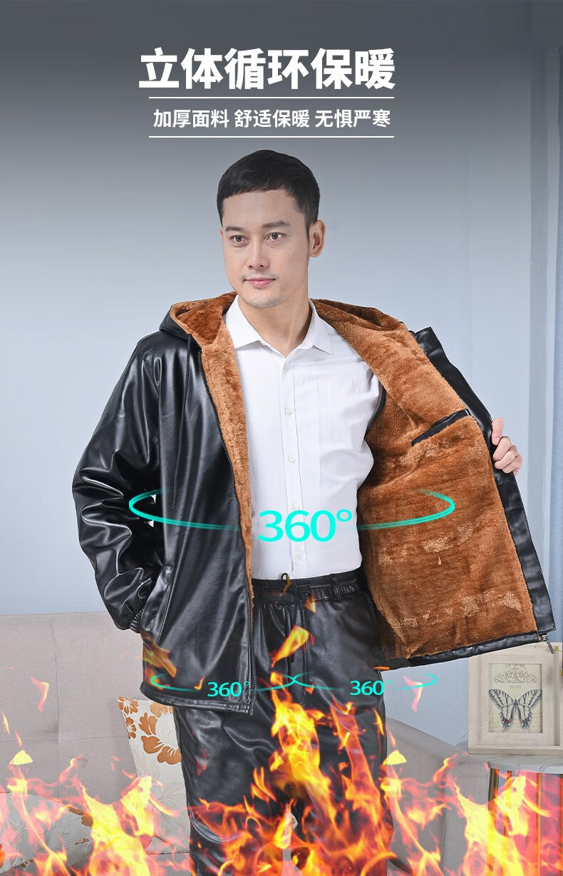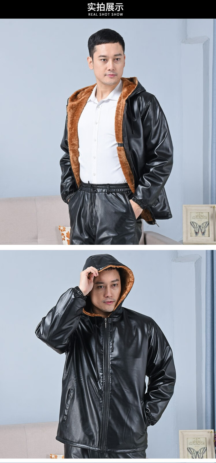 Yangu Men's Leather Jacket and Leather Pants Suit with Velvet and Thick Windproof, Warm and Waterproof Motorcycle and Motorcycle Driving Takeaway Spring and Autumn Single Style Leather Top XL Size (100-110Jin Jin is equal to 0.5kg)