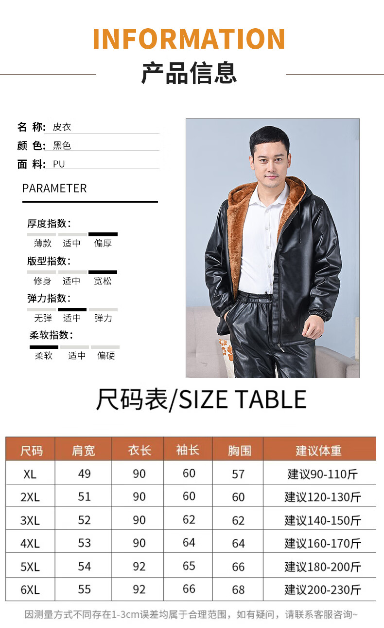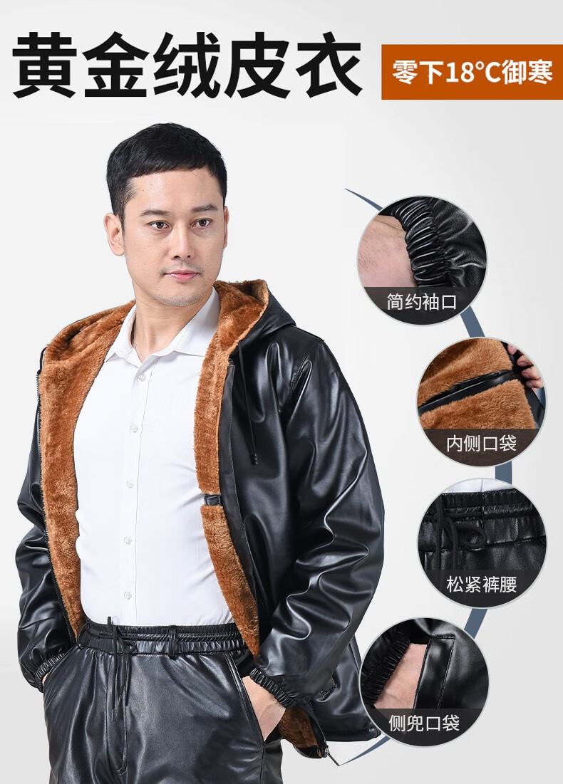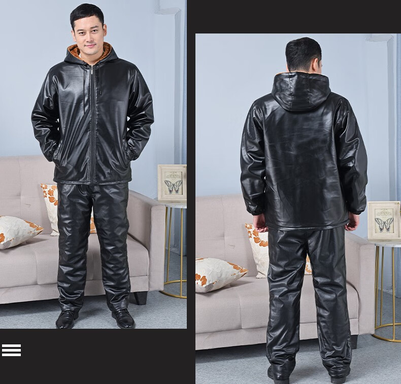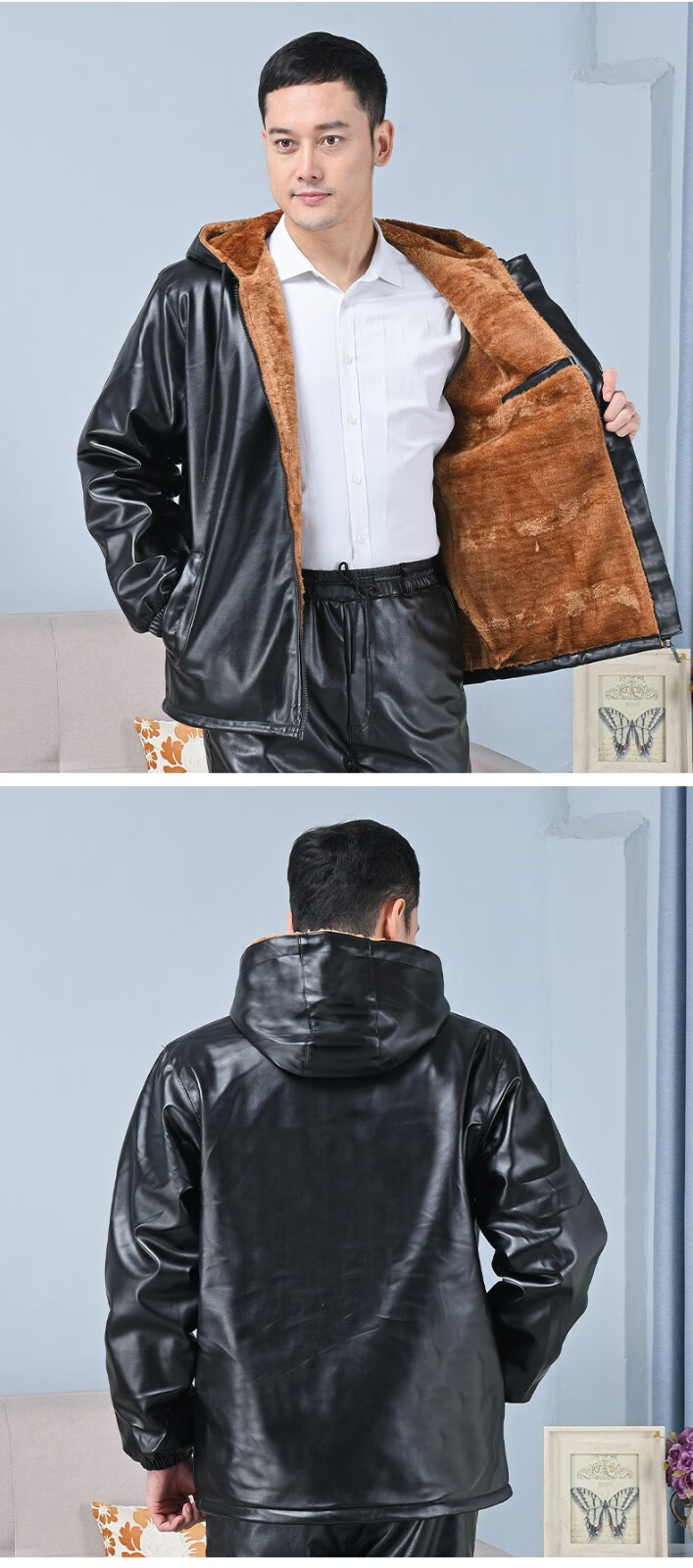 Yangu Men's Leather Jacket and Leather Pants Suit with Velvet and Thick Windproof, Warm and Waterproof Motorcycle and Motorcycle Driving Takeaway Spring and Autumn Single Style Leather Top XL Size (100-110Jin Jin is equal to 0.5kg)