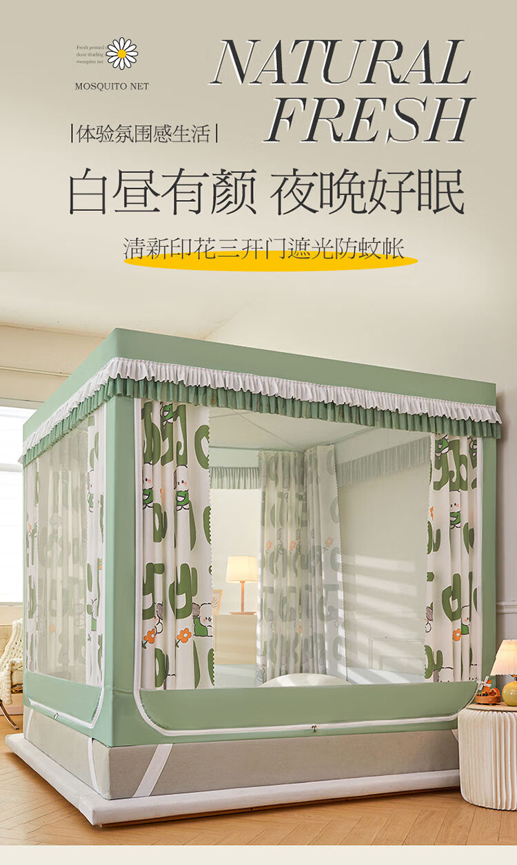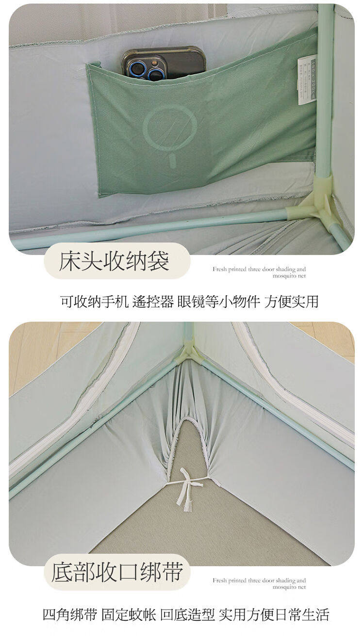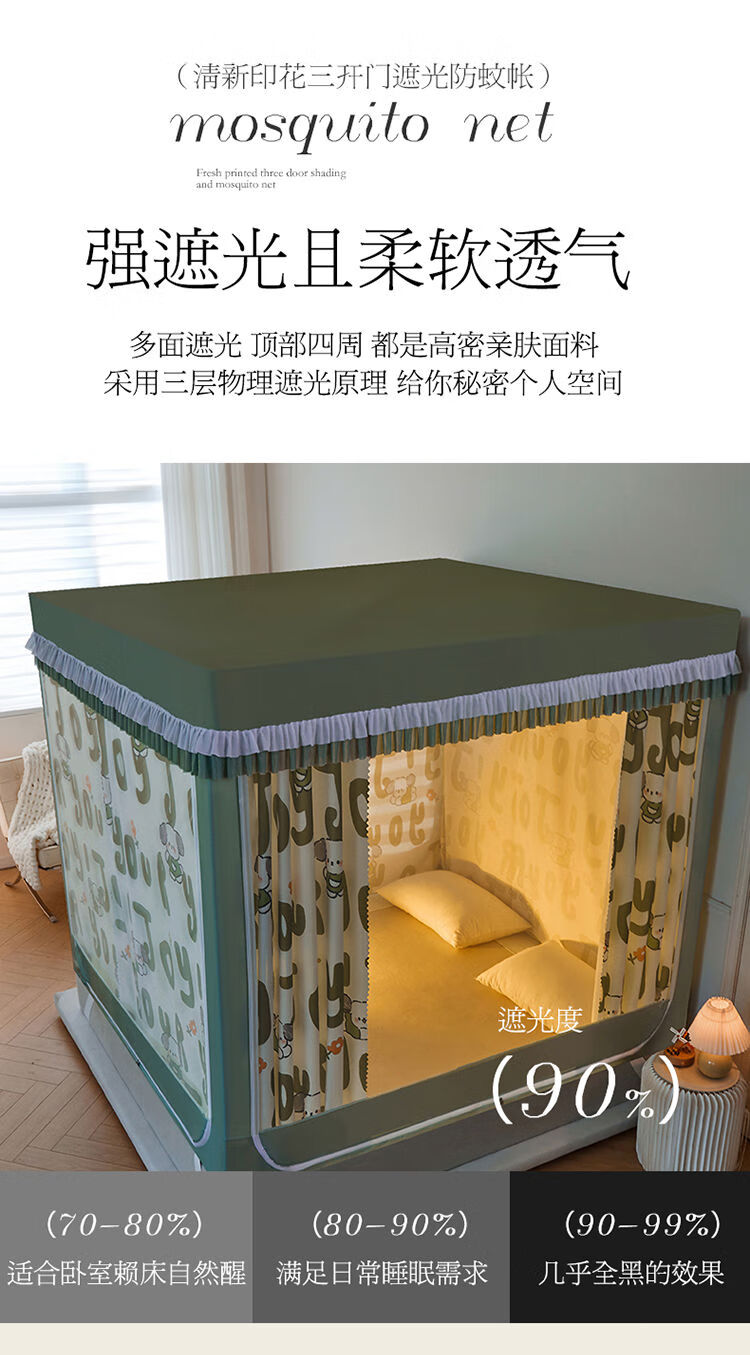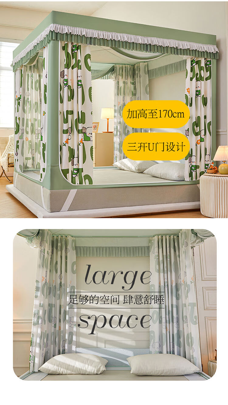 Yusenyi blackout curtain back to bottom bed mosquito net door anti-fall reinforced thickened bracket square tent bedroom poster 2406 special edition 180 wide x 220 long x 170 high thickened bracket
