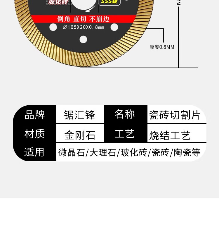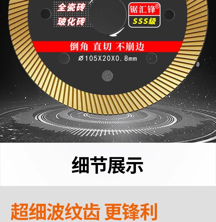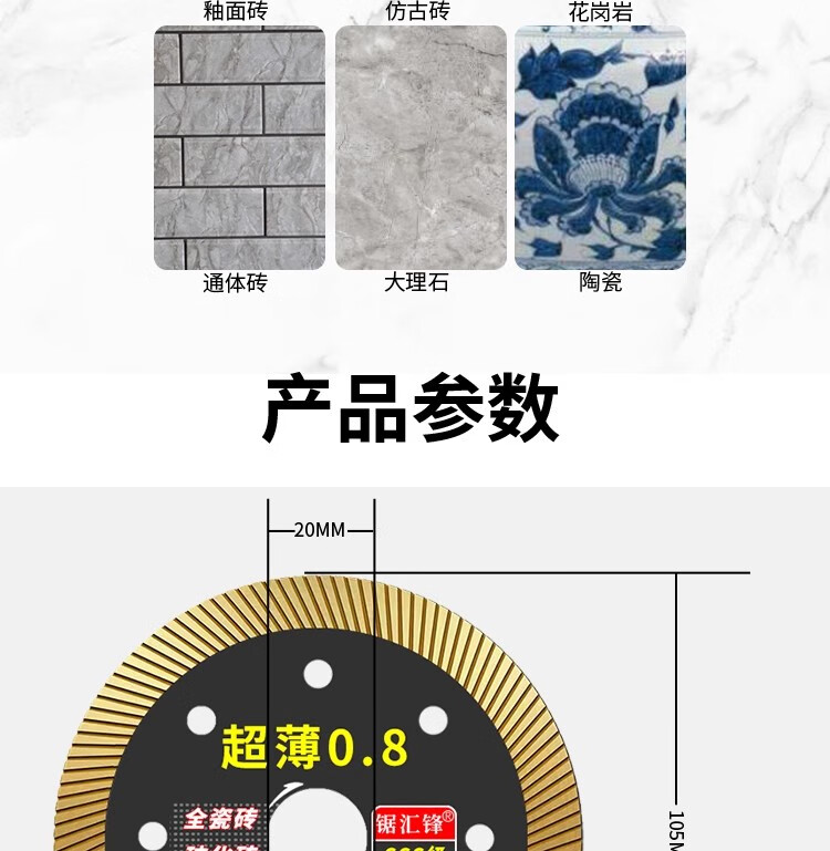 Saw Huifeng ceramic tile cutting blade, ultra-thin dry cutting, special ceramic vitrified tiles, diamond marble machine blade without chipping, black gold ultra-thin 0.8 cutting blade, sharp without chipping, newly upgraded 2-piece pack + reducing ring