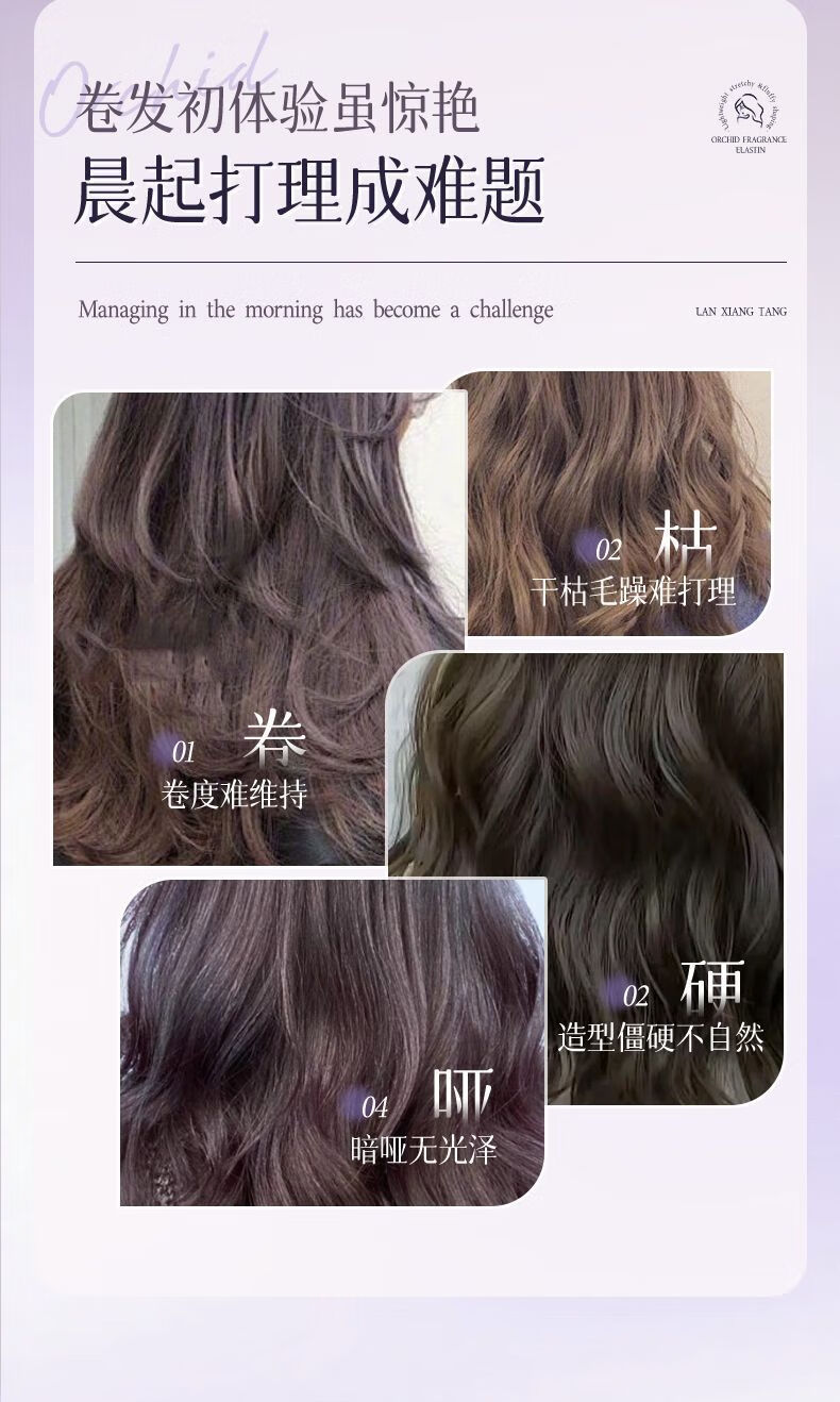 Lanxiangtang curl-protecting fragrance elastin repairs, perms, and dyes frizzy, fluffy, moisturizing, and long-lasting curls. SN6765 is available at great value during the event.