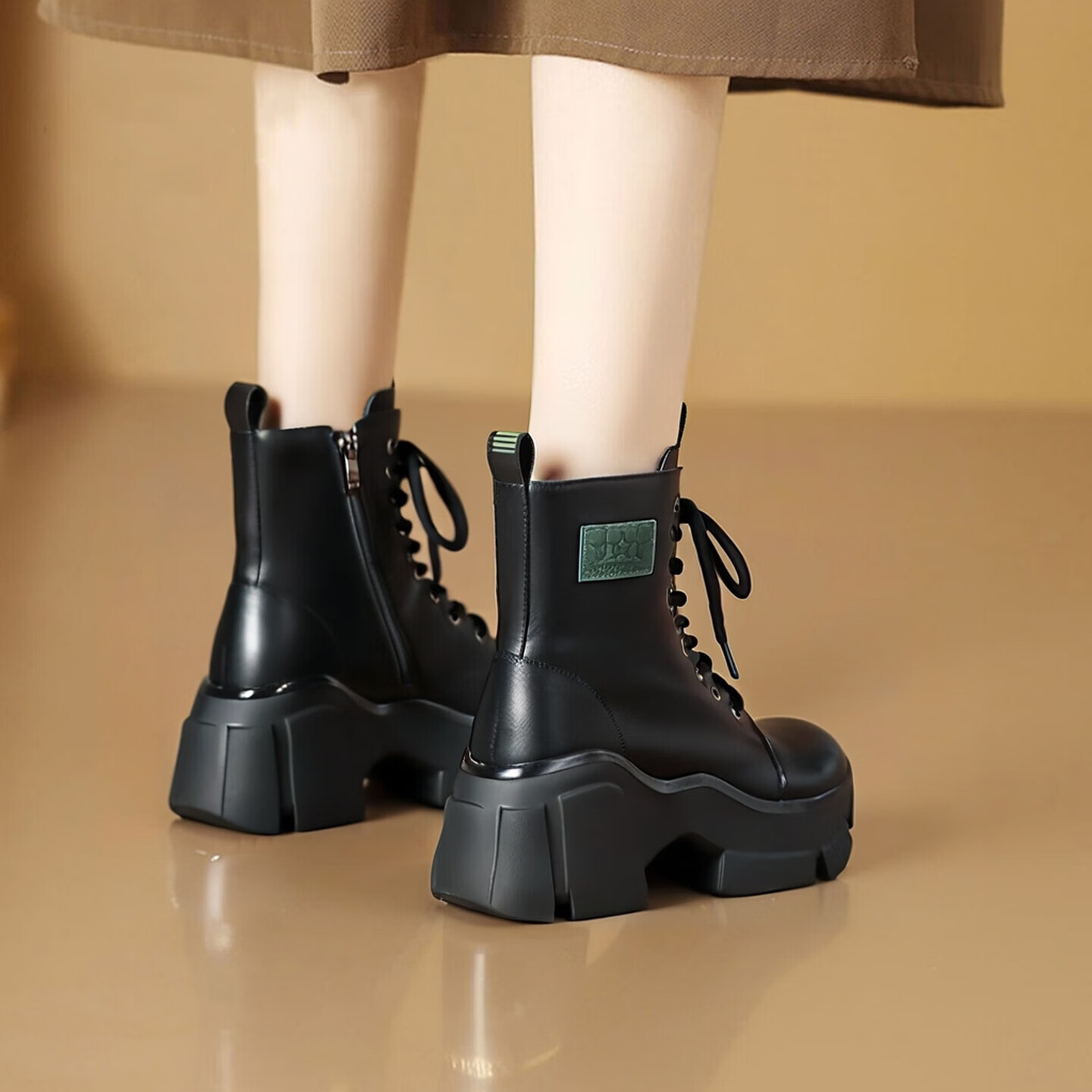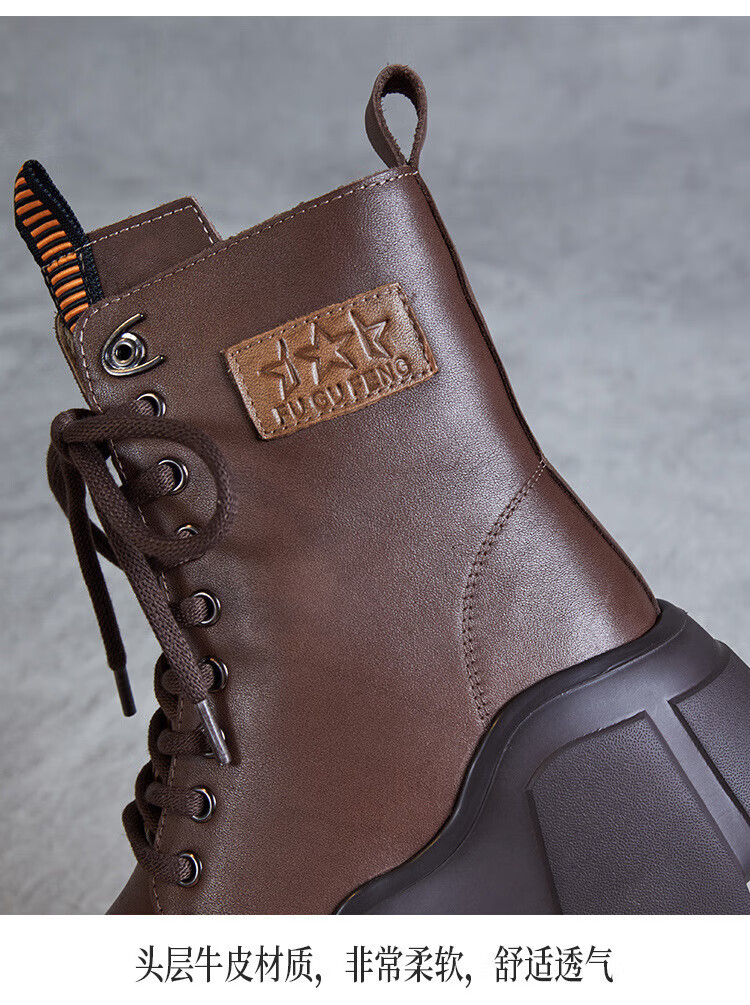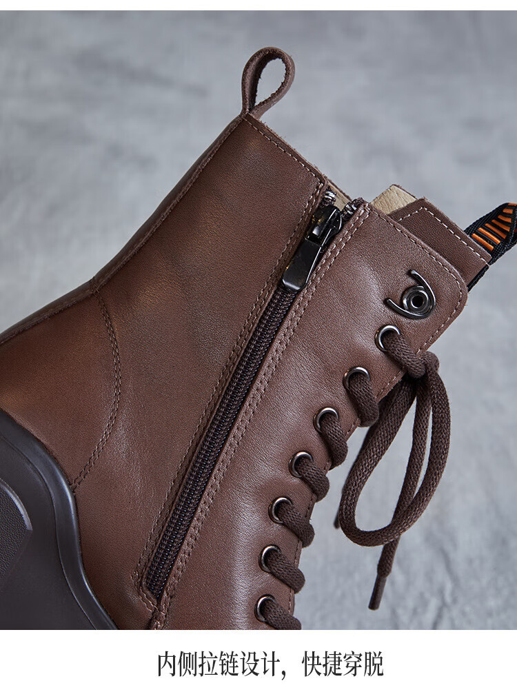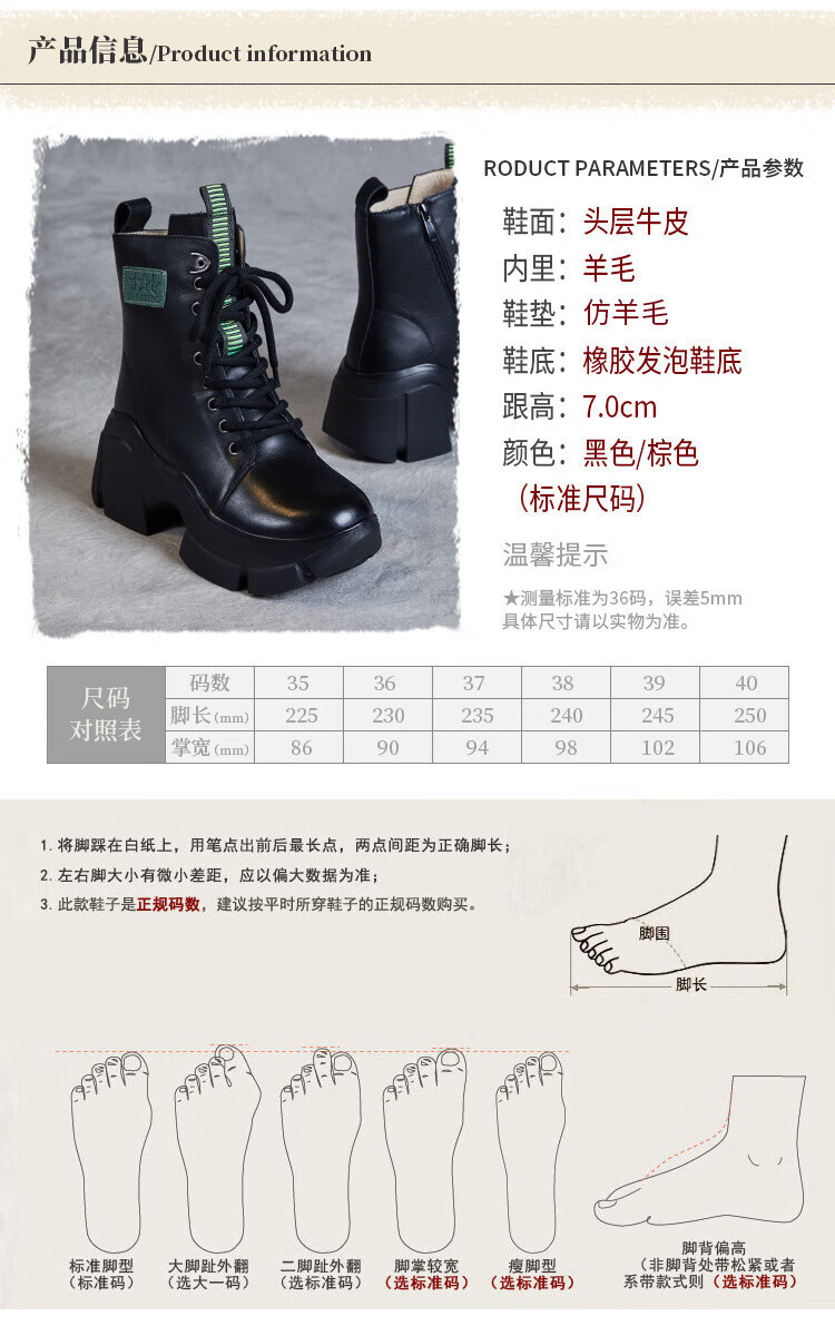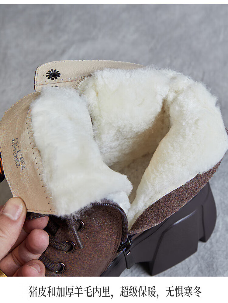 QIPUSEN brand snow boots for women, plus velvet and thickened northeastern cotton shoes for women, 2025 winter new genuine leather wool Martin boots for women, black 37