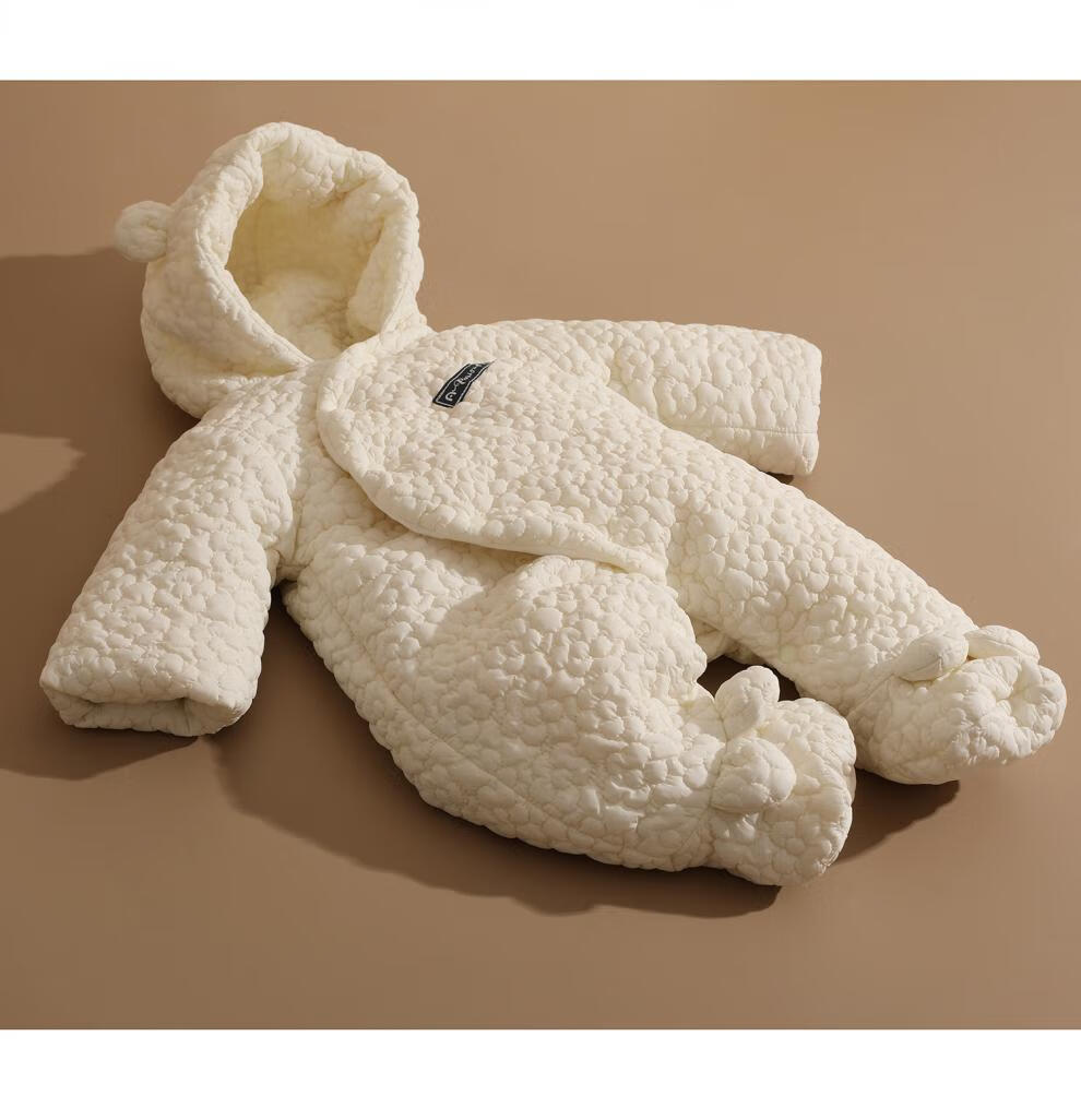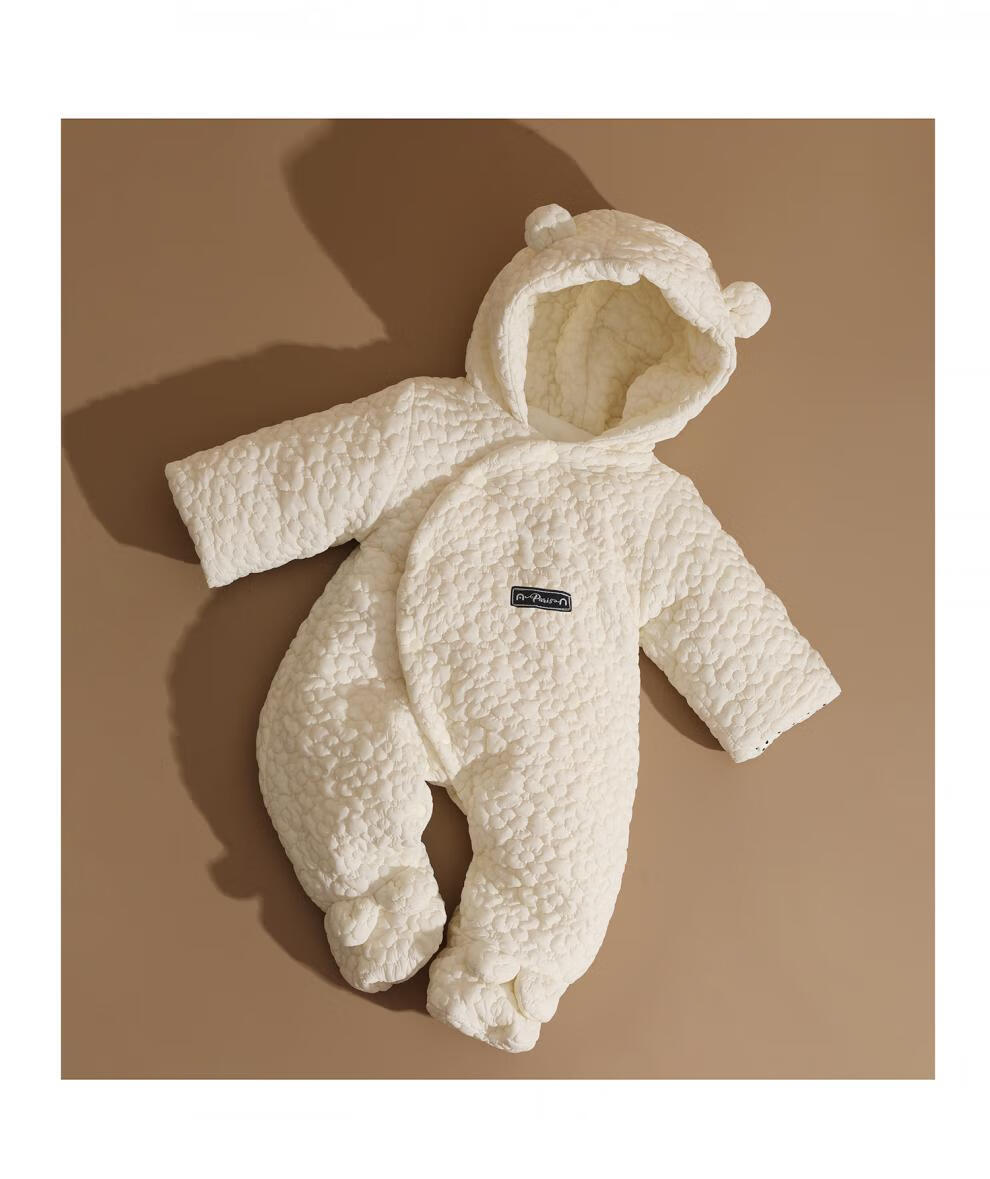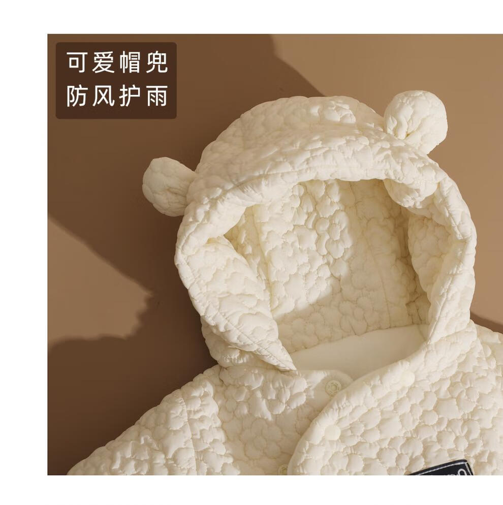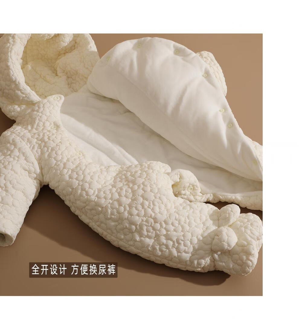 British-style newborn baby clothes, winter jumpsuit, foot-covering full-month baby plus velvet thickened cotton coat, beige three-dimensional jacquard foot-covering cotton coat 59cm _0-3 months