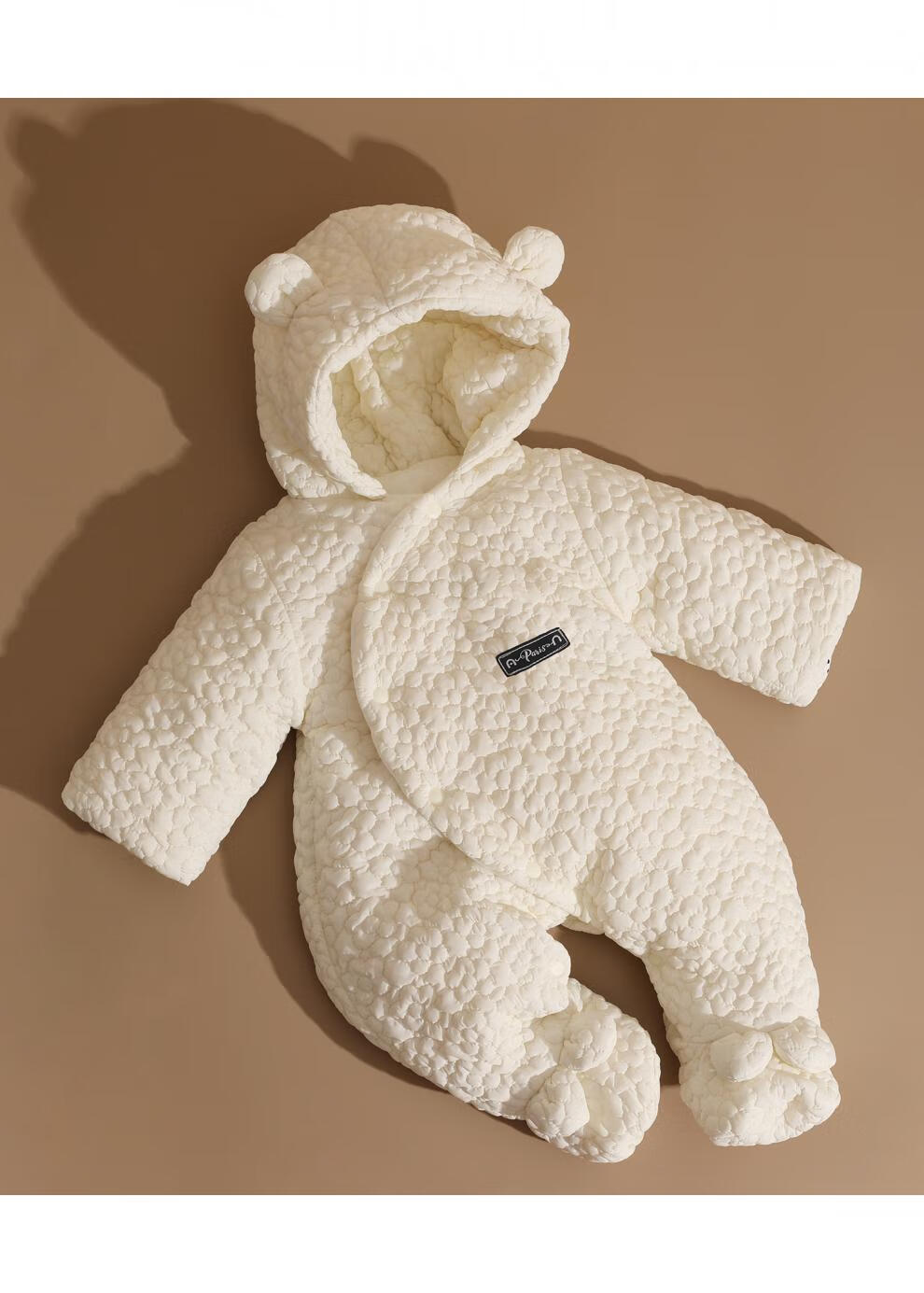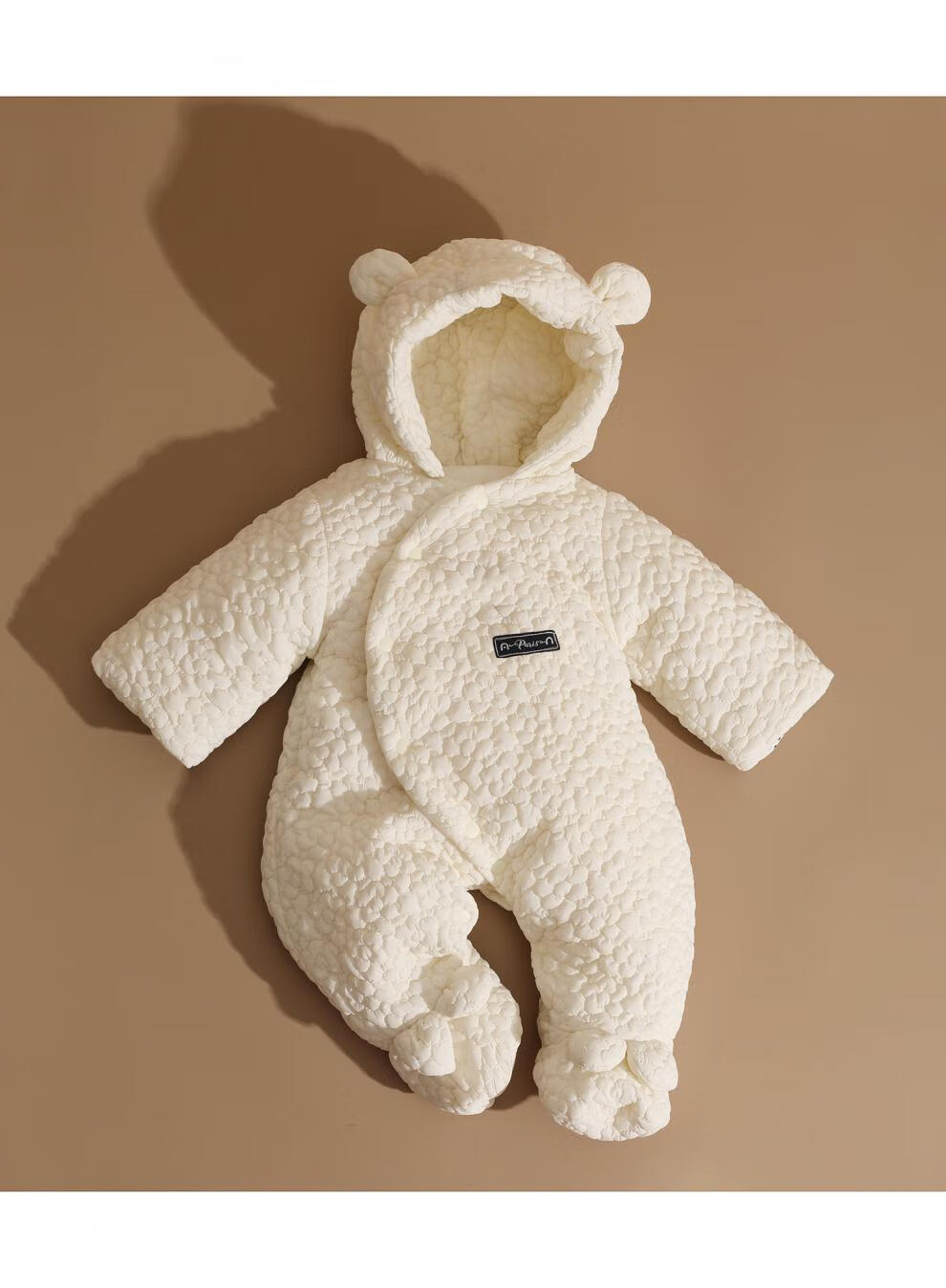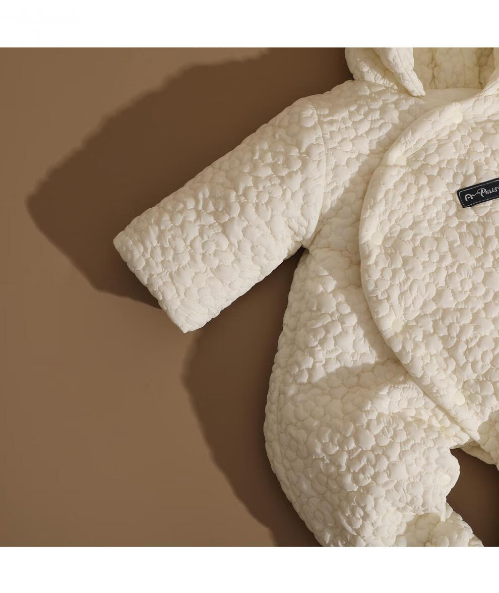 British-style newborn baby clothes, winter jumpsuit, foot-covering full-month baby plus velvet thickened cotton coat, beige three-dimensional jacquard foot-covering cotton coat 59cm _0-3 months