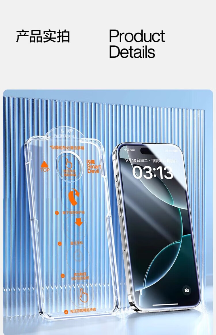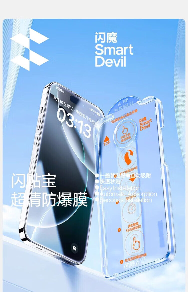 SmartDevil Flash Sticker is suitable for iphone16/15promax tempered film Apple 16 mobile phone film 15Pro new 14 film artifact 13 HD 12 full screen 16e dustproof 11 dust-free