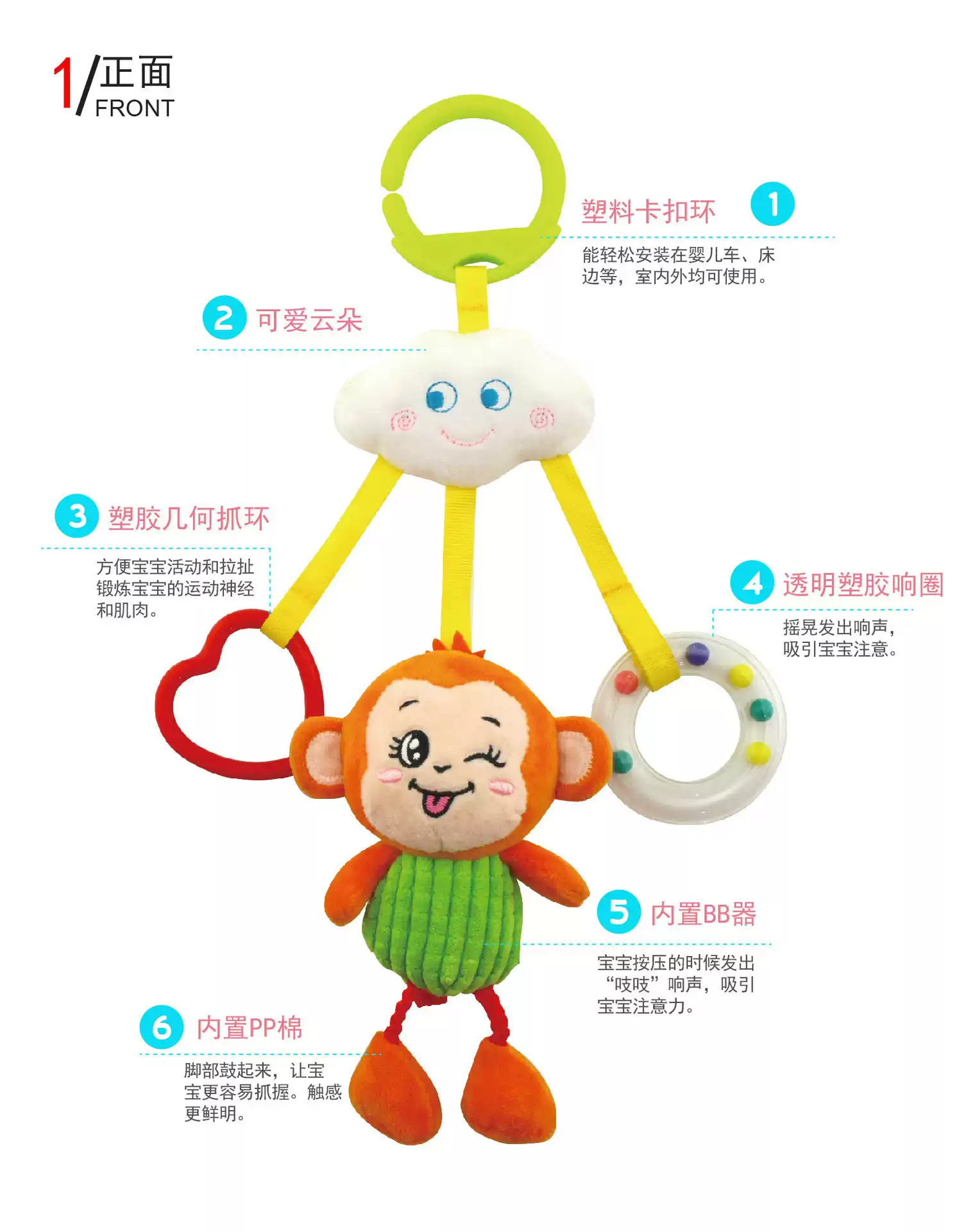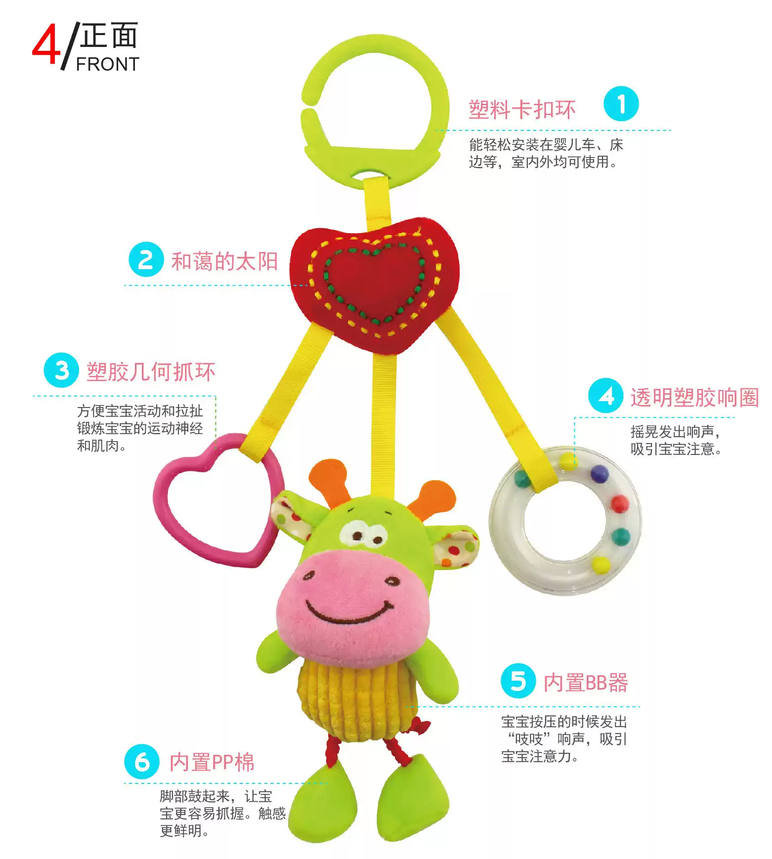 TKHE Baby Car Bed Hanging Toy 0-1 Years Old Bedside Car Hanging Newborn Soothing Plush Bed Bell Green Fawn Bed Bell