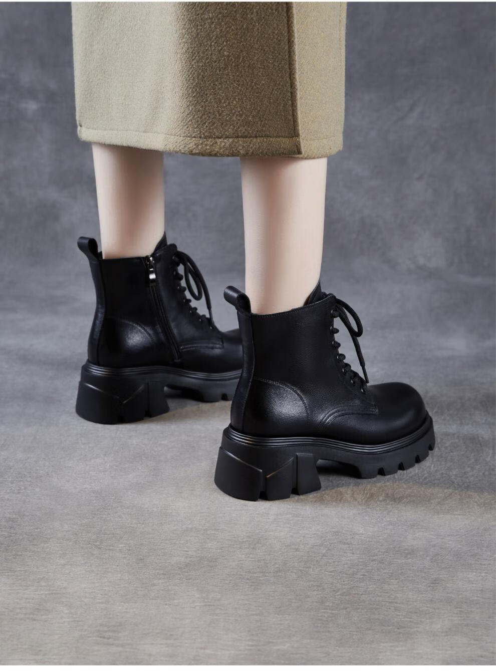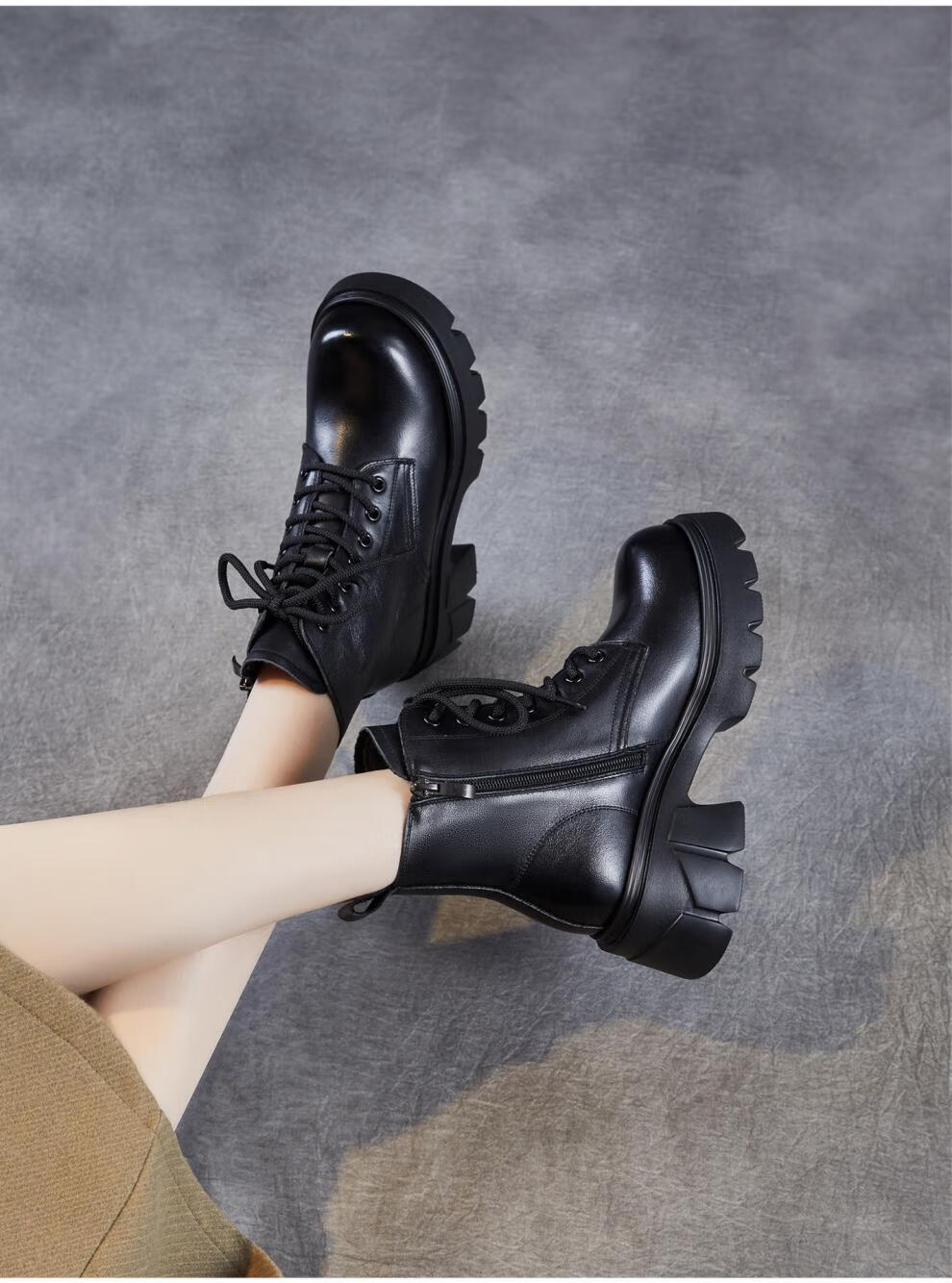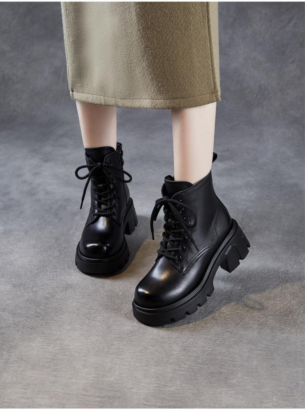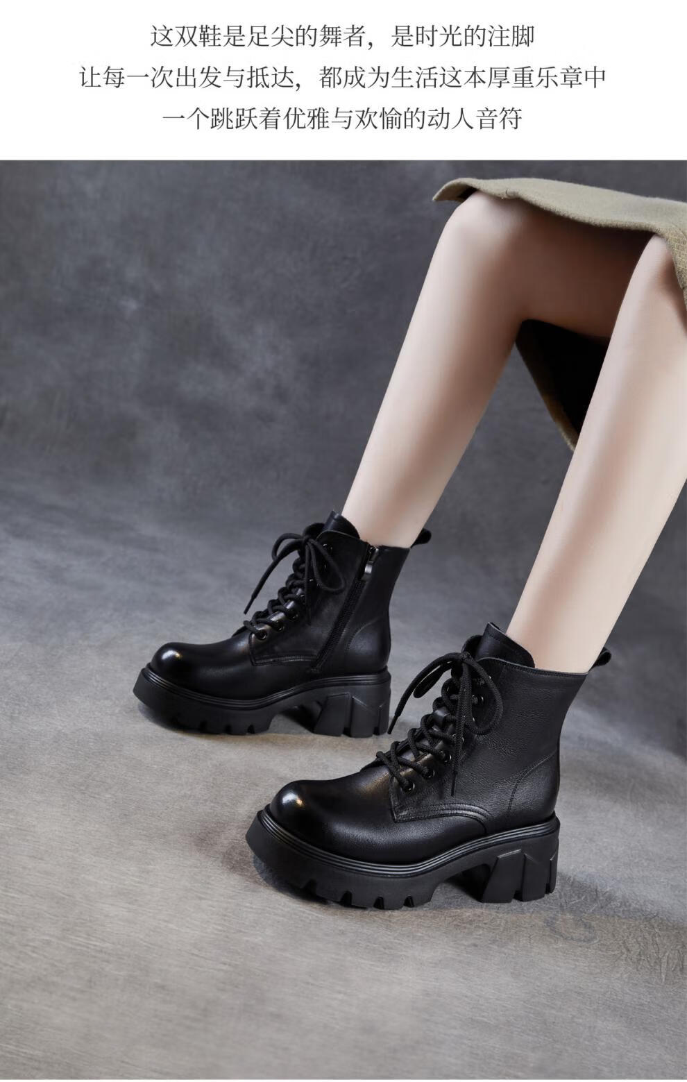 Kangnai Martin boots women's British style 2025 autumn and winter new single boots retro light luxury thick soles slim lace-up leather boots black 36
