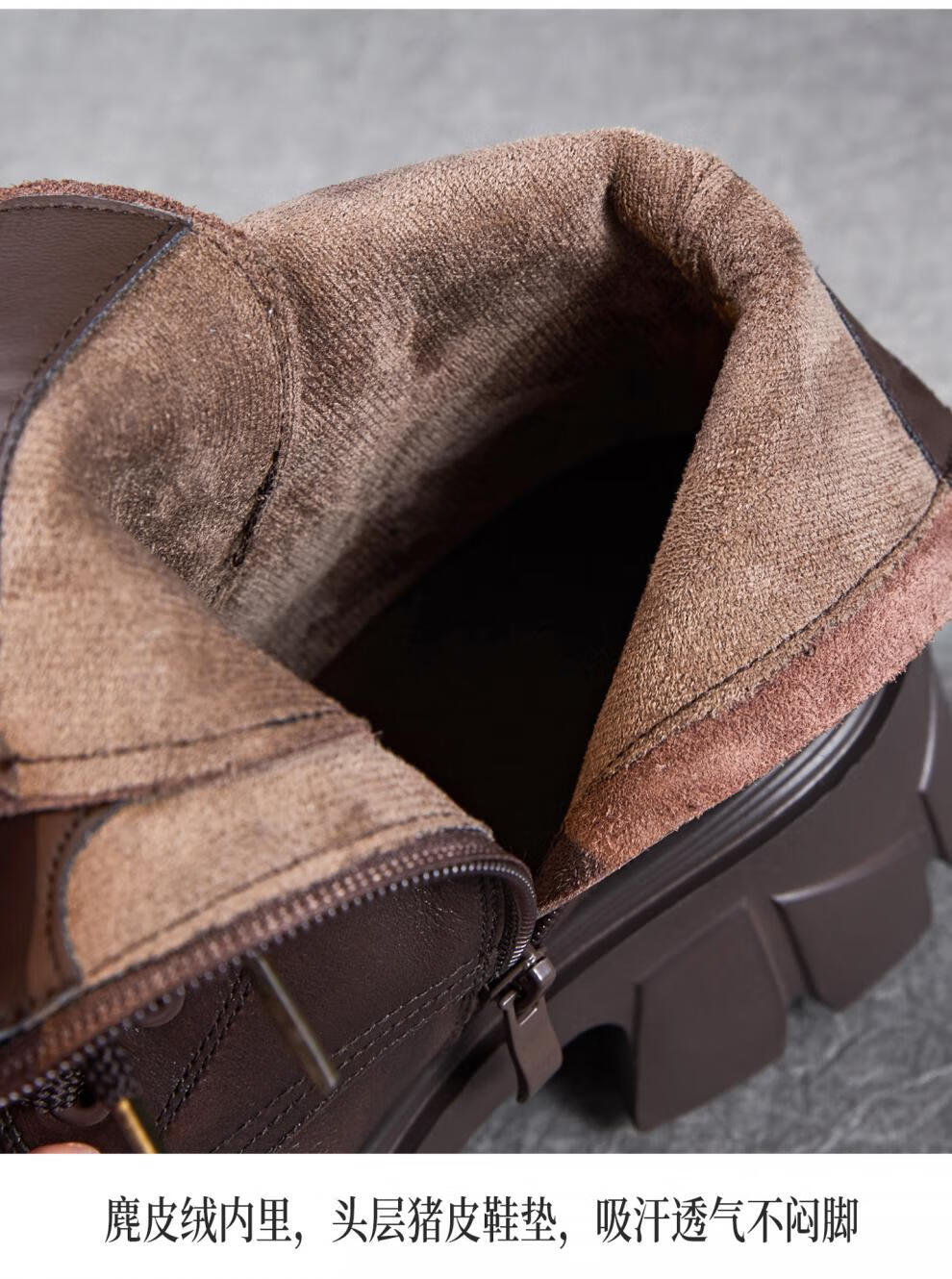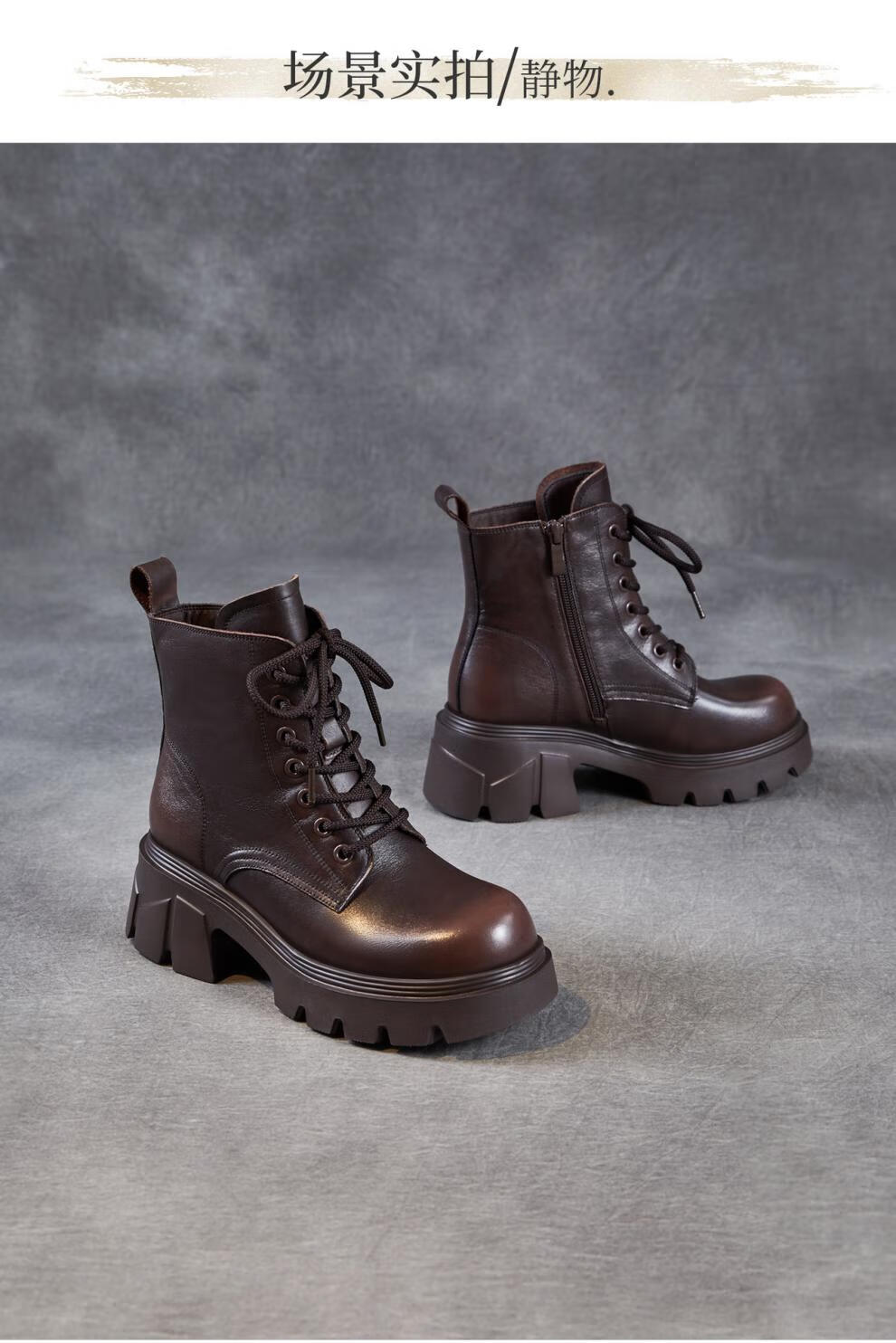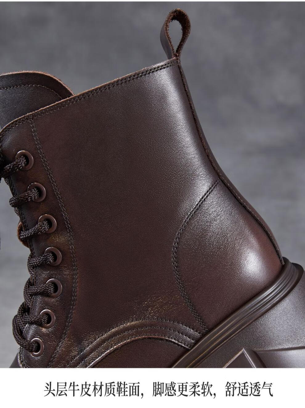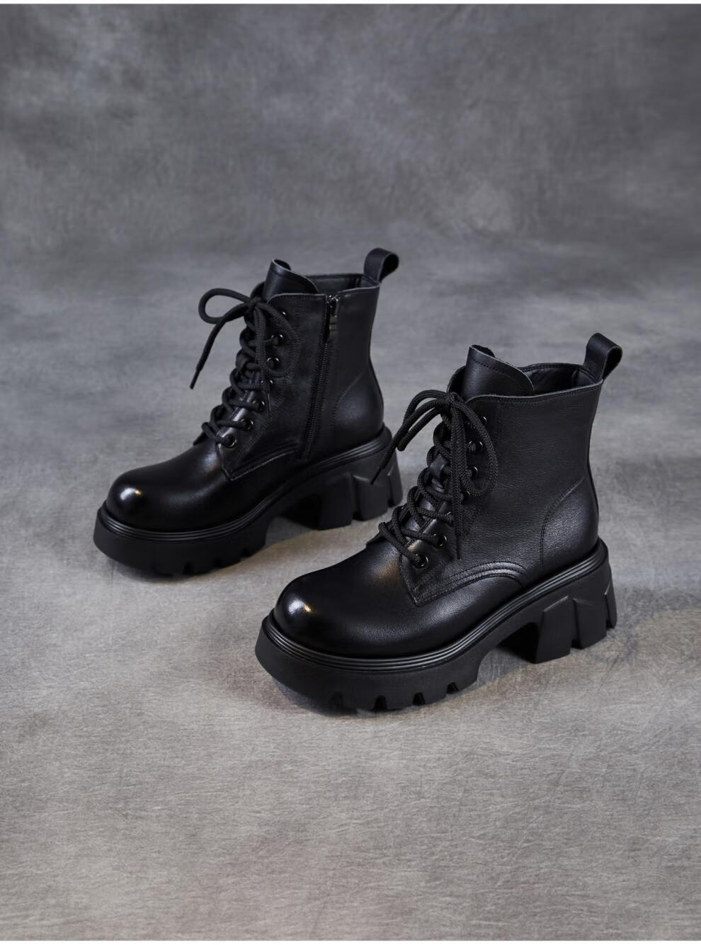Kangnai Martin boots women's British style 2025 autumn and winter new single boots retro light luxury thick soles slim lace-up leather boots black 36
