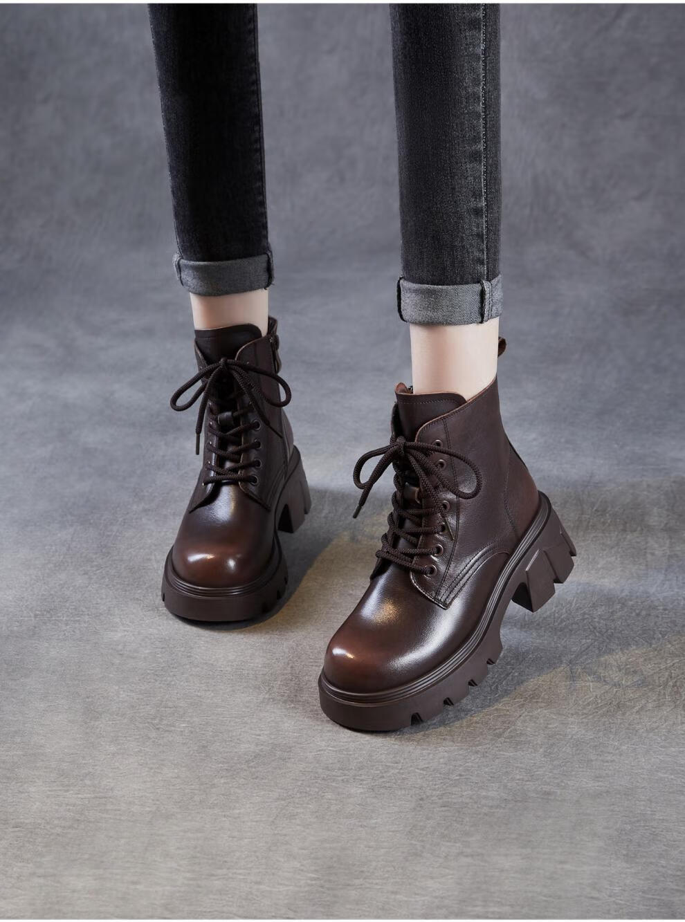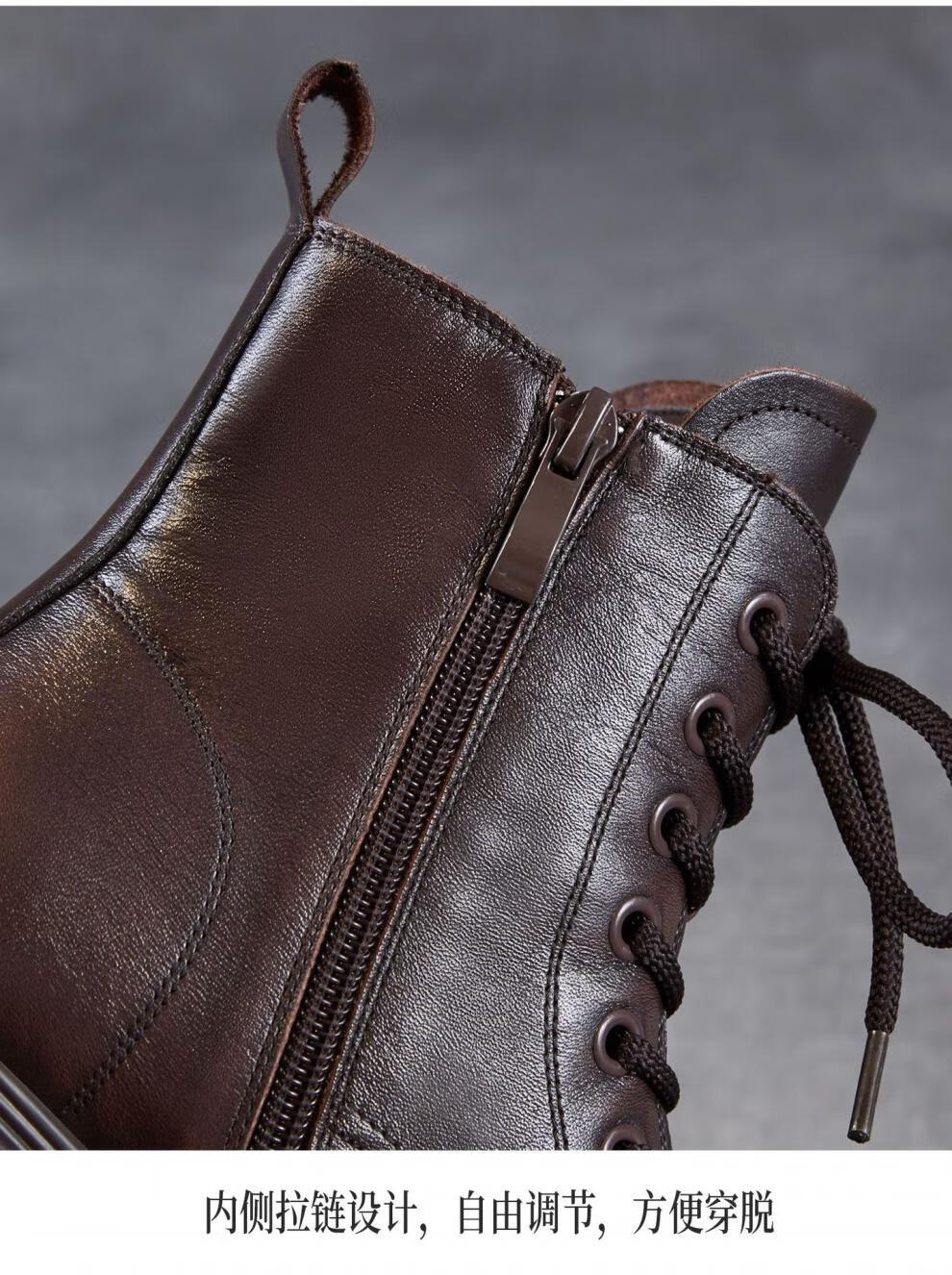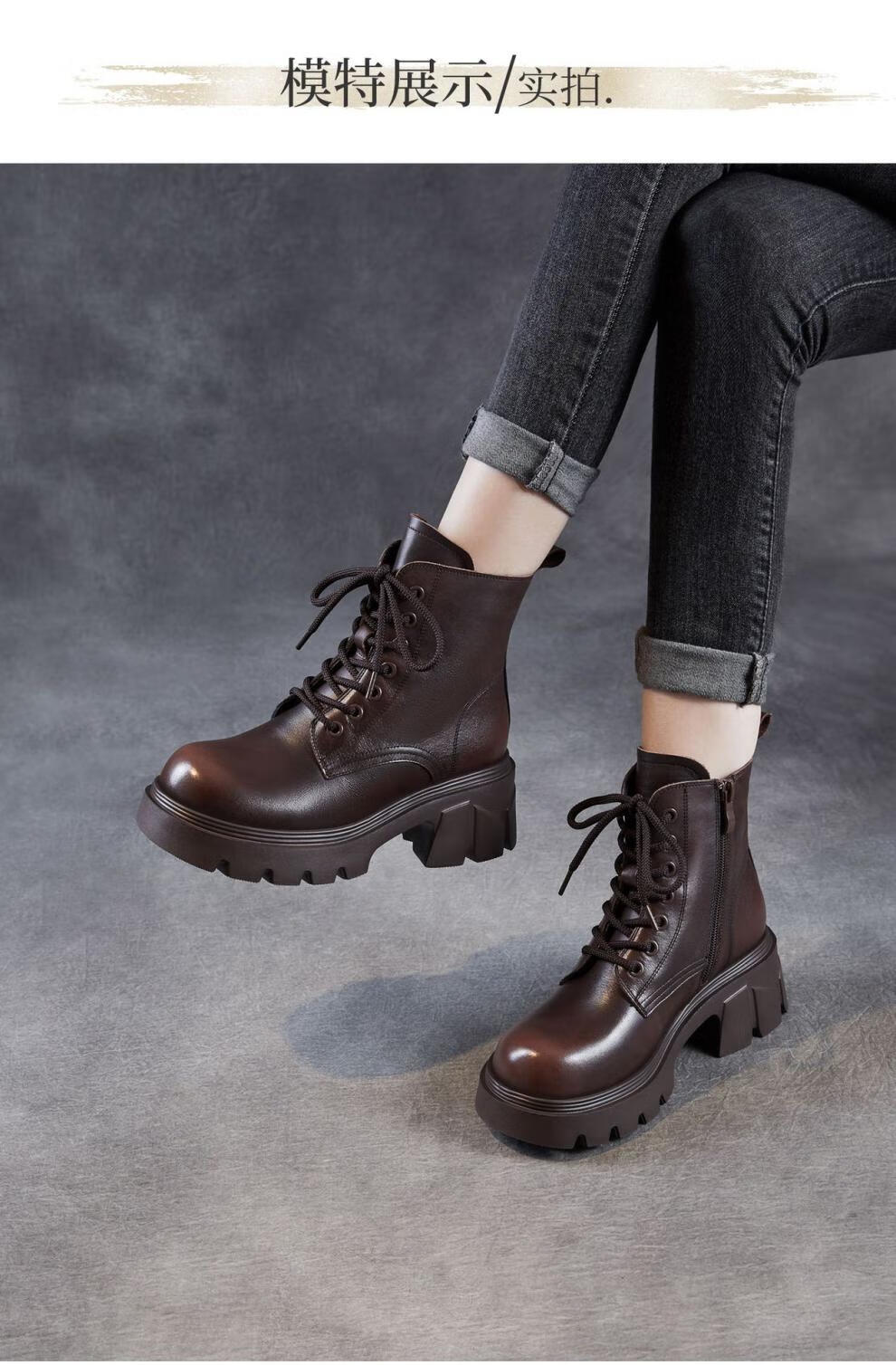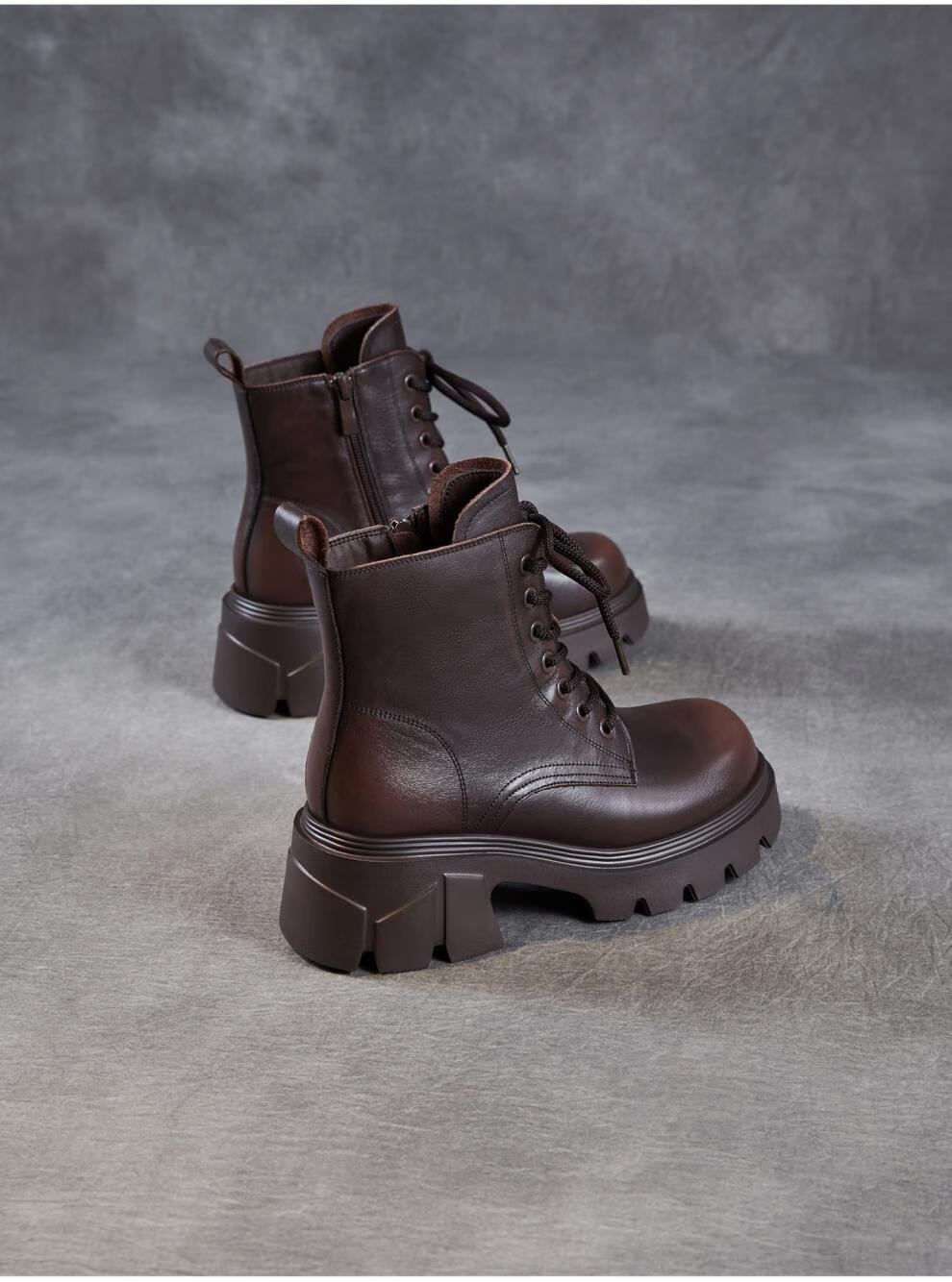 Kangnai Martin boots women's British style 2025 autumn and winter new single boots retro light luxury thick soles slim lace-up leather boots black 36