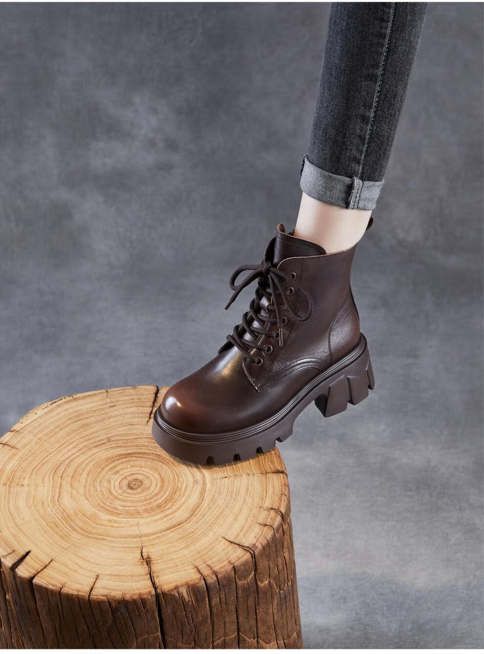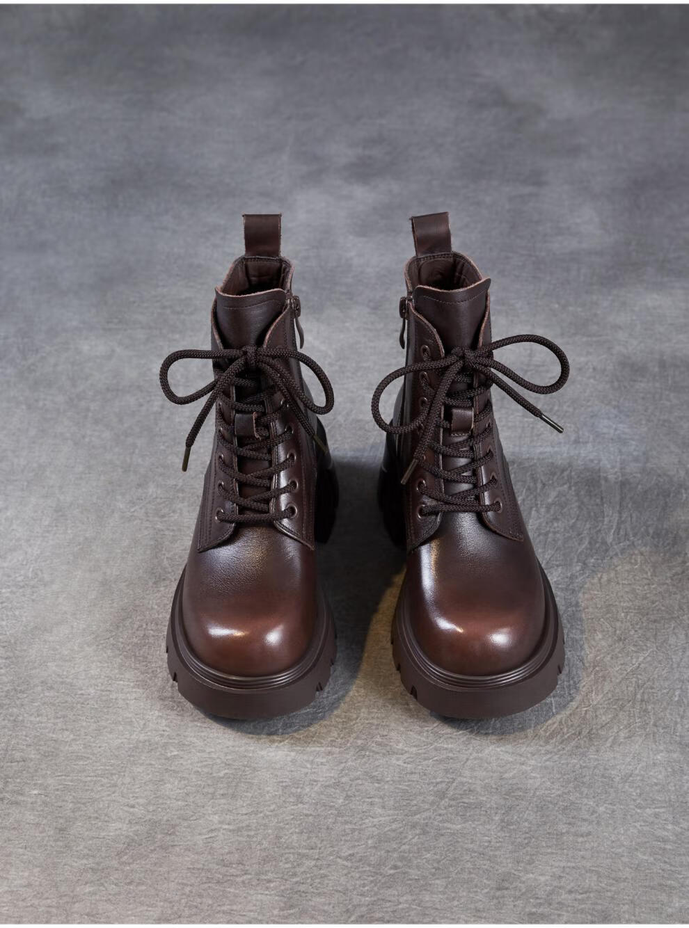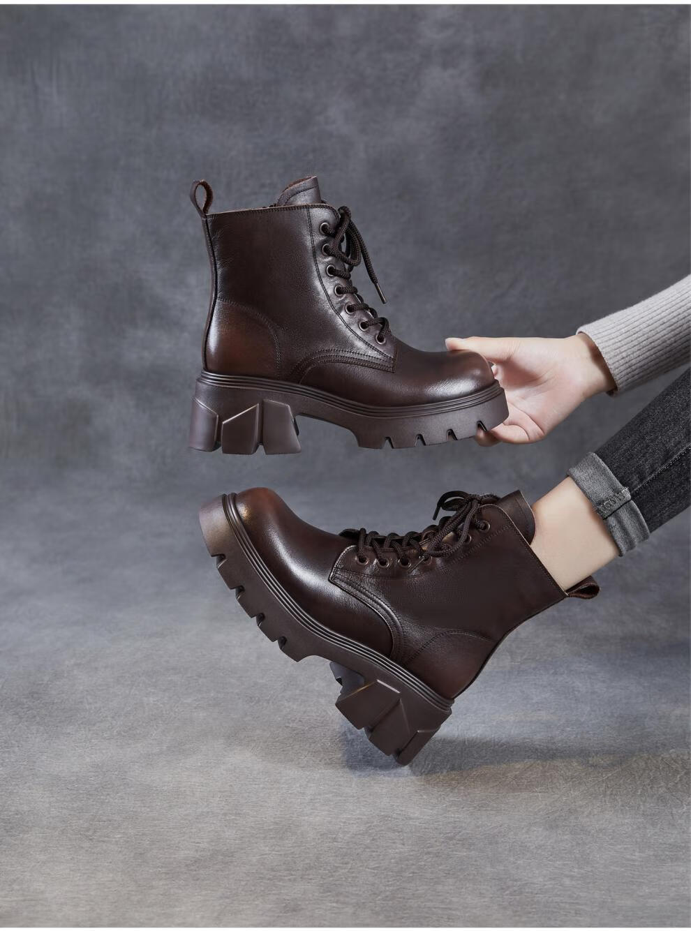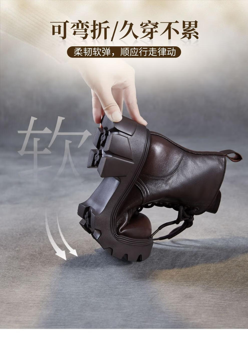 Kangnai Martin boots women's British style 2025 autumn and winter new single boots retro light luxury thick soles slim lace-up leather boots black 36