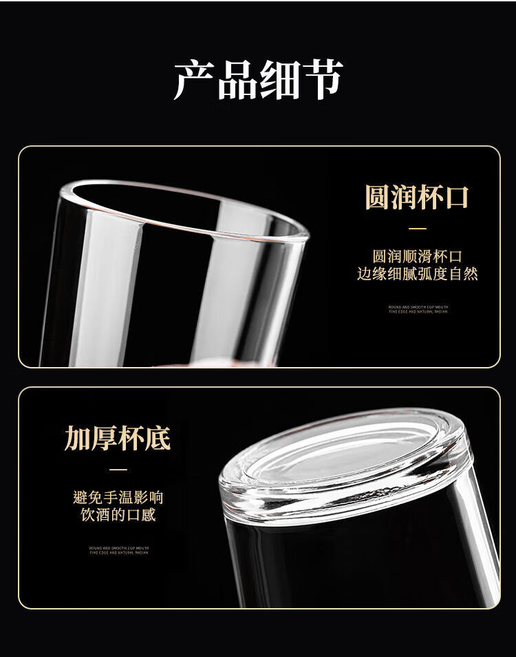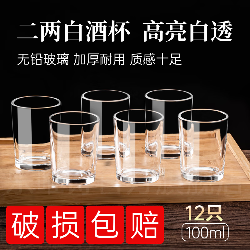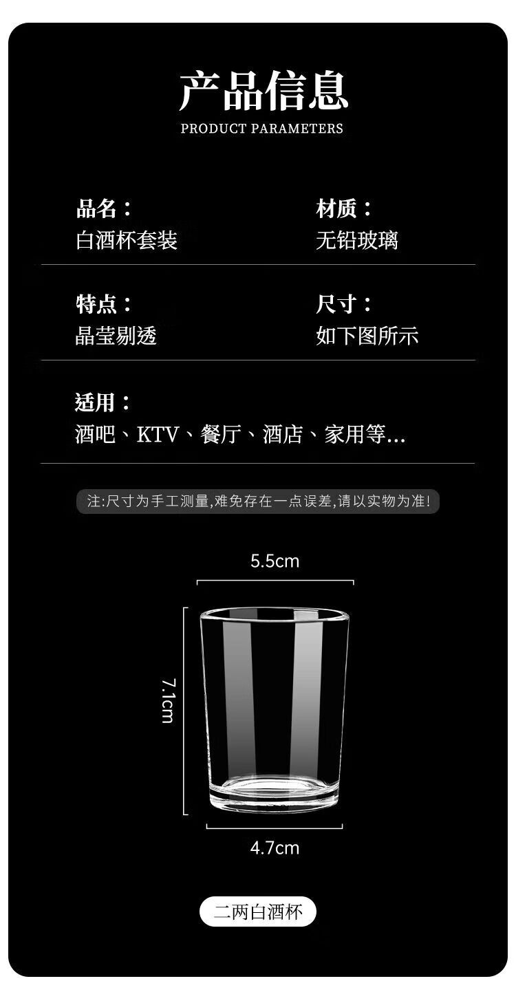 Qinkai glass white wine cup 2 liang white wine glass household wine set lead-free spirit cup one cup thickened wine cup 2 liang wine glass transparent and beautiful 6 pieces