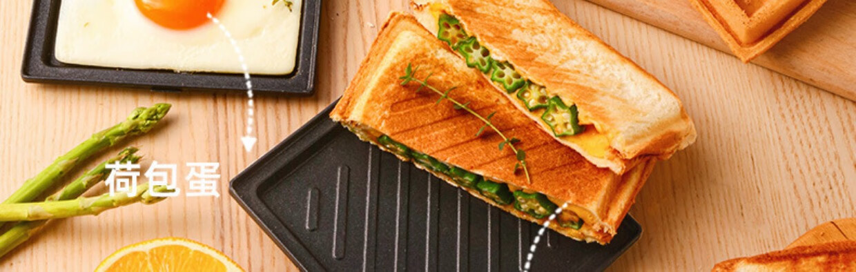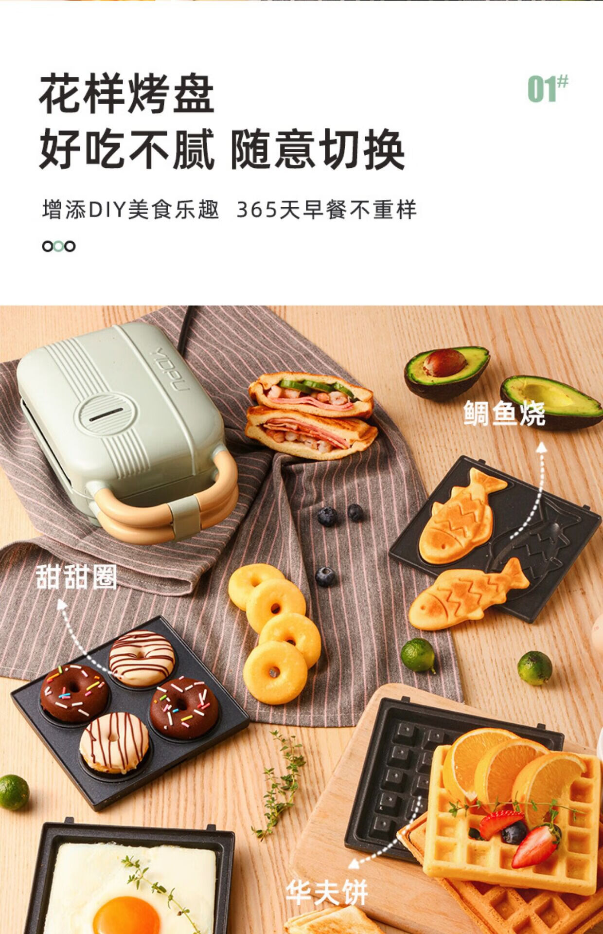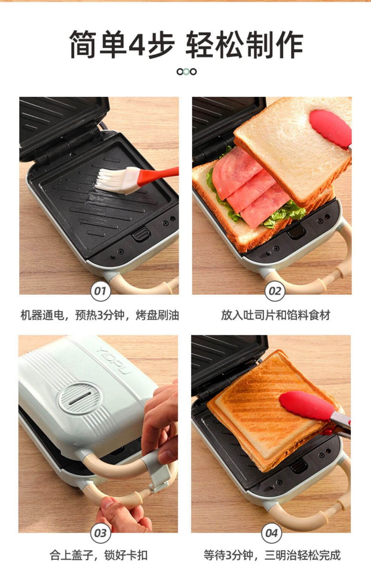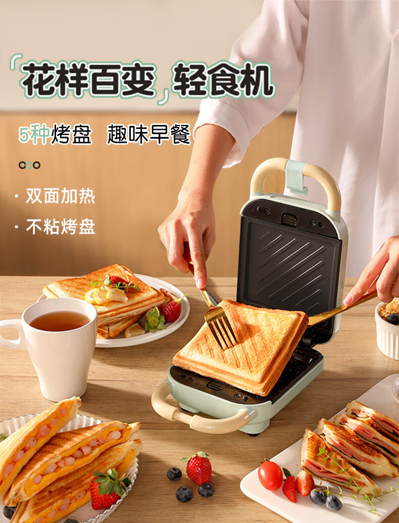 Japanese sandwich breakfast machine multi-function mini small artifact toast waffle machine toaster upgraded timer model - red five sets of baking pans