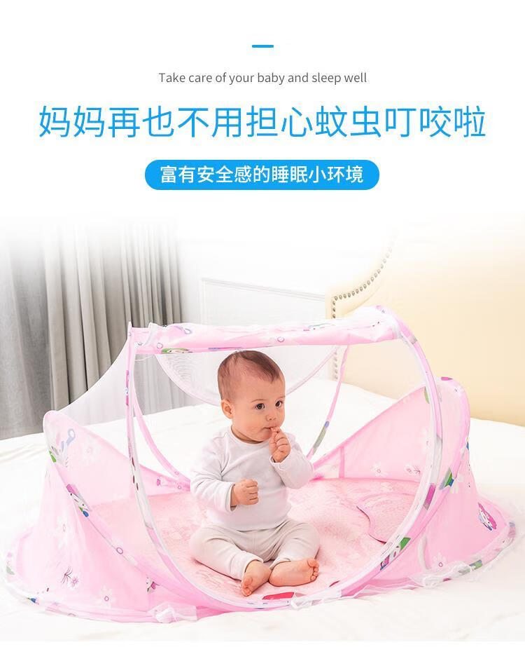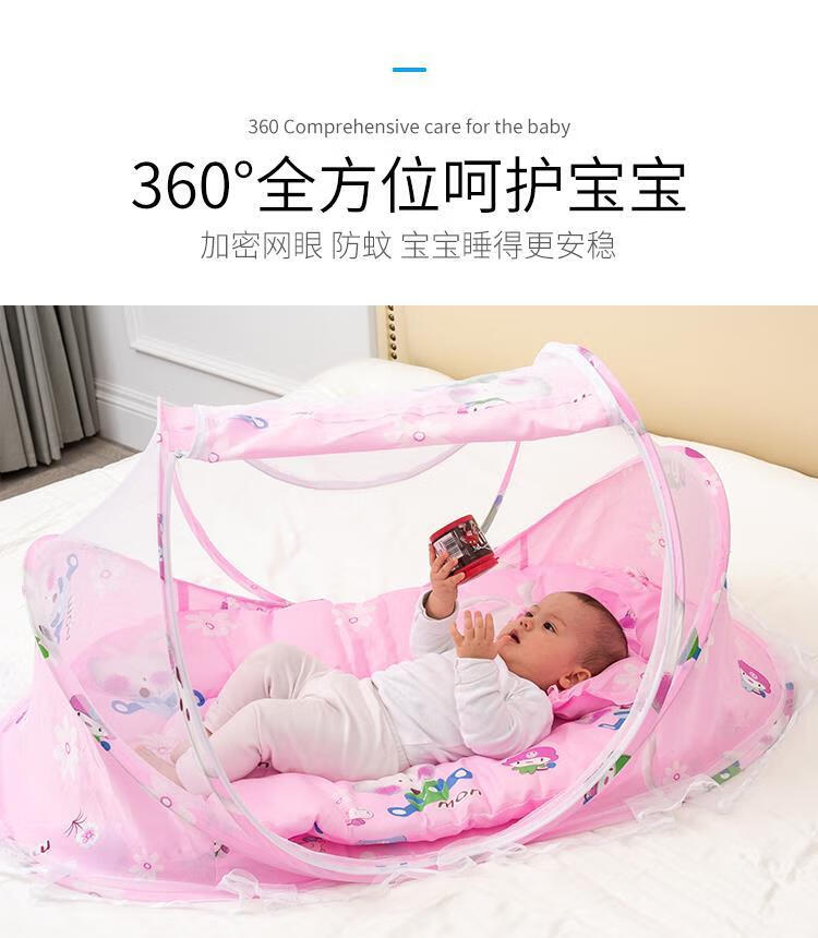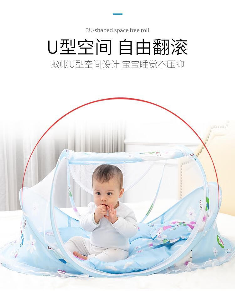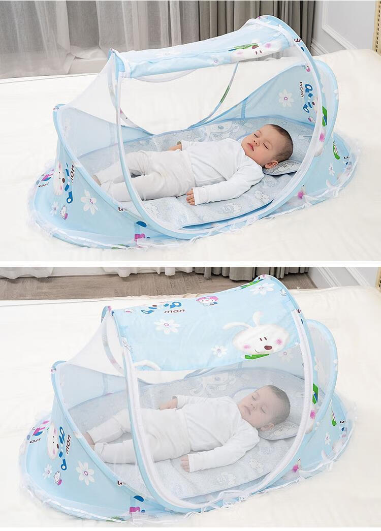 Pickup Cat Portable Foldable Baby Mosquito Net Encrypted Pattern Net Baby Protective Cover Blue Twill Mosquito Net