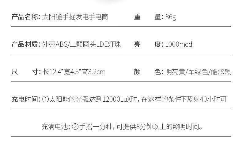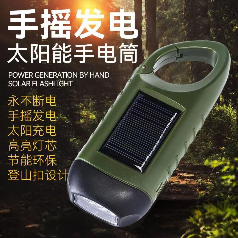 Five-in-one flashlight, household emergency hand-cranked generator, strong light, solar charging, disaster preparedness, multi-function, third-generation German technology, hand-cranked generator + solar energy