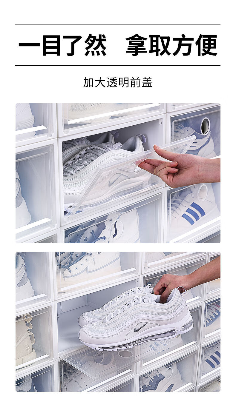 Pack of 20 thickened shoe box storage box, transparent drawer-type shoe artifact, space-saving plastic shoe cabinet, pull-out type 0x0x0cm, hard back cover with stronger load-bearing capacity, 46 points, 5 yards, transparent squares, 18 pieces in total