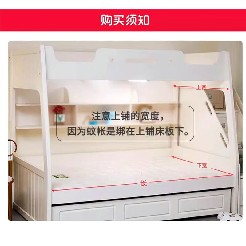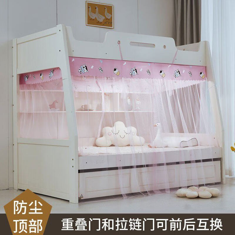 Yusenyi Mosquito Net Double Door Mosquito Net Bookshelf Trapezoid Household Bunk Bed High and Low Bunk Bed Tie and Rope Style - Little Dinosaur White Mesh 1.02m Bottom Bunk Top Width 90cm - Length 190