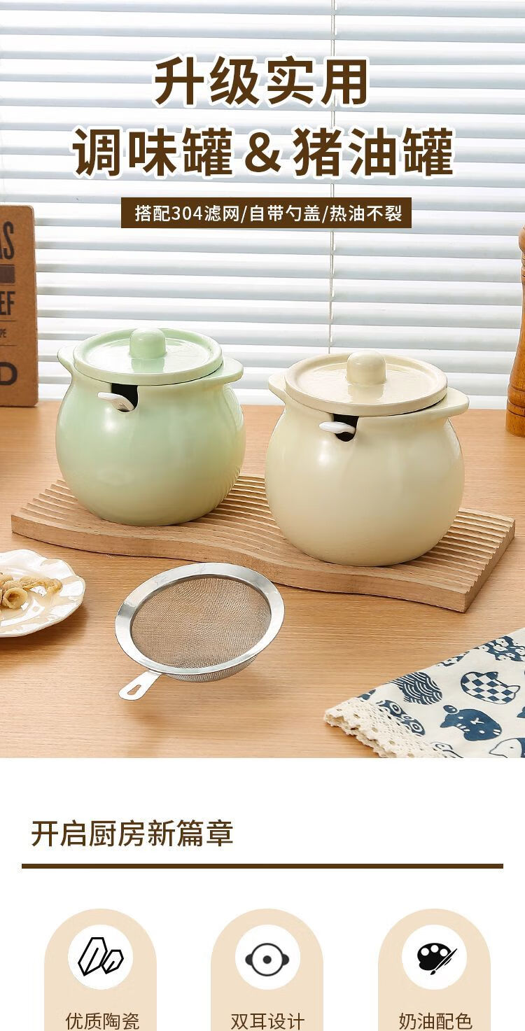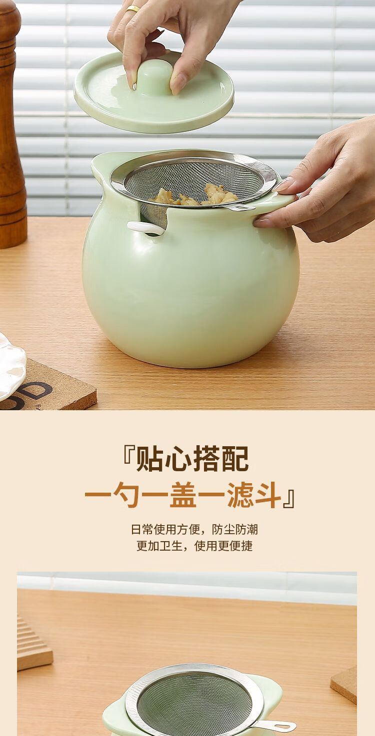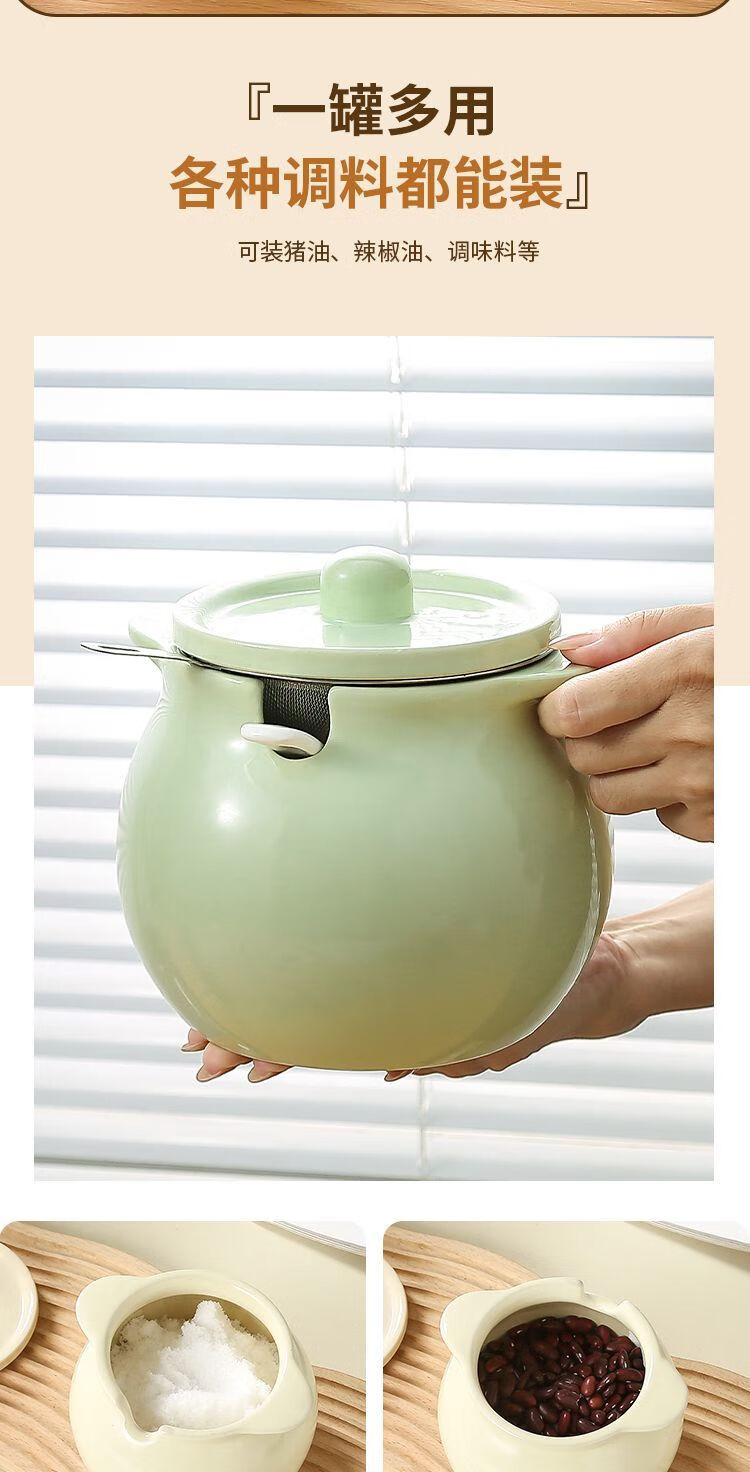 CG dust-proof and moisture-proof large oil tank, high temperature resistant oil tank, pepper tank, chili oil ceramic lard tank, home kitchen, high temperature firing, truly non-explosion, medium 0ml lard tank spoon 1