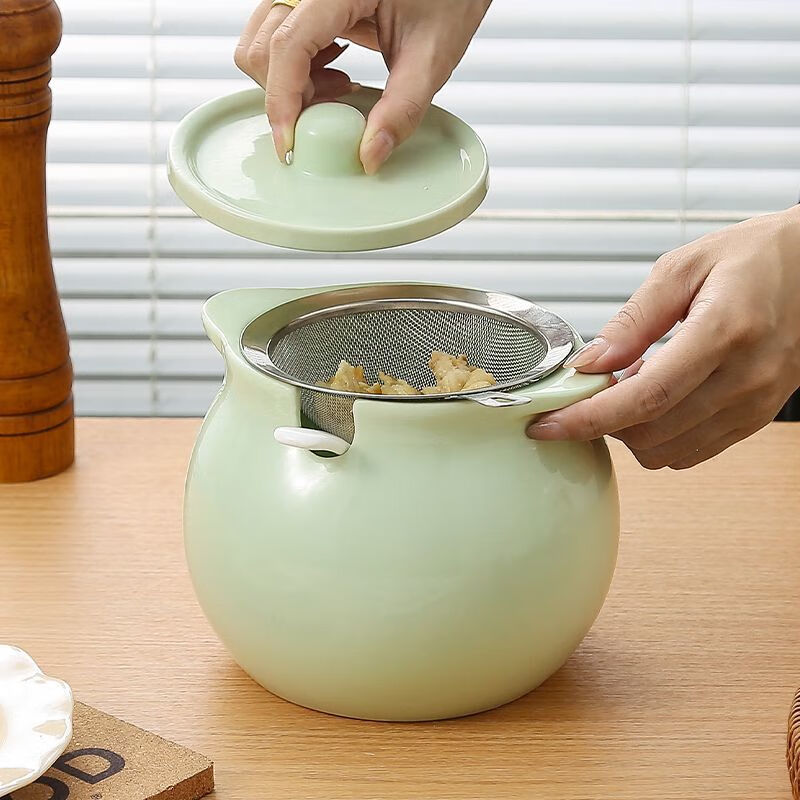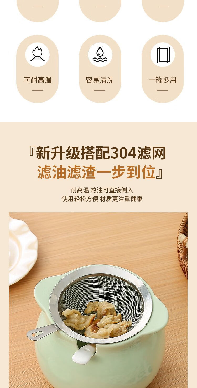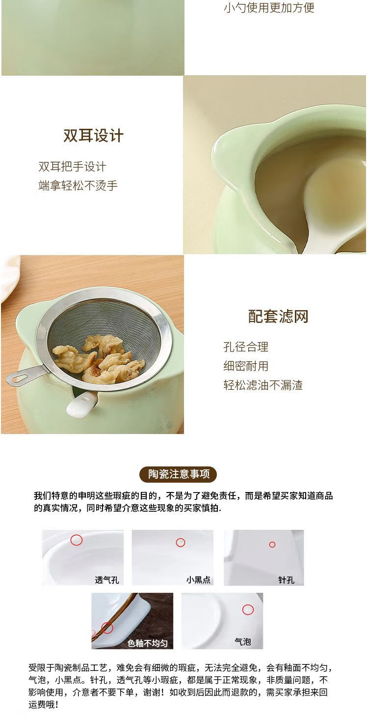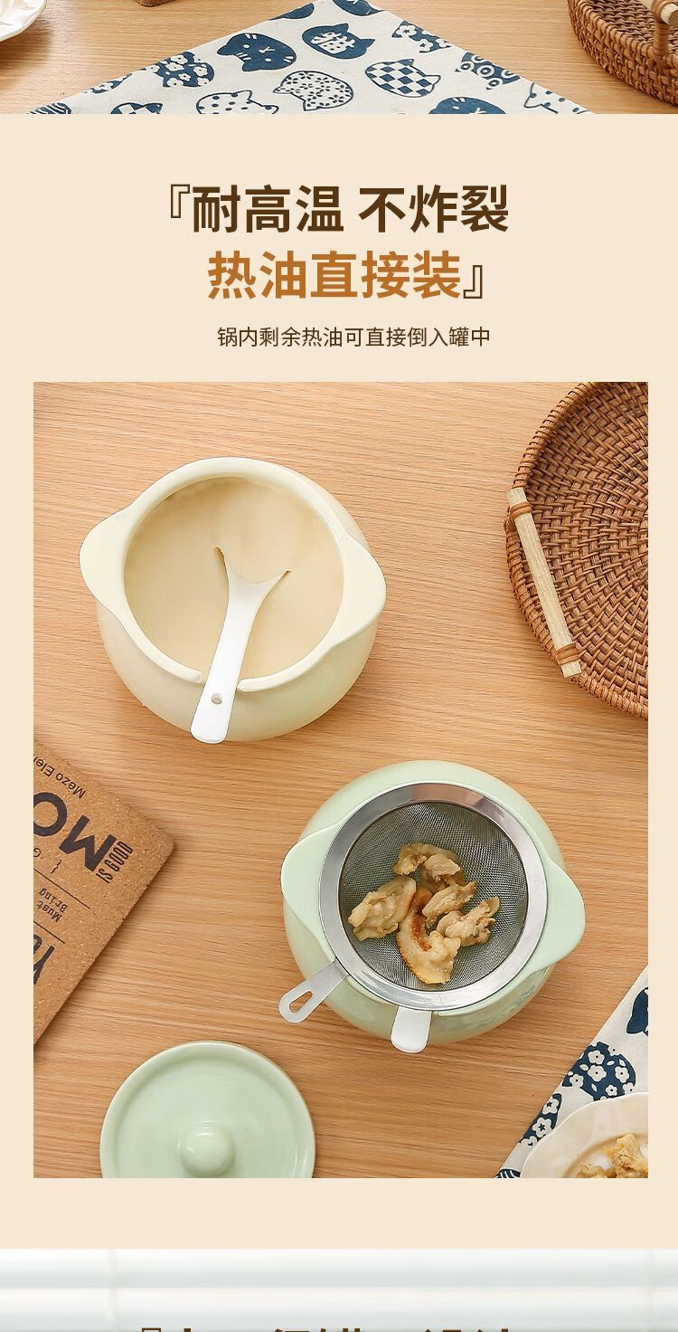 CG dust-proof and moisture-proof large oil tank, high temperature resistant oil tank, pepper tank, chili oil ceramic lard tank, home kitchen, high temperature firing, truly non-explosion, medium 0ml lard tank spoon 1