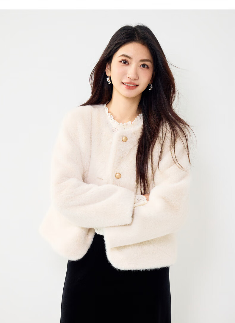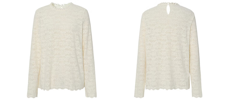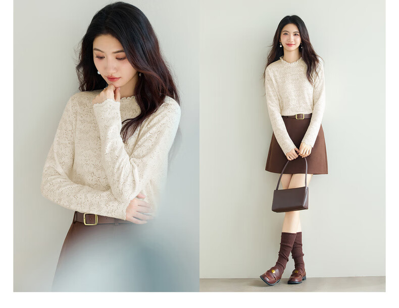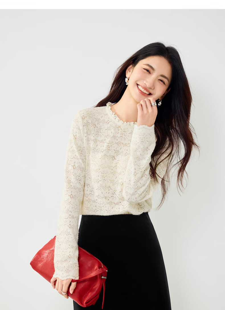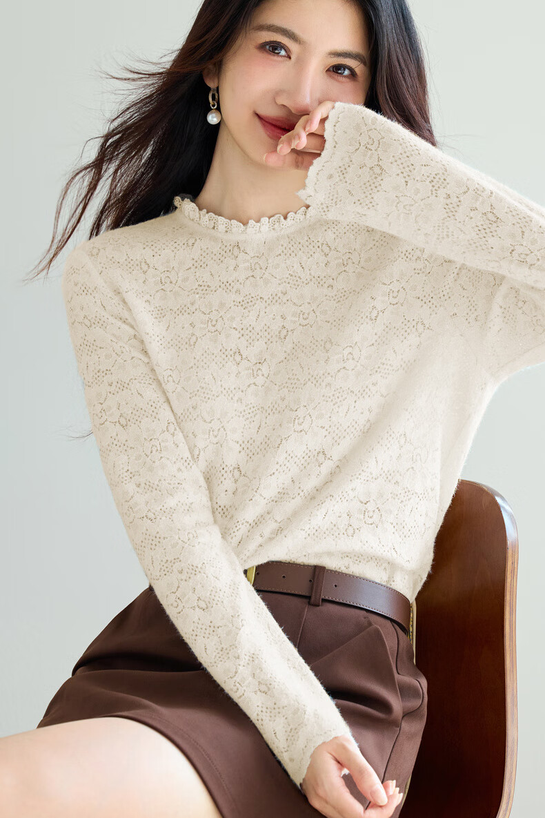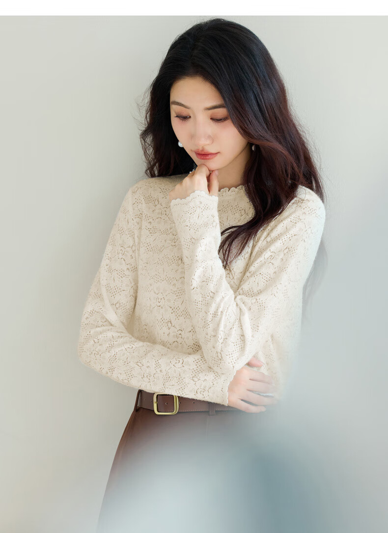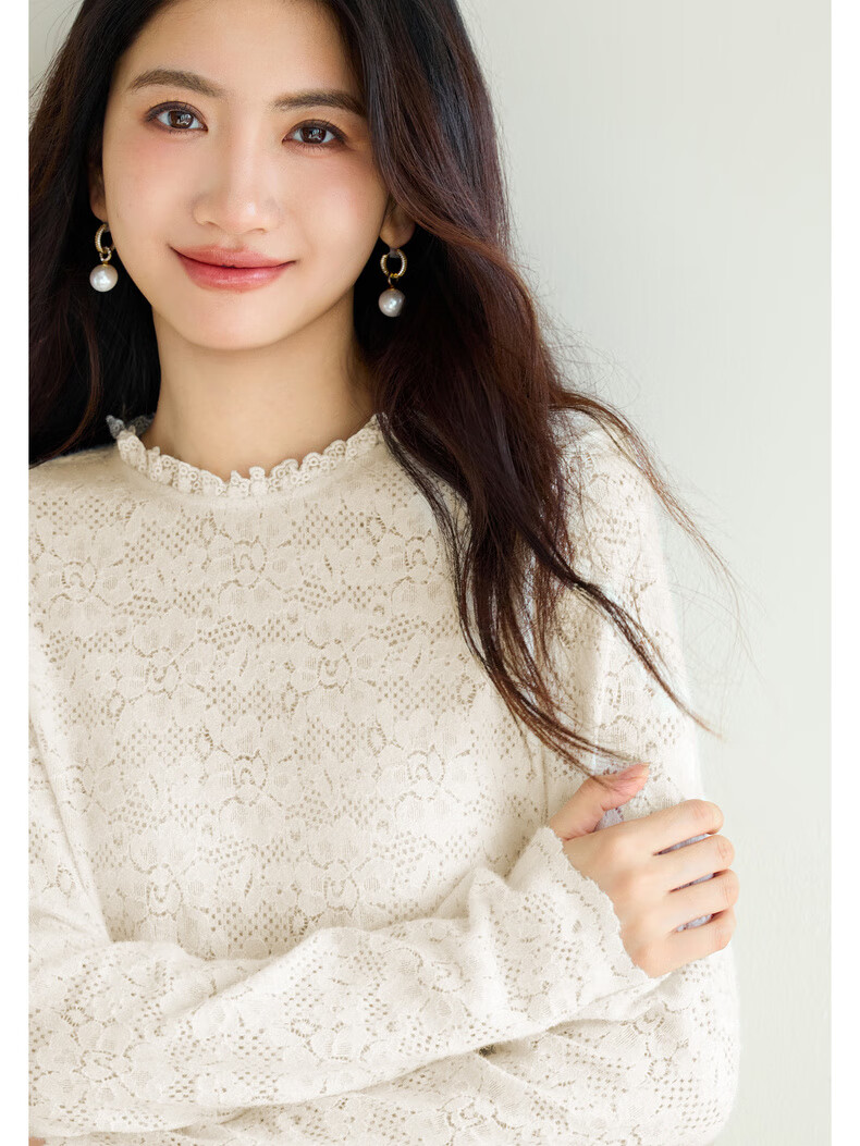 Eveli (eifini) Jiang Xin endorses Eveli brushed lace pullover with artifact bottoming collar lace shirt 2025 winter new style Pearl White S 80-105Jin Jin is equal to 0.5 kg