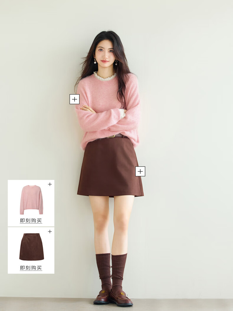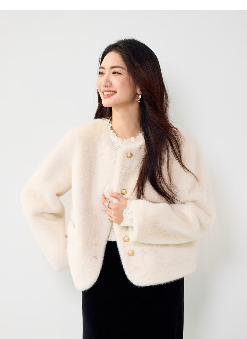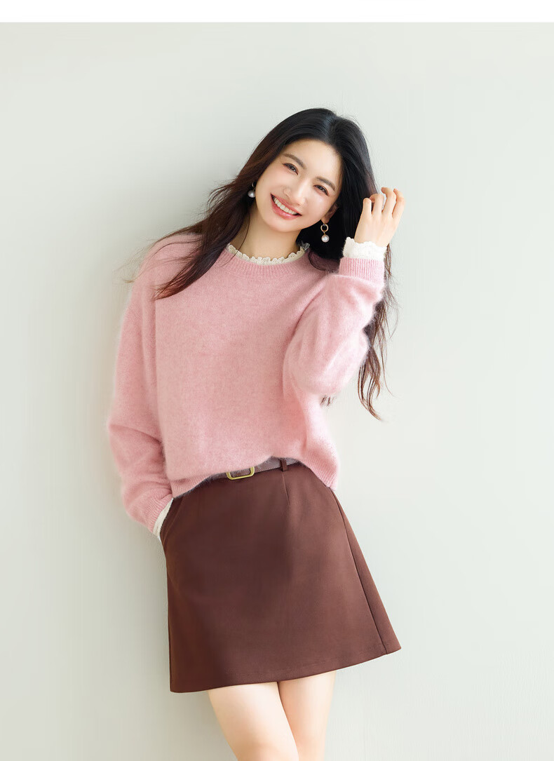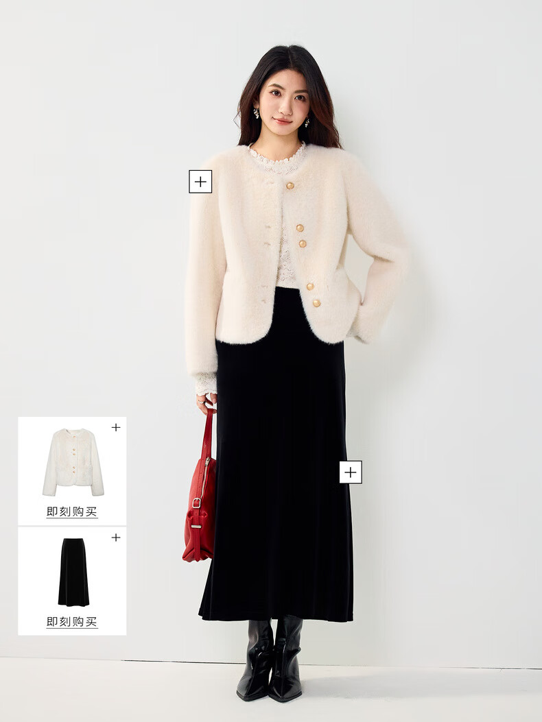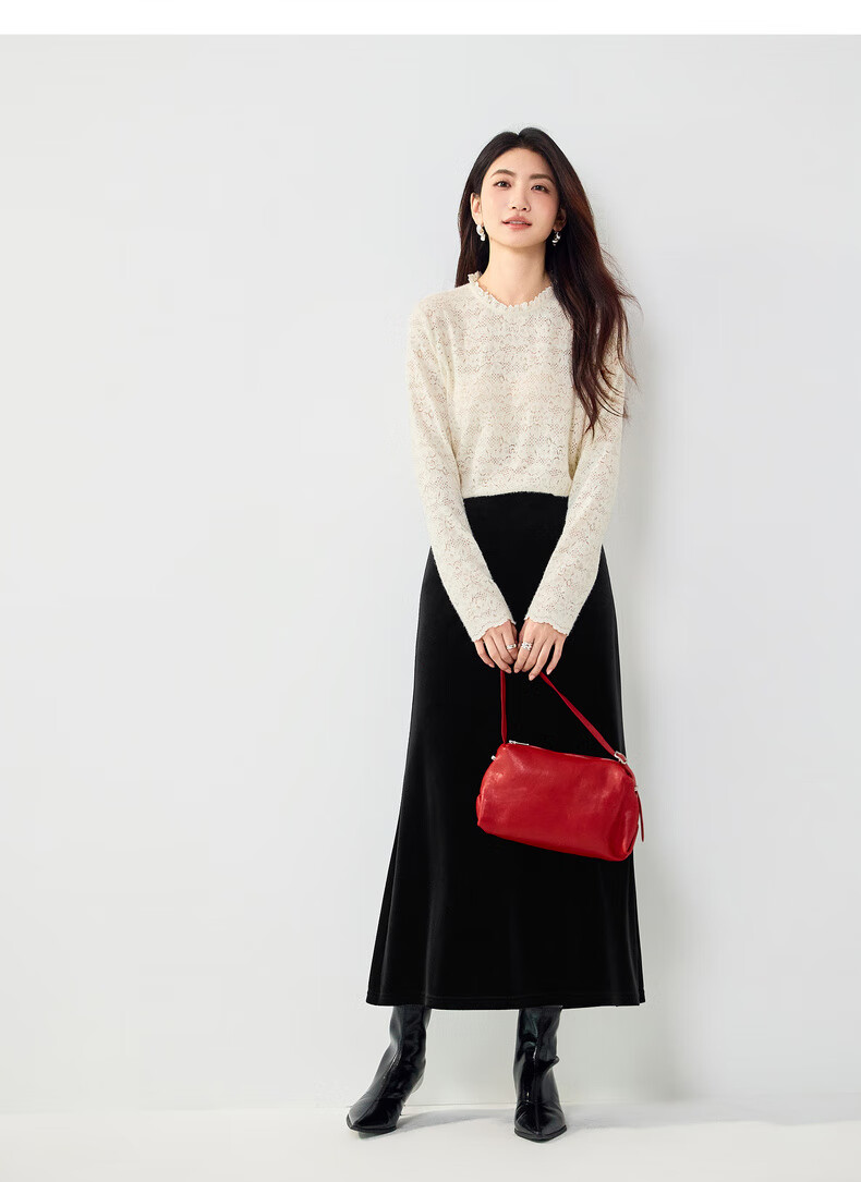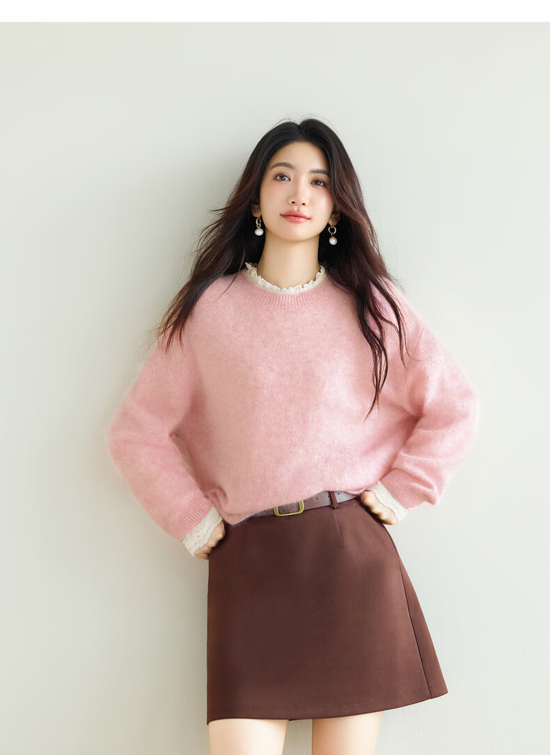 Eveli (eifini) Jiang Xin endorses Eveli brushed lace pullover with artifact bottoming collar lace shirt 2025 winter new style Pearl White S 80-105Jin Jin is equal to 0.5 kg