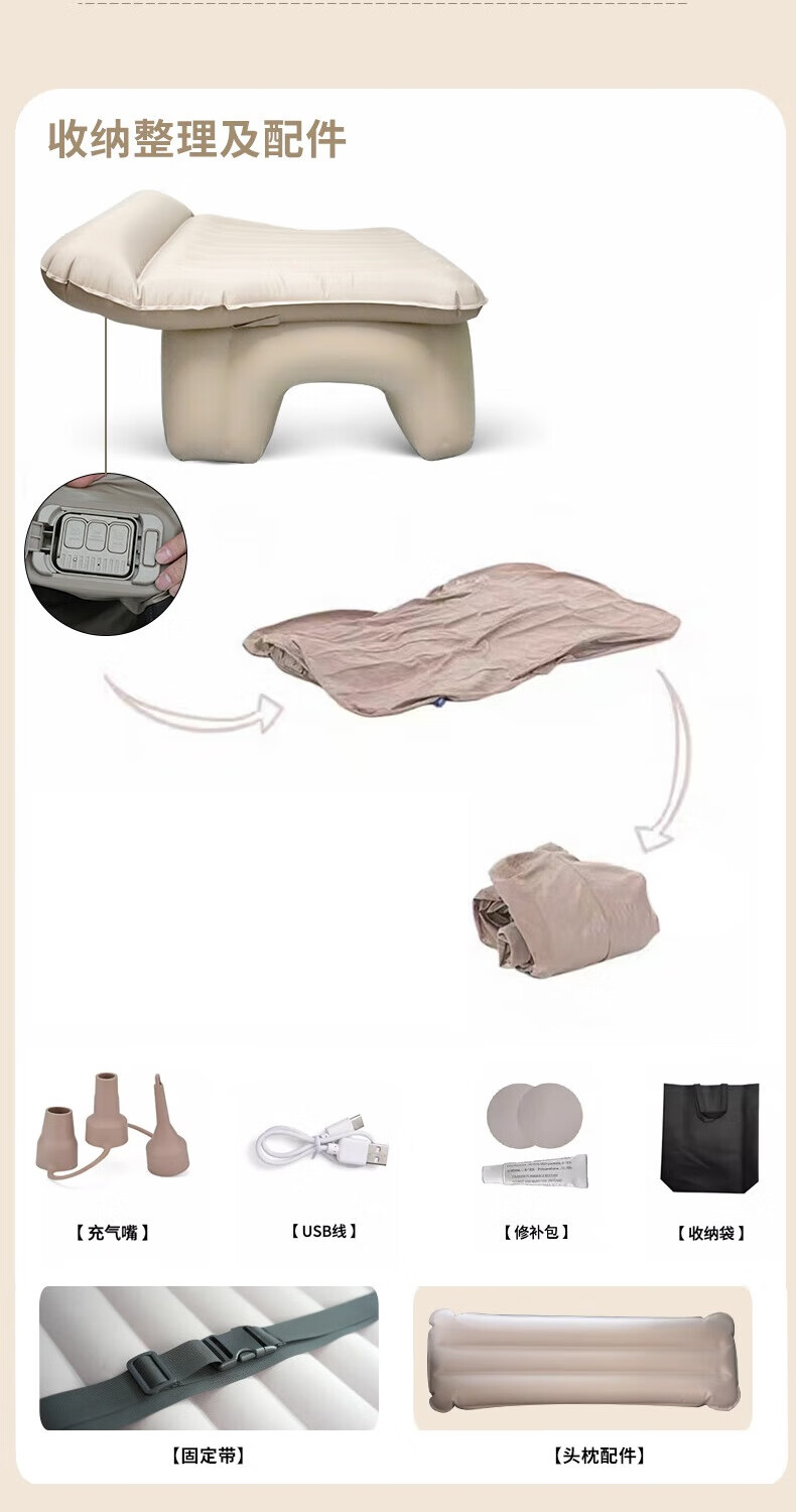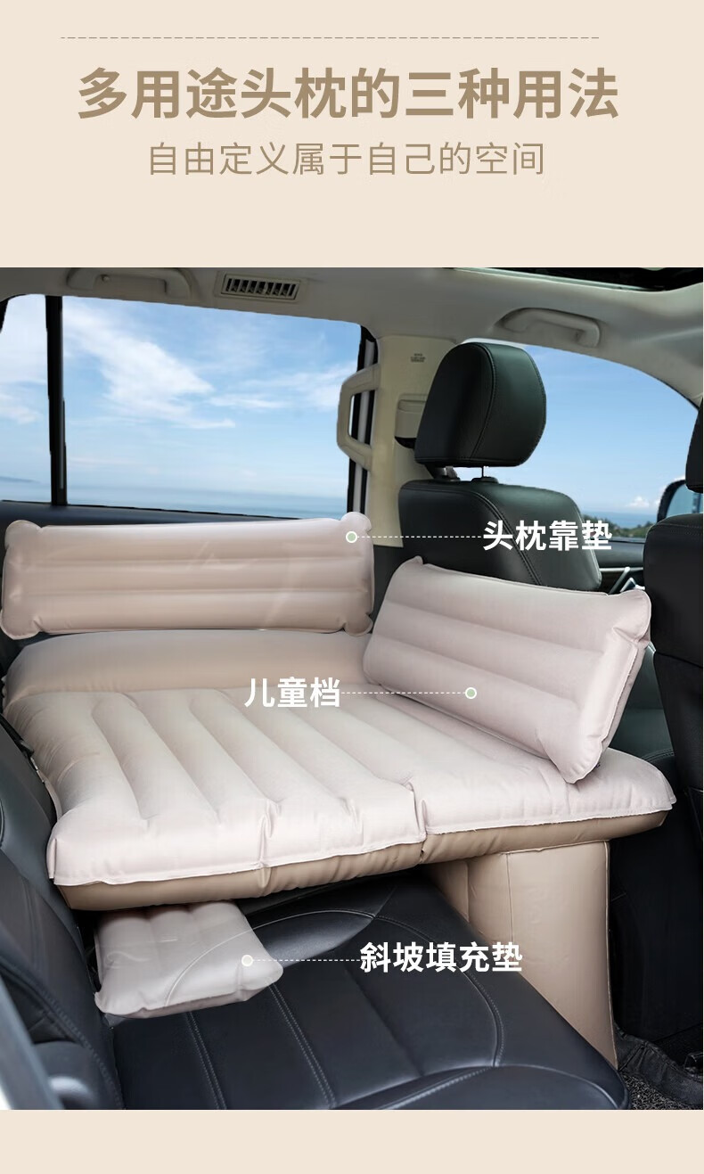Car automatic inflatable bed, car SUV inflatable mattress, rear exhaust bed, adult and children's car mattress, automatic inflatable, children's automatic inflatable bed, pongee material, including wireless electric air pump