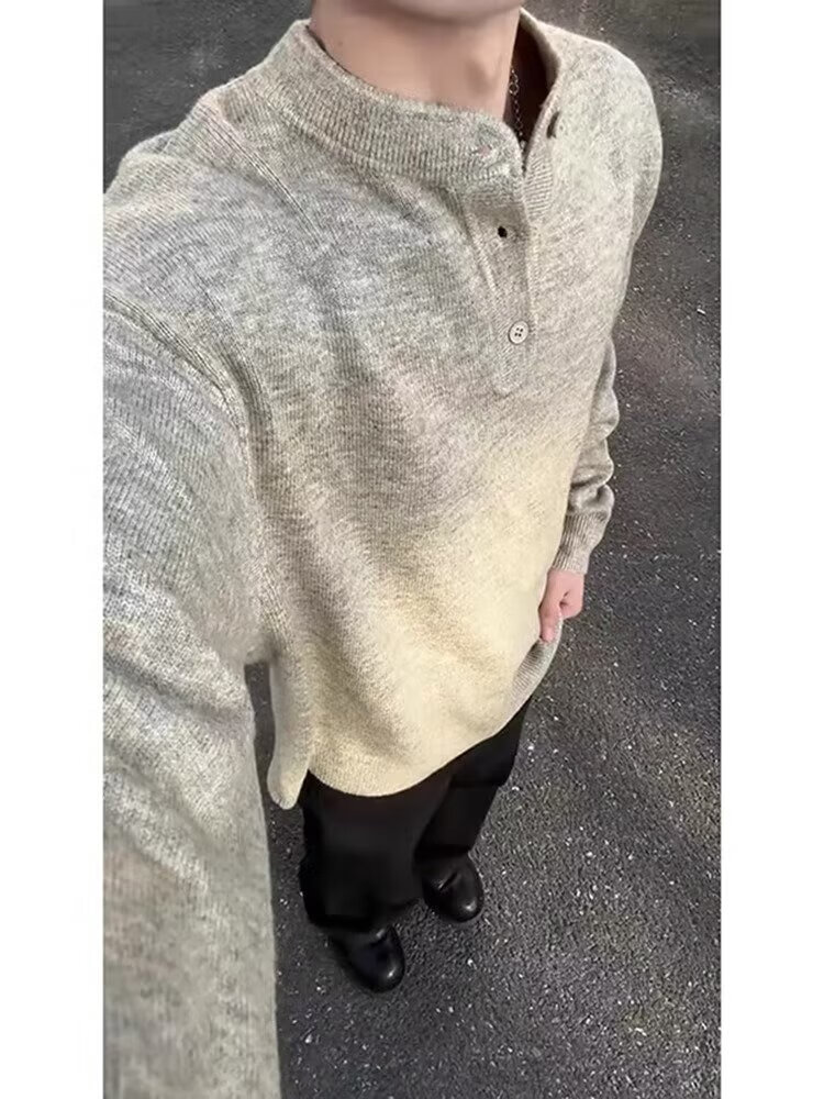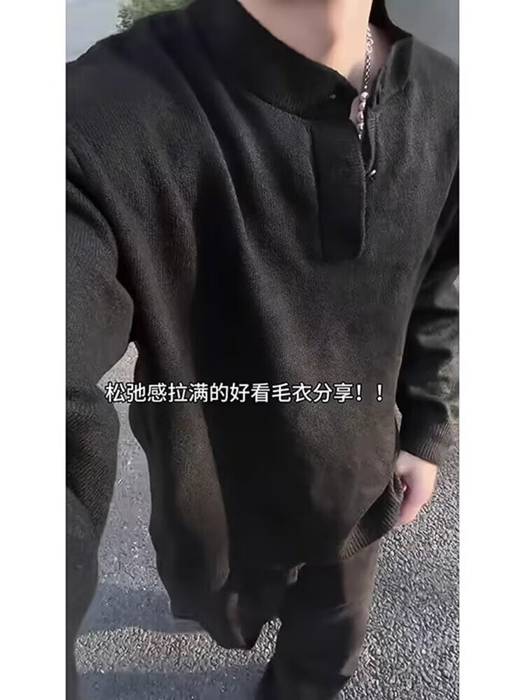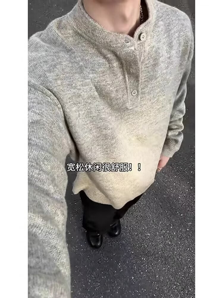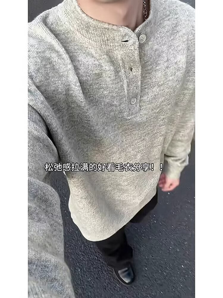 Sheli Jiaren Korean style light luxury half-buttoned T-shirt men's loose long-sleeved American retro casual versatile workwear Henry shirt Gray M