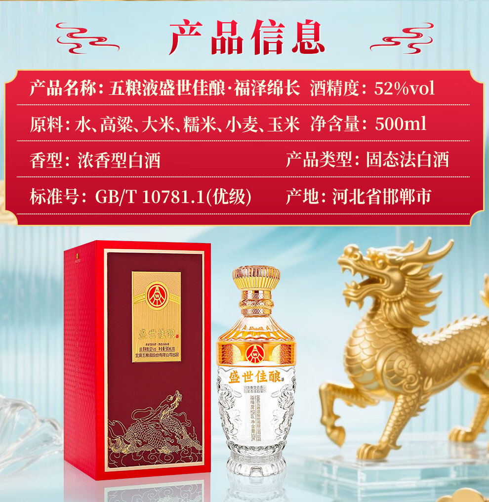 Produced by Wuliang Luzhou Wuliangye Co., Ltd. Luzhou-flavor liquor holiday collection gift wine 52% 500mL 1 bottle Shengshi fine wine Kirin gifts
