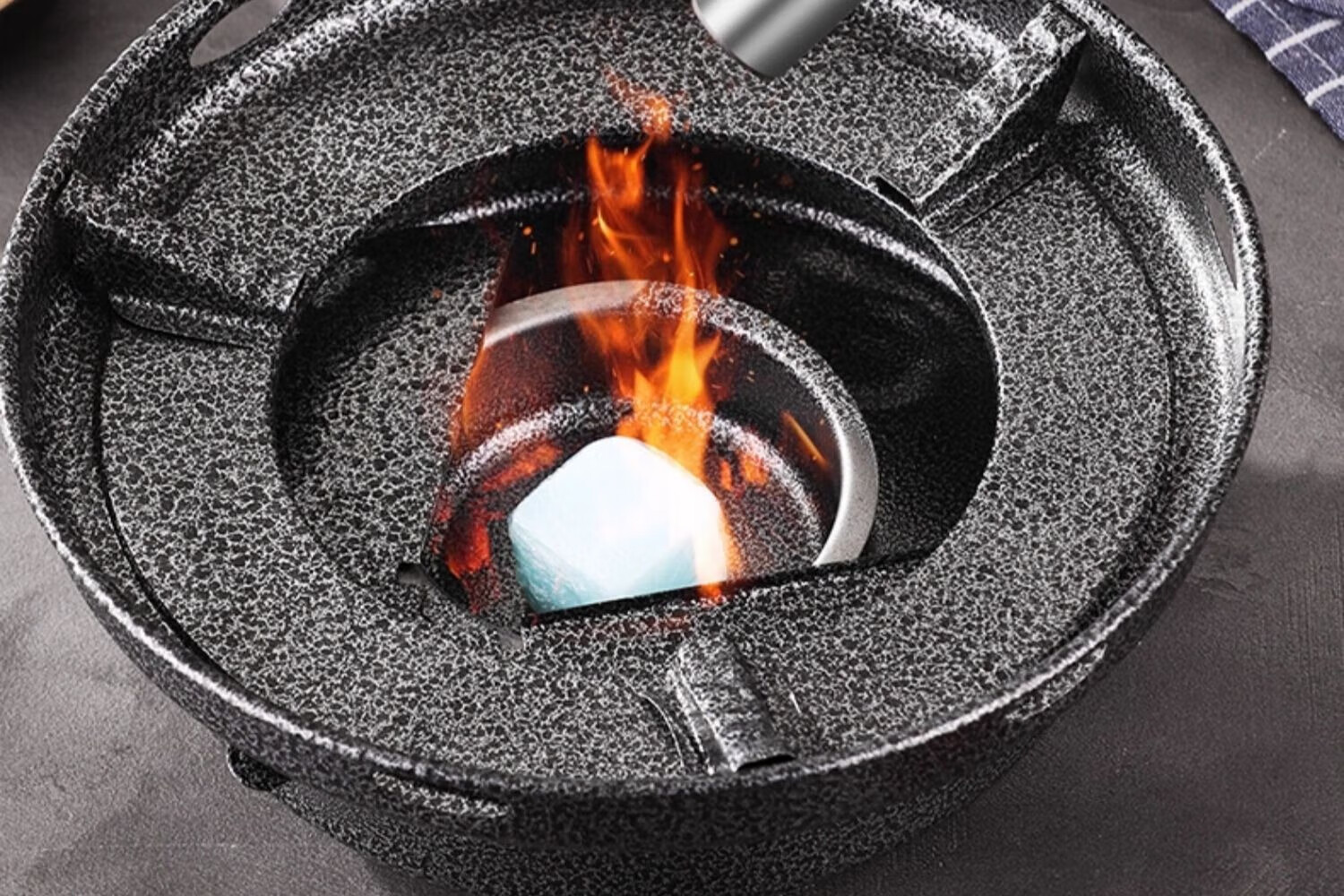 Estufa de alcohol, olla caliente pequeña, olla seca, estufa especial doméstica a prueba de viento, olla de alcohol sólido, estufa abierta de alta gama, estufa de alcohol negro de obsidiana + olla seca de 26 cm con tapa, gratis 20 piezas de cera sólida grande de 22 cm