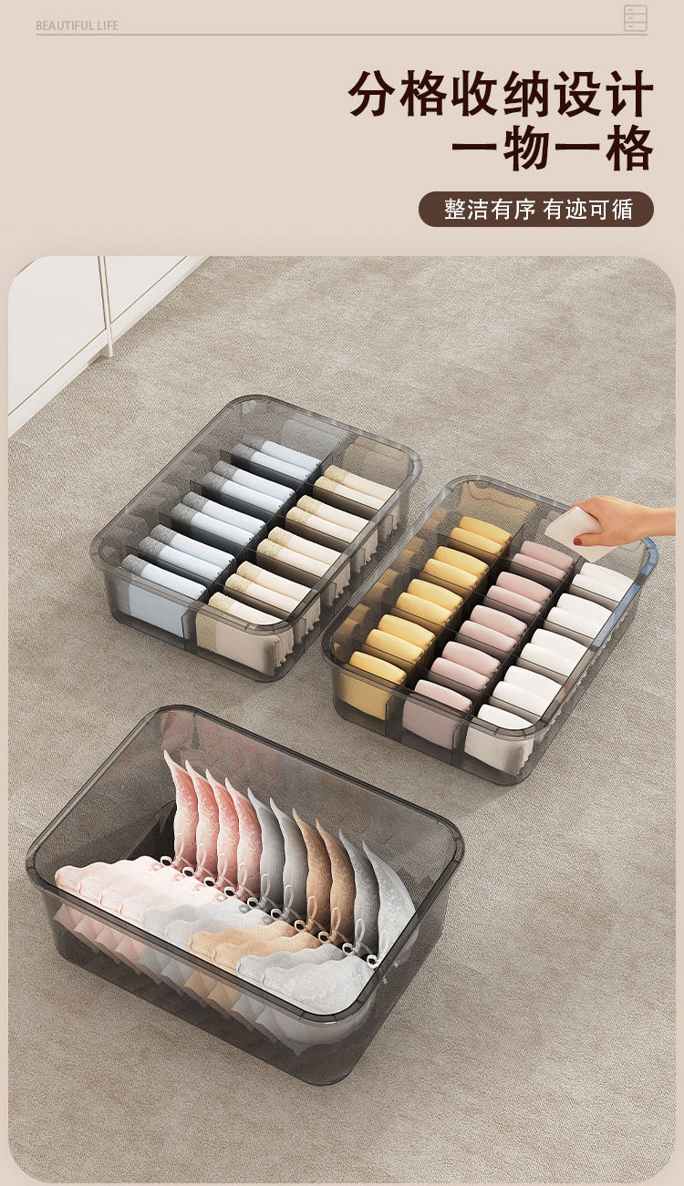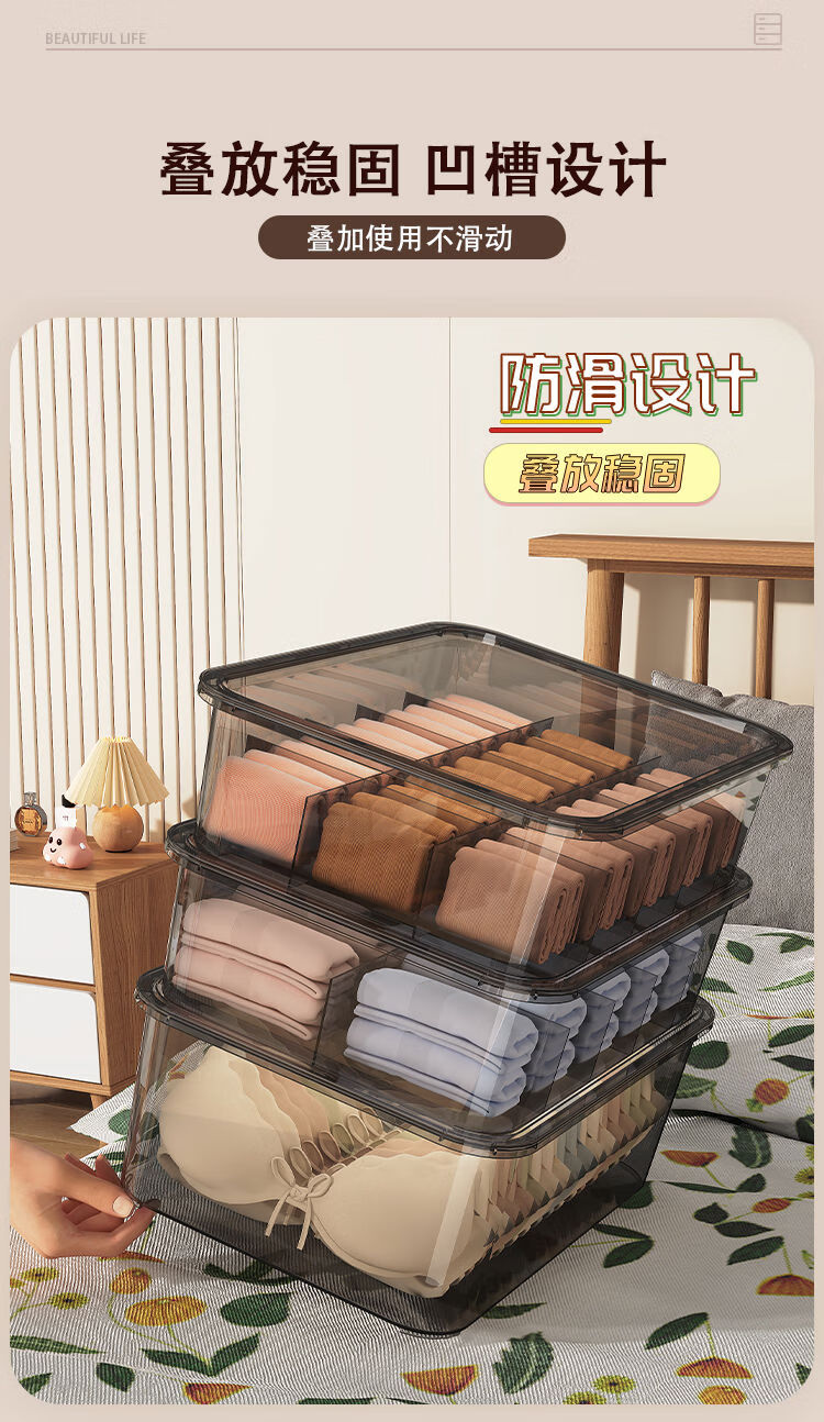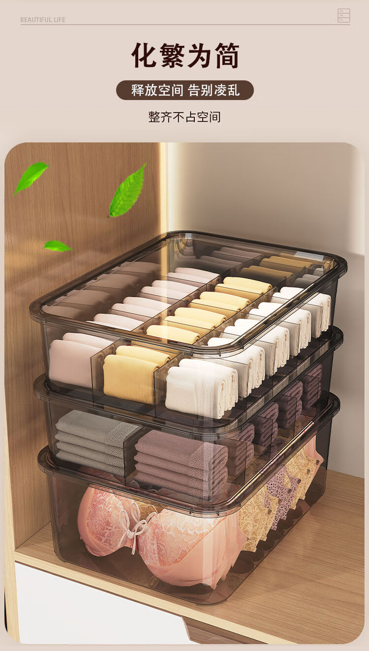 Receive cat underwear, underwear and socks storage box, dust-proof storage box, household three-in-one intimate clothing compartmentalization box, two-piece set without grids + 10 grids with cover, dust-proof upgrade and heightening
