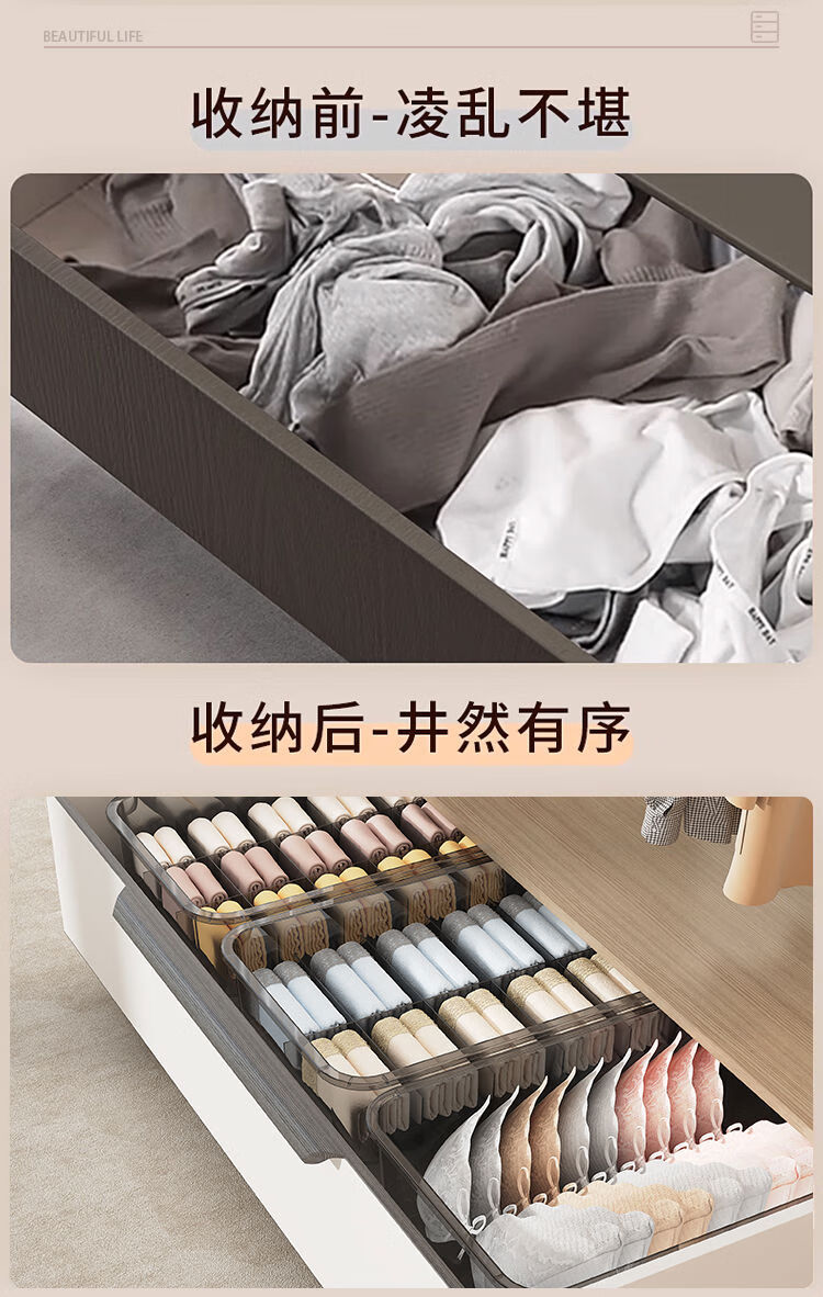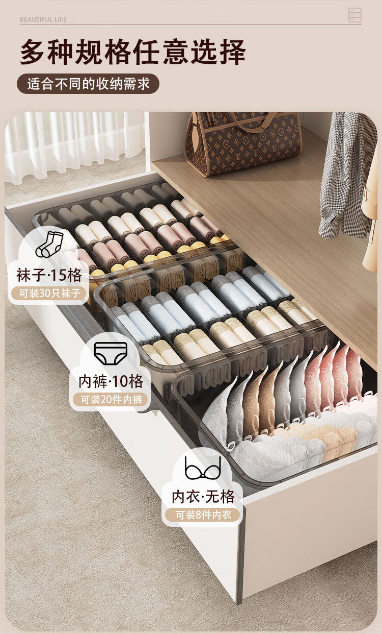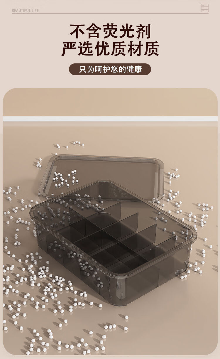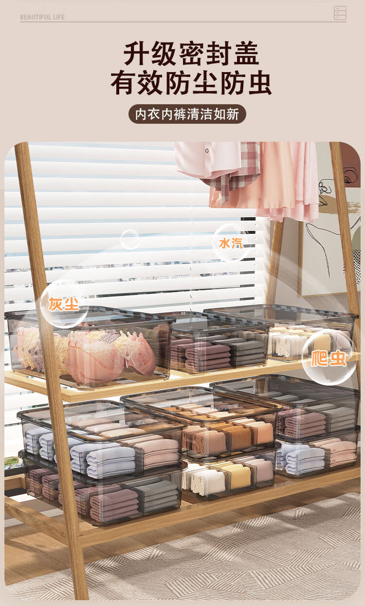 Receive cat underwear, underwear and socks storage box, dust-proof storage box, household three-in-one intimate clothing compartmentalization box, two-piece set without grids + 10 grids with cover, dust-proof upgrade and heightening