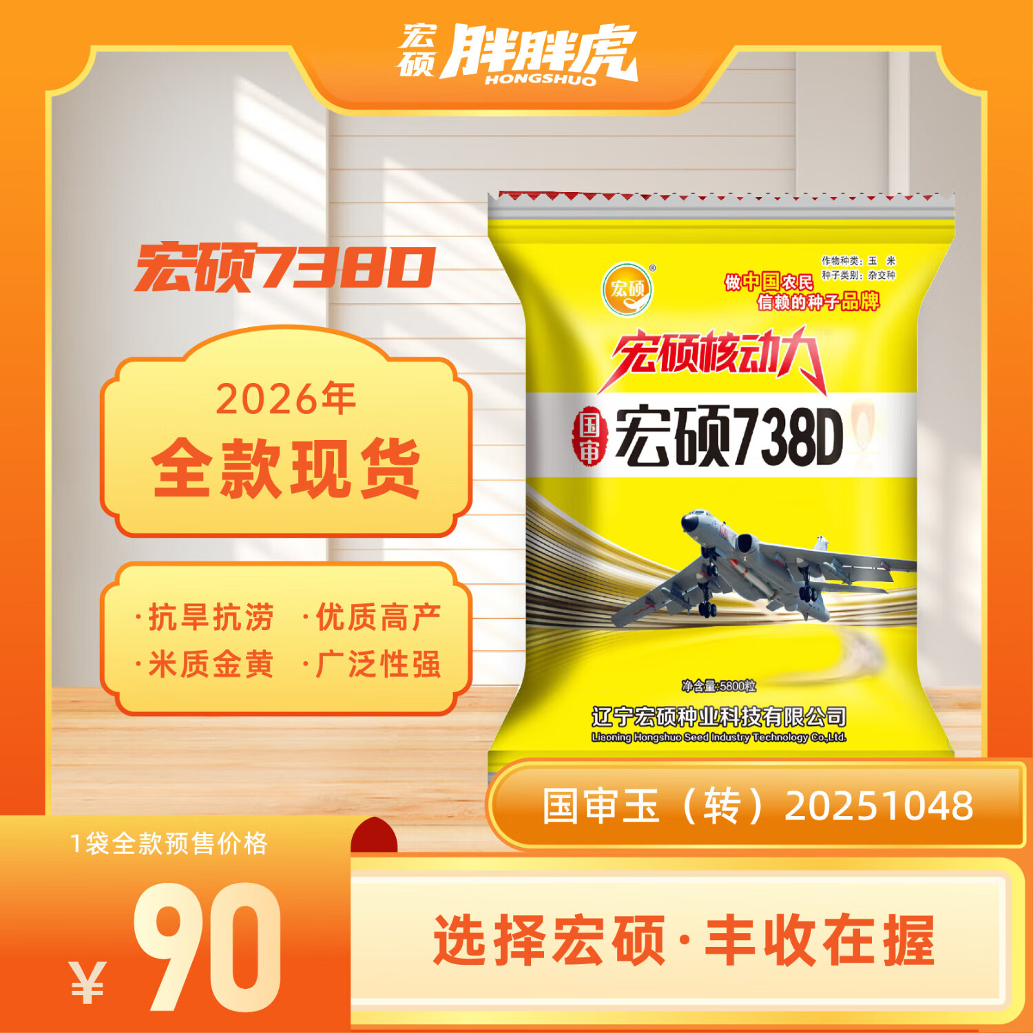 Hongshuo factory direct sales Hongshuo 738D corn seed, rice quality, high yield, high resistance, strong resistance to barrenness, adaptable to a wide range of