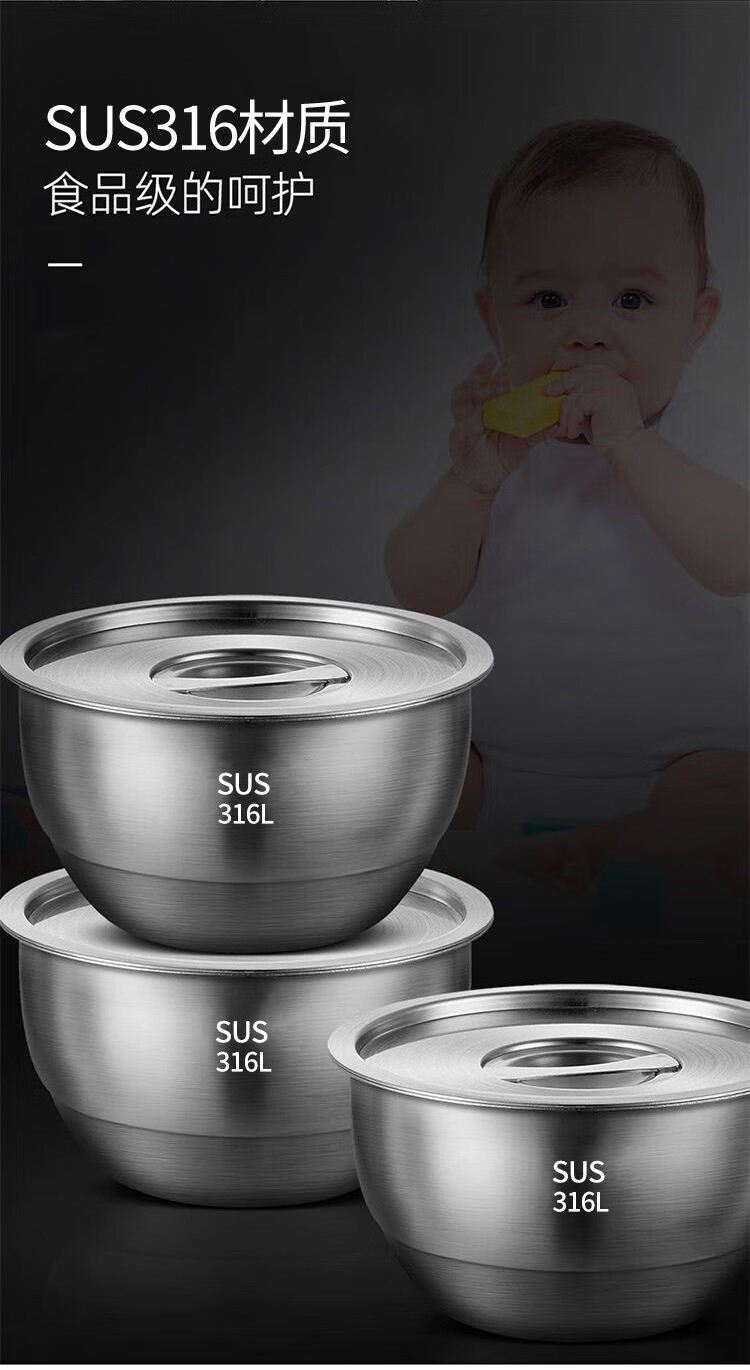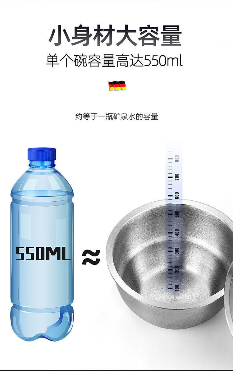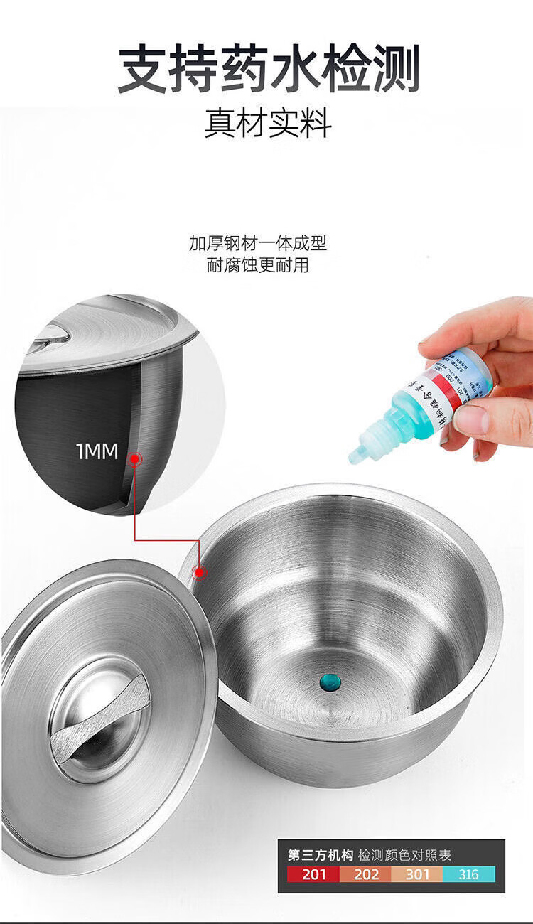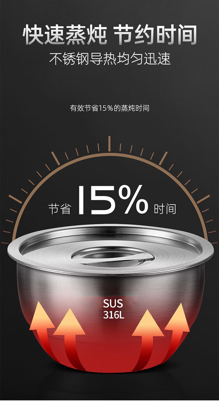 New 316 stainless steel steamed egg bowl with lid, baby stew pot, household steamed egg custard, high temperature resistant 316 extra thick round style + lid, capacity about 500 milliliters