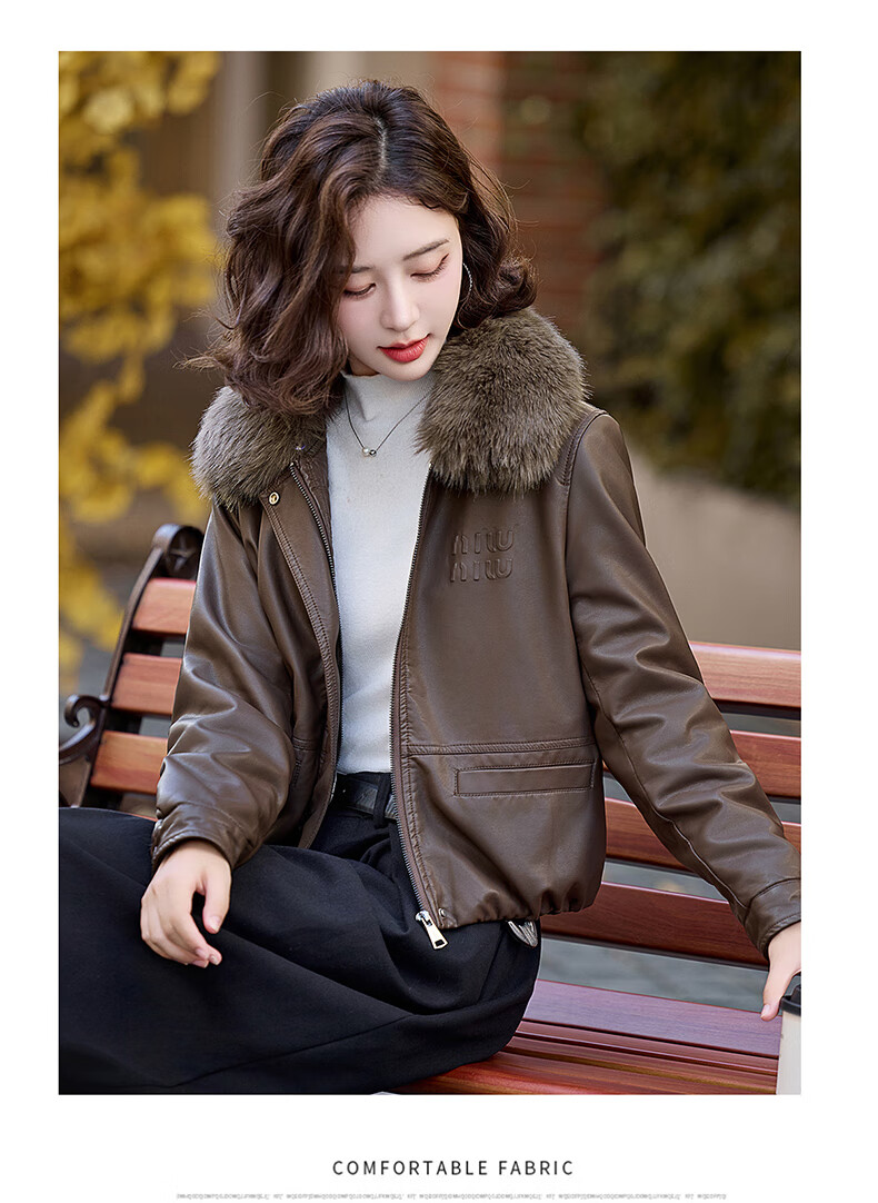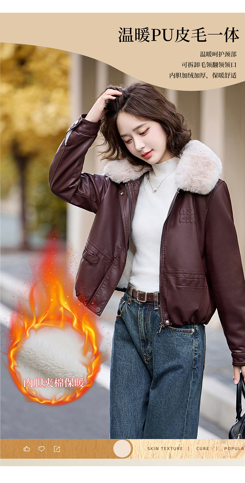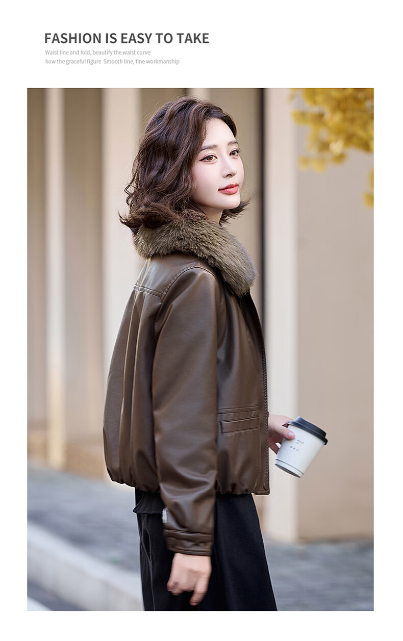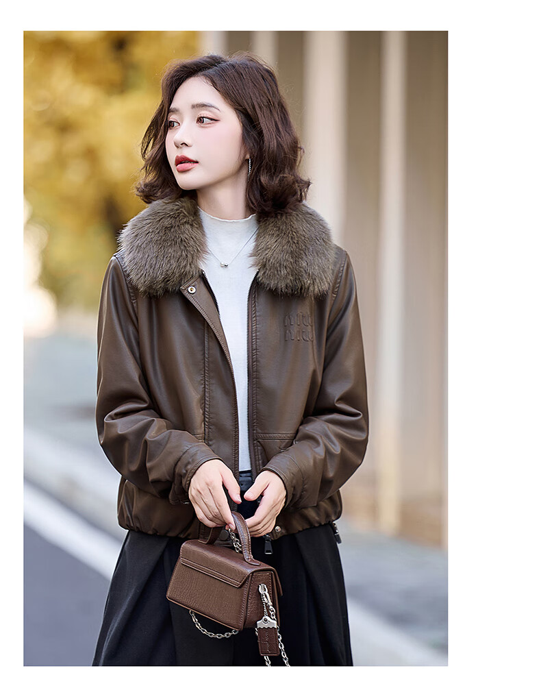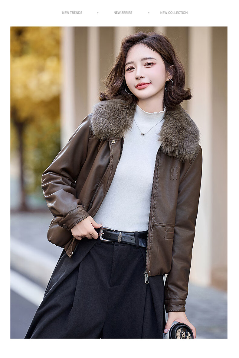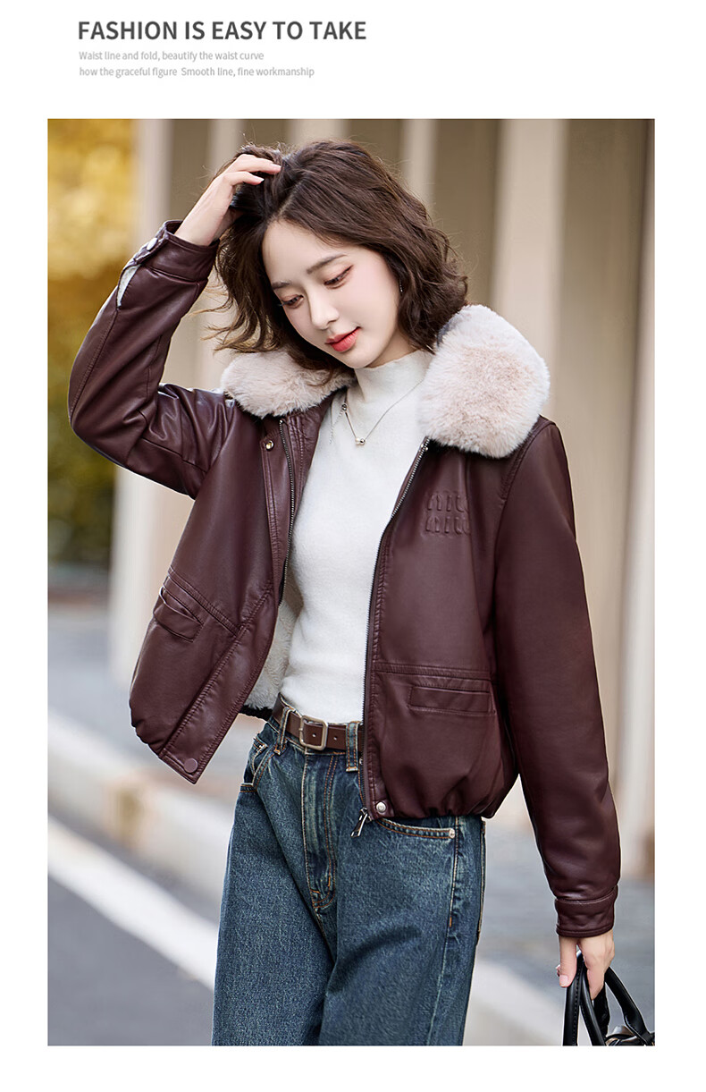 Bailanjiao velvet thickened leather jacket for women 2025 new winter style small fashion versatile PU leather cotton jacket top coffee color + coffee fur collar M (recommended 80-110Jin Jin equals 0.5 kg)