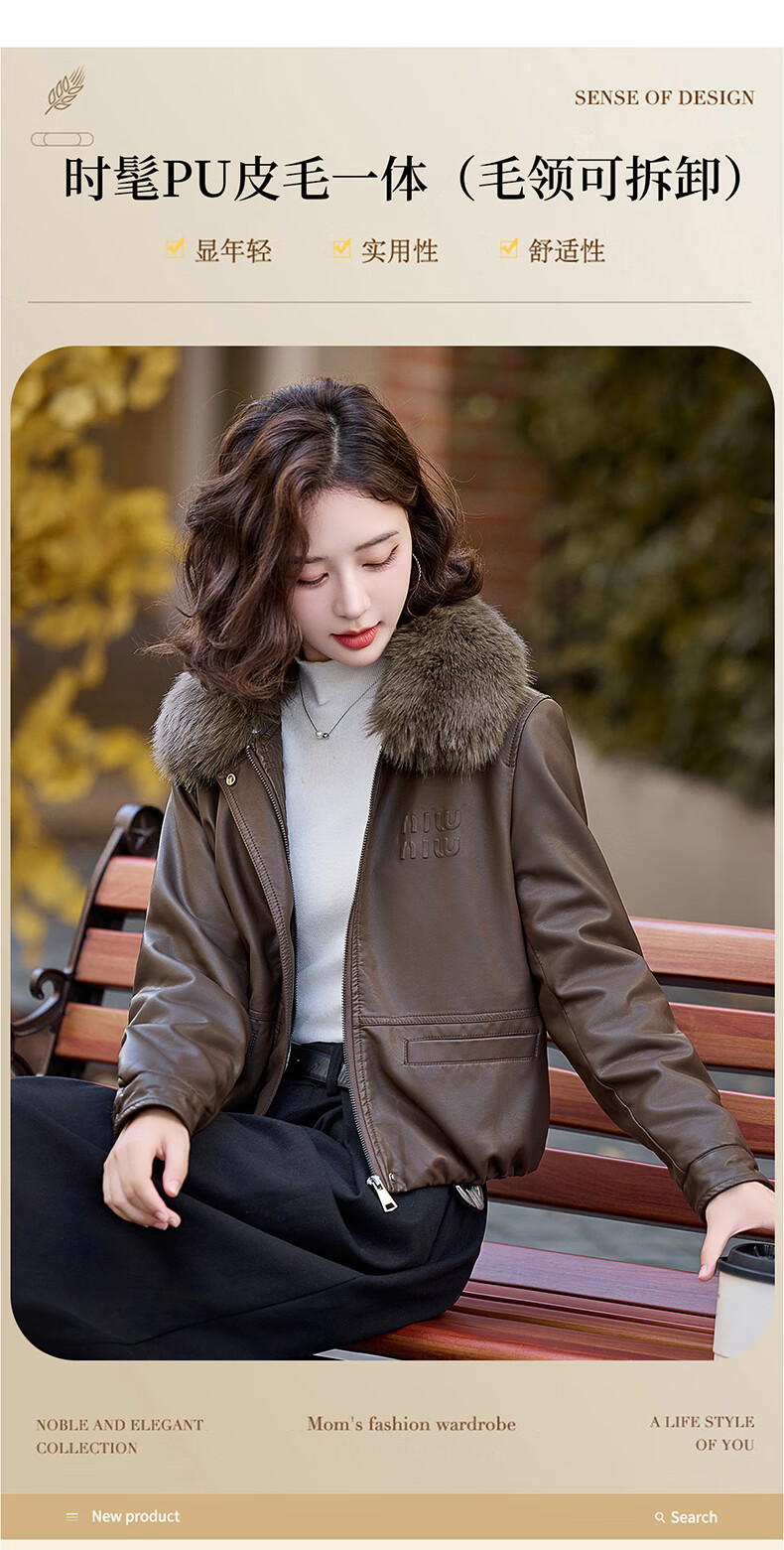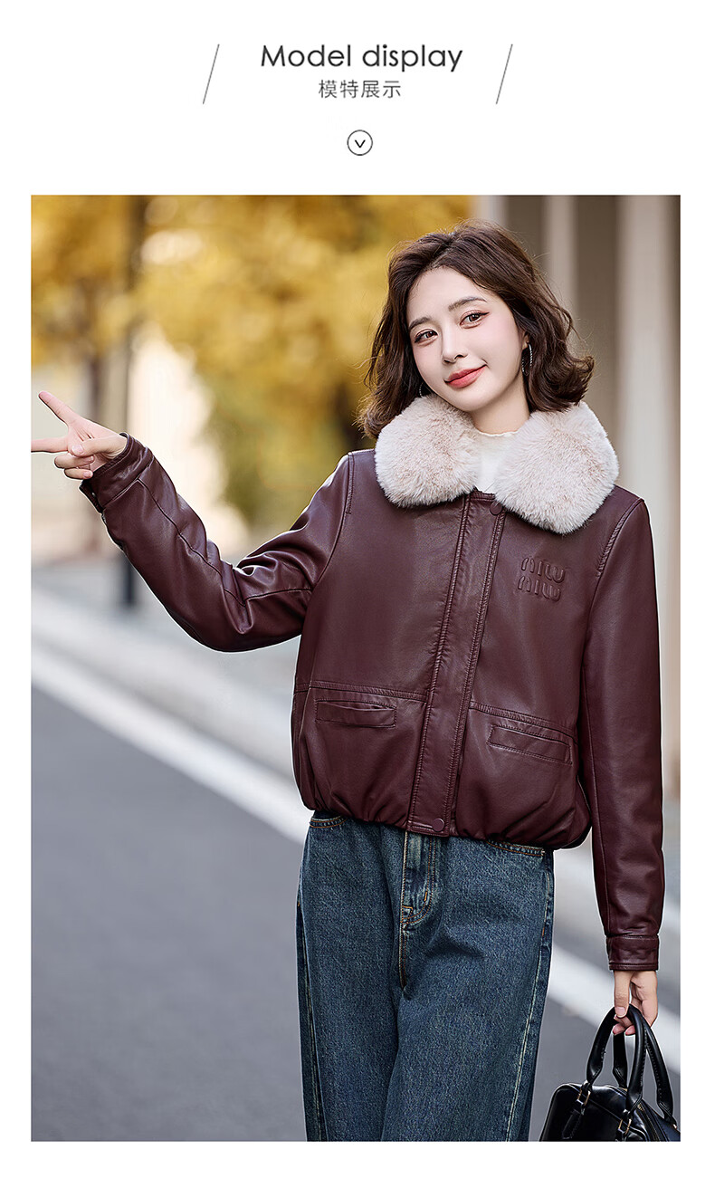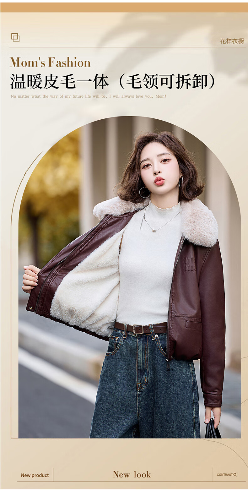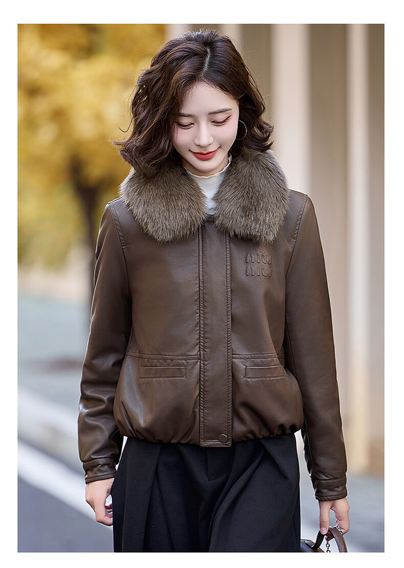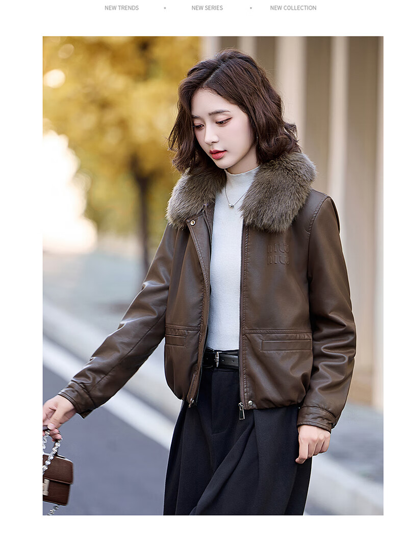 Bailanjiao velvet thickened leather jacket for women 2025 new winter style small fashion versatile PU leather cotton jacket top coffee color + coffee fur collar M (recommended 80-110Jin Jin equals 0.5 kg)