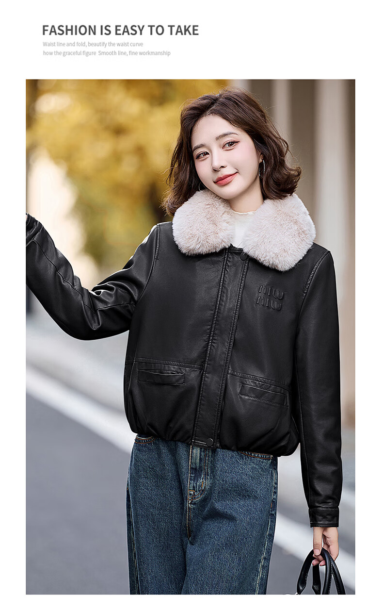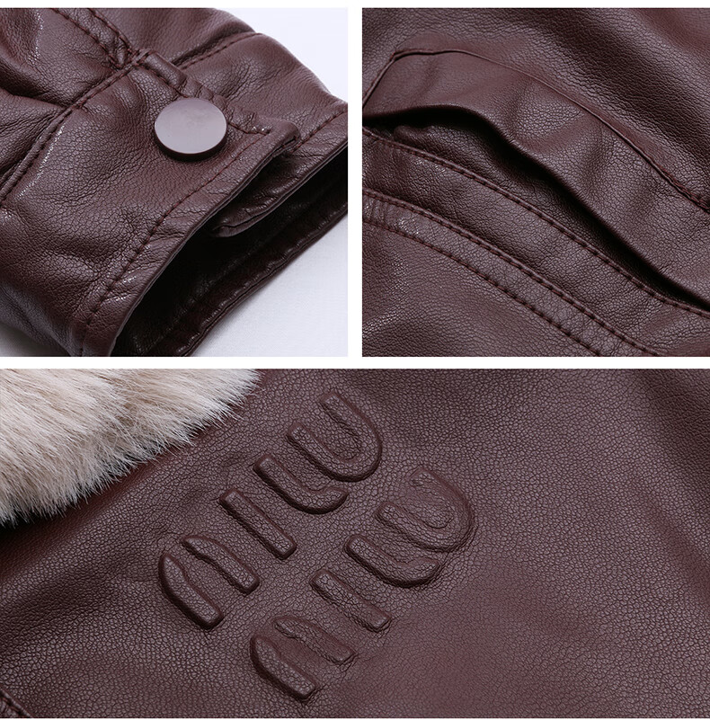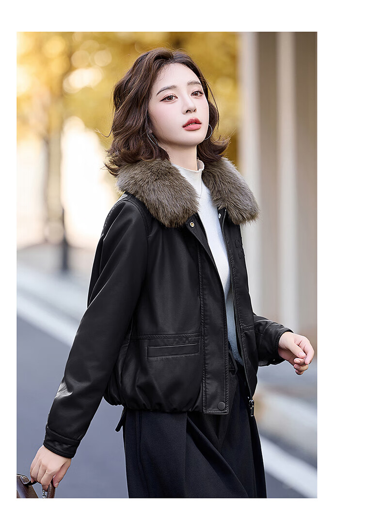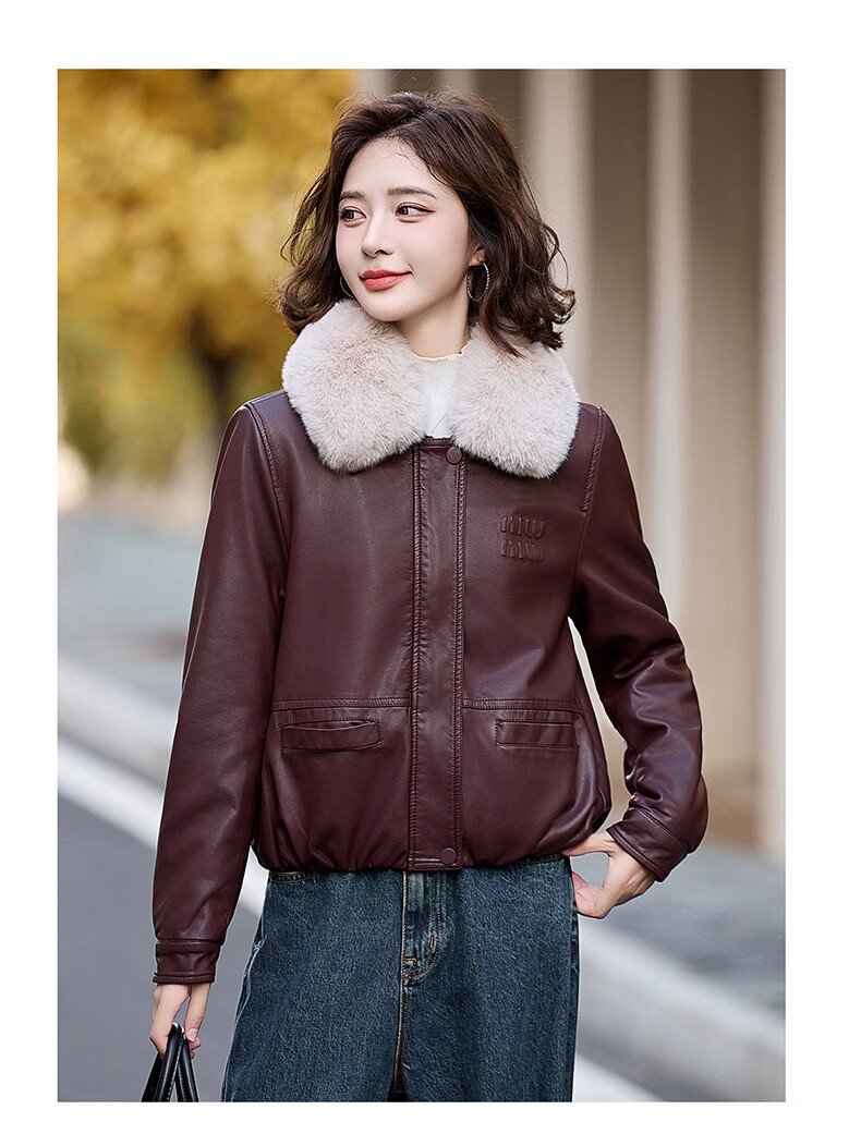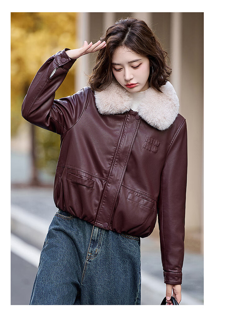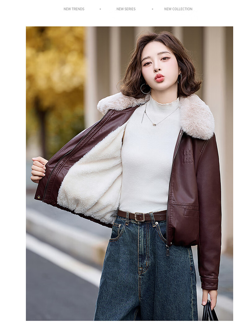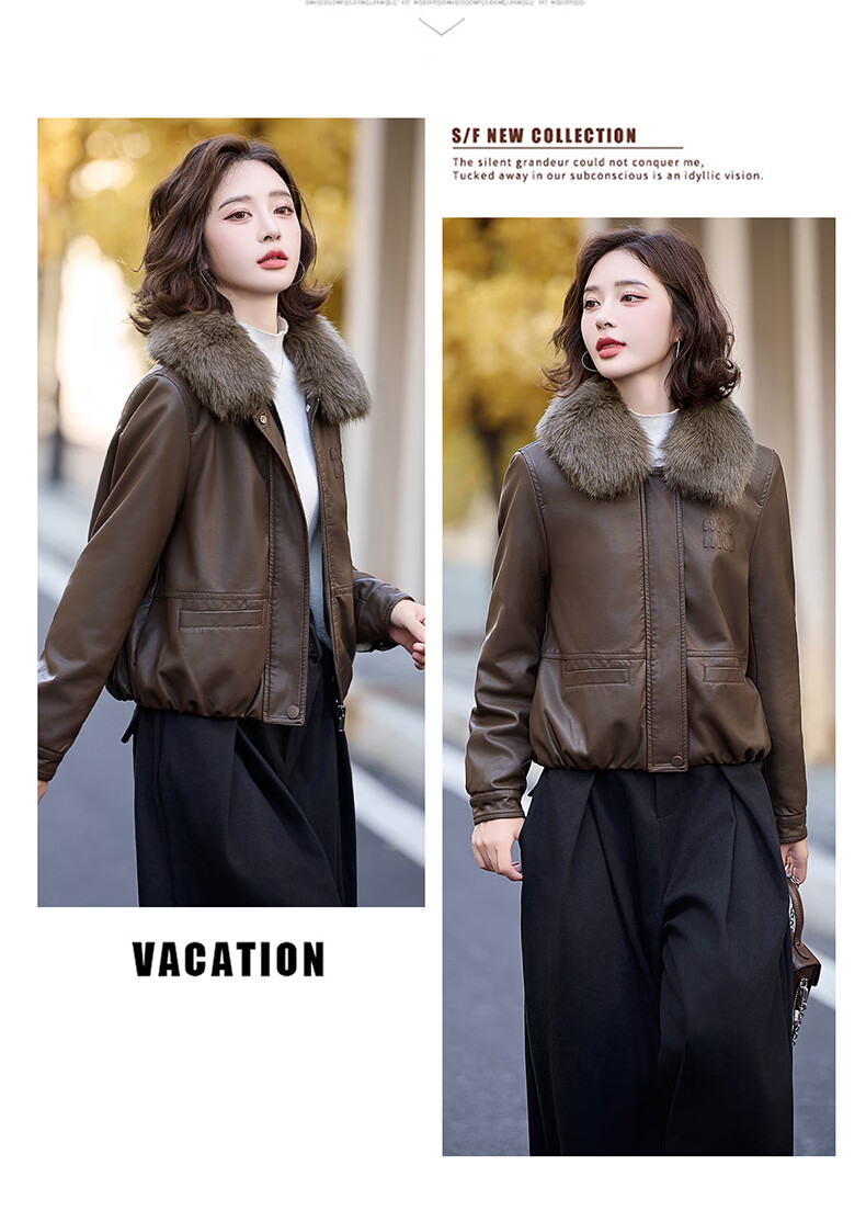 Bailanjiao velvet thickened leather jacket for women 2025 new winter style small fashion versatile PU leather cotton jacket top coffee color + coffee fur collar M (recommended 80-110Jin Jin equals 0.5 kg)