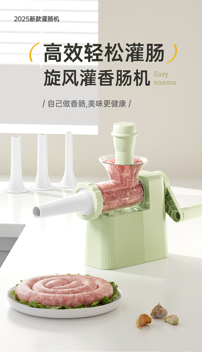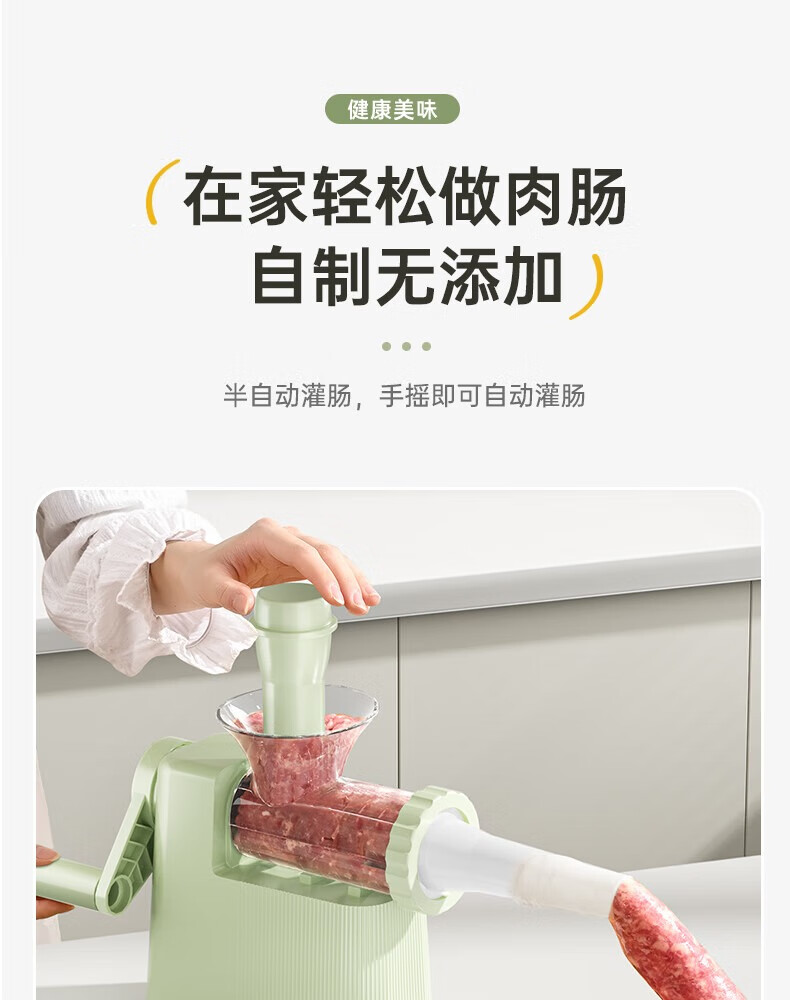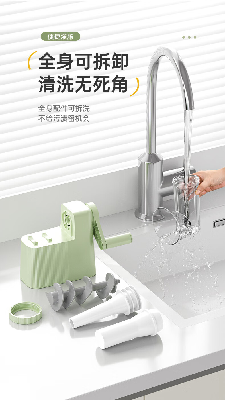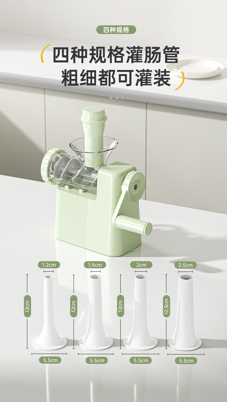 Sausage filling machine sausage artifact sausage filling machine manual household food grade tool casing tank sausage sausage machine meat sausage food grade apple green 4 intestine mouth / integrated storage