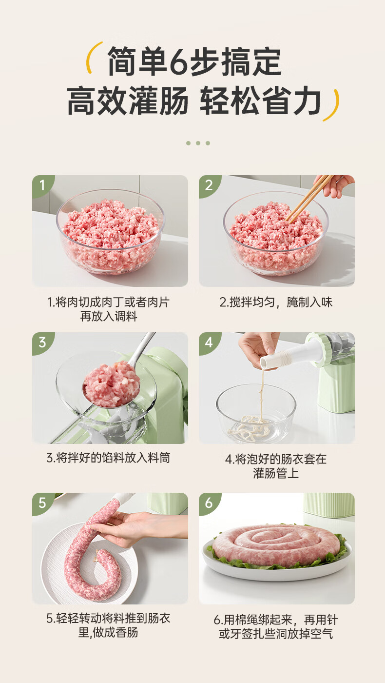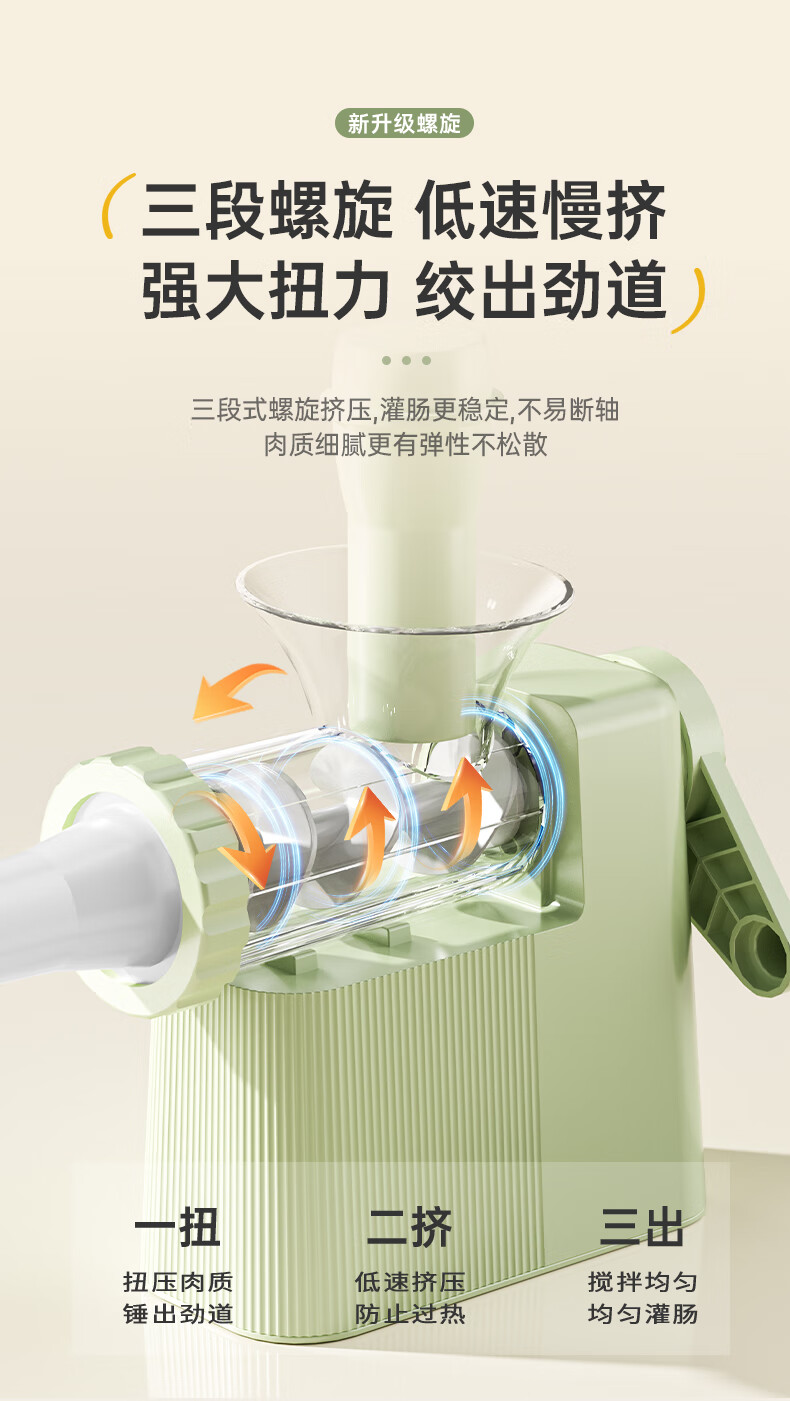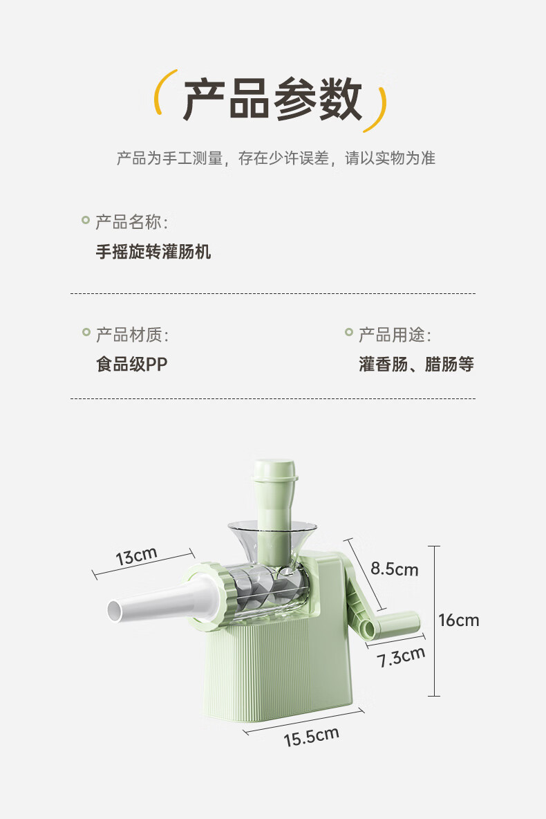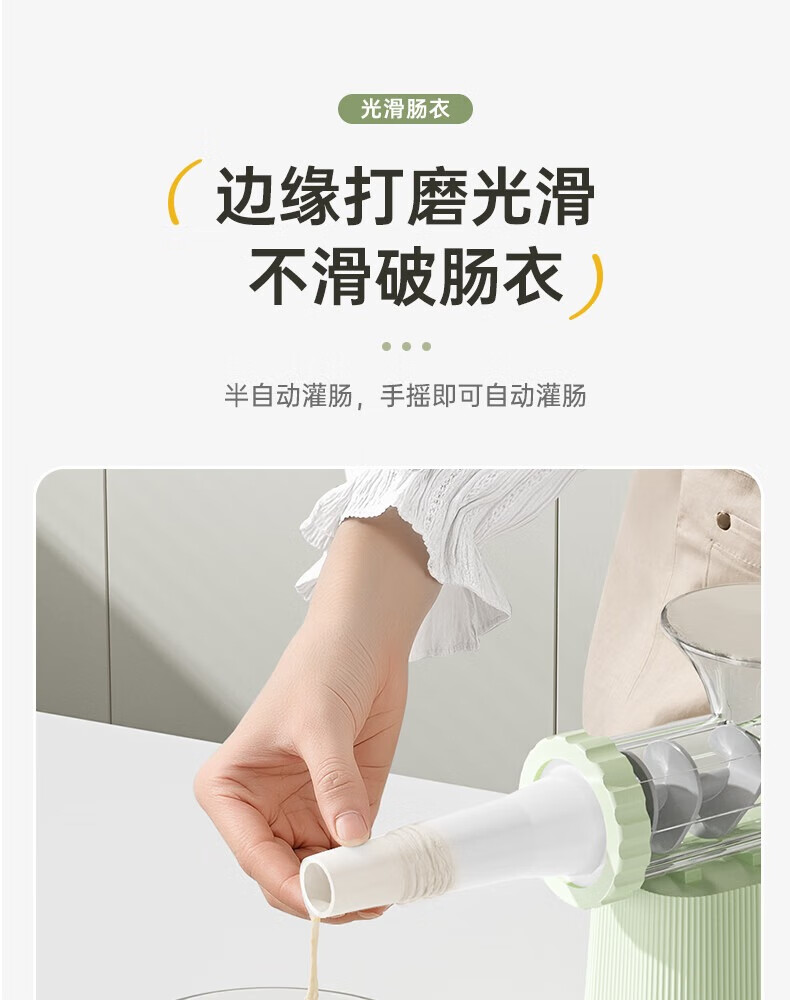 Sausage filling machine sausage artifact sausage filling machine manual household food grade tool casing tank sausage sausage machine meat sausage food grade apple green 4 intestine mouth / integrated storage