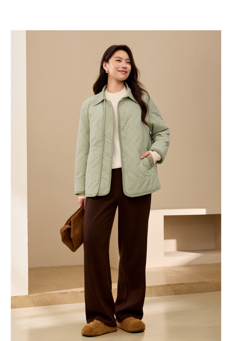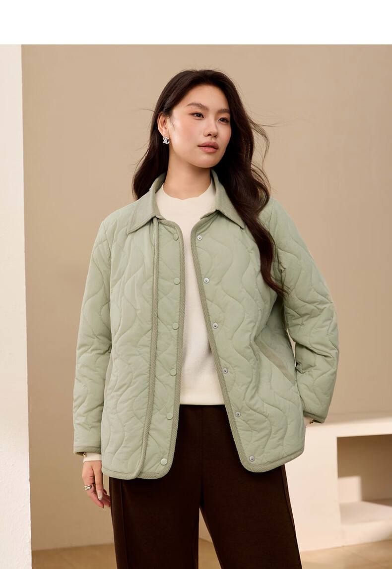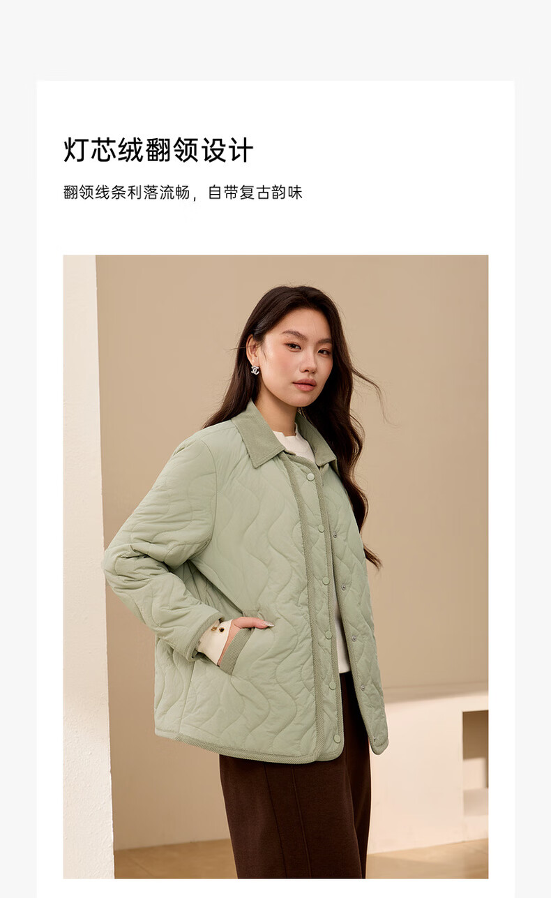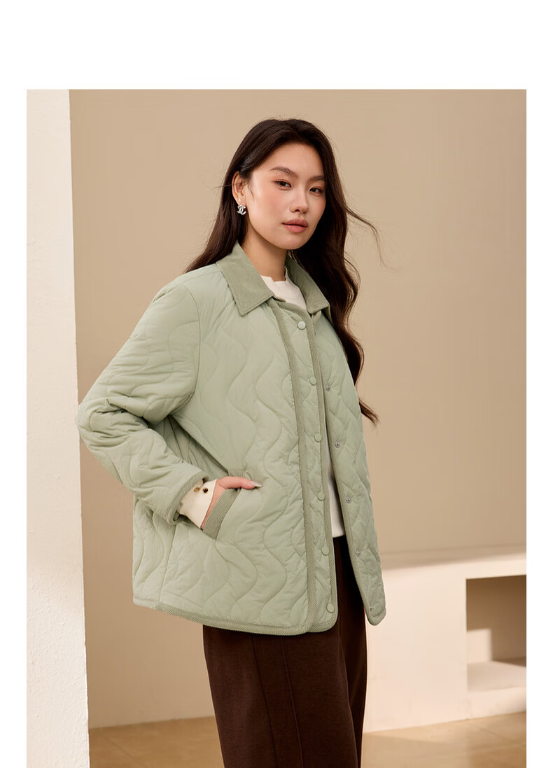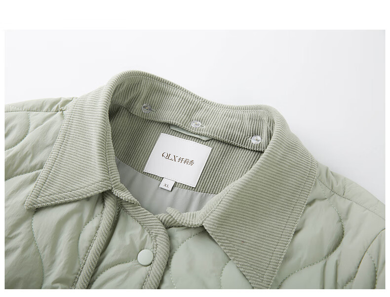Xianlixiu corduroy collar versatile cotton coat plus size women's fashionable and comfortable coat fat mm winter clothing new style 1239 light green 2XL