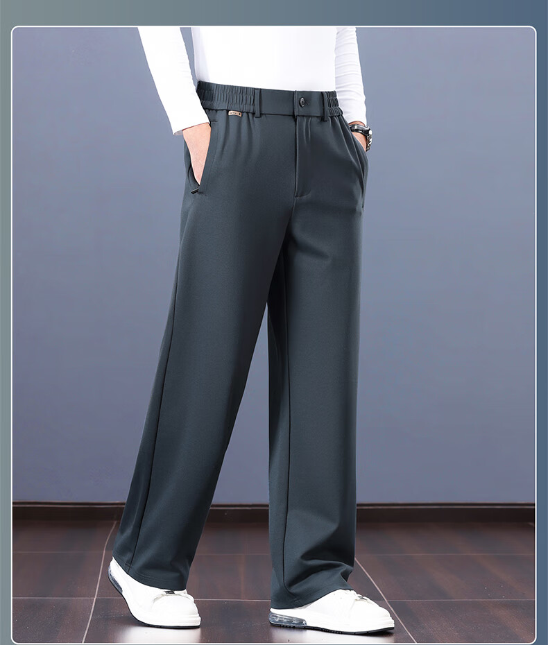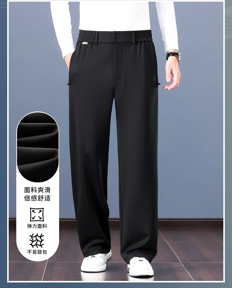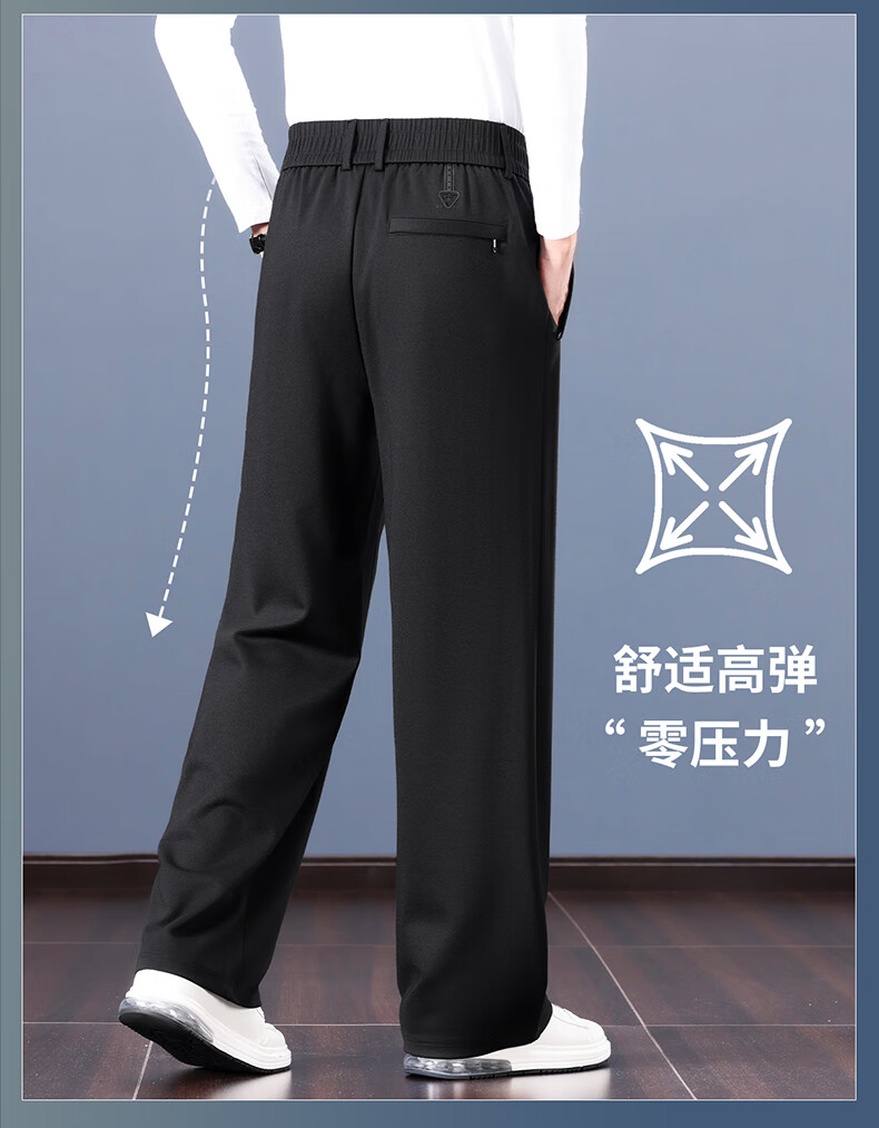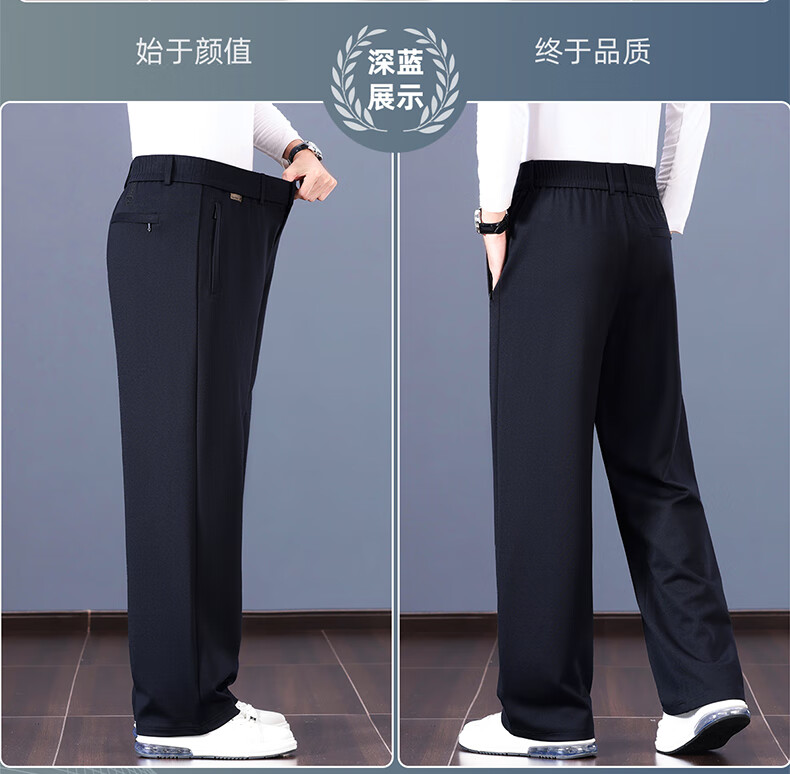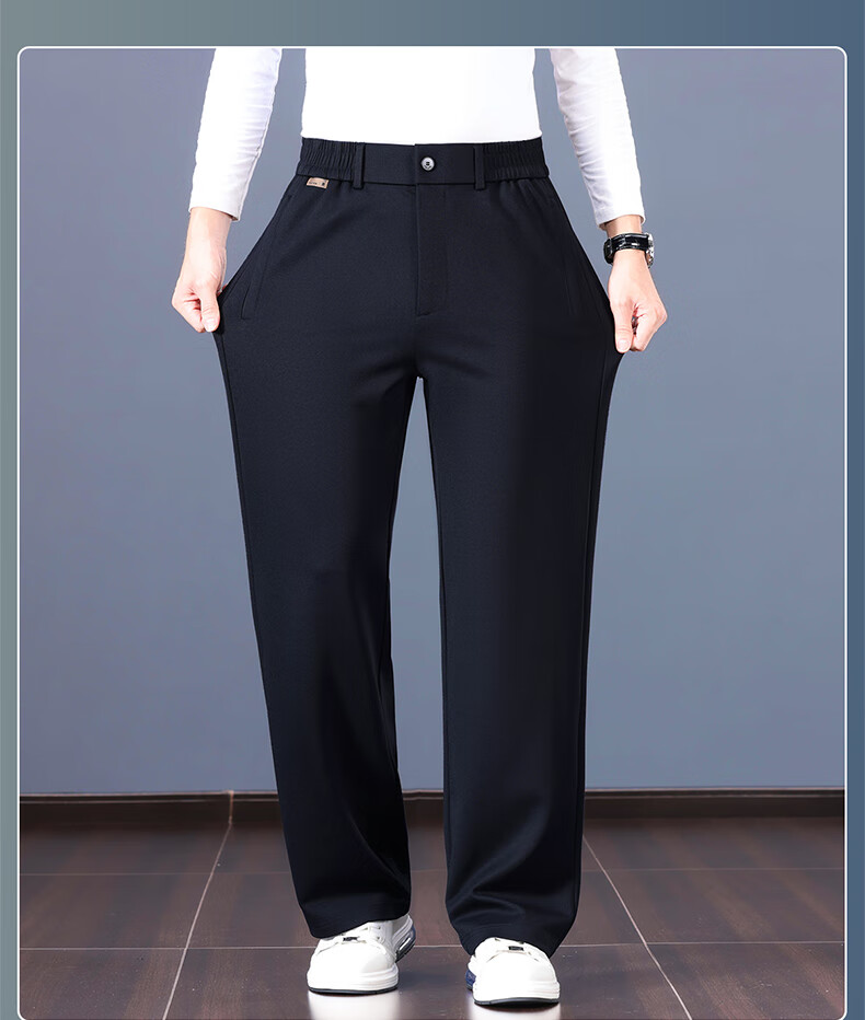 JEEP high-end four-way elastic men's sports pants autumn and winter loose straight leg middle-aged and elderly dad's velvet wide-leg casual pants dark blue high-end four-way stretch XL recommended 142-152 Jin Jin equals 0.5 kg
